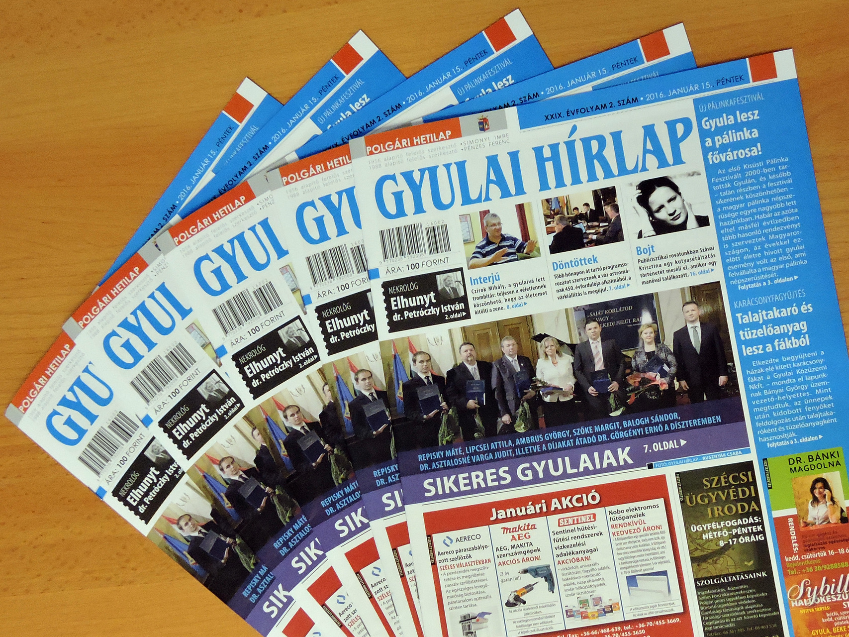 A Gyulai Hírlap legfrissebb száma 100 forintért megvásárolható szerkesztőségünkben (Gyula, Városház utca 20.), illetve az alábbiakban felsorolt elárusítóhelyeken: Volt V Nővérek (Szent István u. 32.), Tópart ABC (Pósteleki út 22/a), Híd utcai élelmiszerbolt (Híd u. 4.), Buszpályaudvari non-stop (Vásárhelyi Pál utca), Paradicsomi non-stop (Liliom köz), Reoma büfé (Várkert u. 1.), Szőlőskert ABC (Szőlőskert utca 16.), Kiss diszkont (Nagyváradi út 50.), Sarok ABC (Széchenyi u. 7/1.), Narancs ABC (Kazinczy út 1.), Kékszilva ABC (Dobozi út 14.), Vasútállomás újságos (Budrió 16. II/5.), Diófa ABC (Diófa u. 32.), Gabingo (Liliom köz), Élésker szupermarket (Kossuth Lajos tér 5.), Paradicsomi Élésker ABC (Temesvári út 173.), Budrió ABC (Béke sgt. 71.), Gyulavári CO-OP ABC (Széchenyi u. 53.), Nagyváradi úti CO-OP ABC (Nagyváradi út), Törökzugi CO-OP ABC (Budapest krt. 1.), Piaci lottózó (Honvéd utca), Idesüss Pékség (Tomcsányi utca), IQ Könyvesbolt (Kossuth tér), Kossuth téri Dohánybolt, Béke sgt.-i élelmiszerbolt (Béke sgt. 9-11.), Kórházi újságospavilon, Törökzugi Kiss ABC, Törökzugi dohánybolt, Buszpályaudvari újságos pavilon (Vásárhelyi P. u. 2.), Béke sgt-i újságos (Béke sgt. 12.), MOL kút (Csabai út 5.), Shell kút (Mártírok útja), Tesco (Csabai út), Interspar (Kétegyházi út).