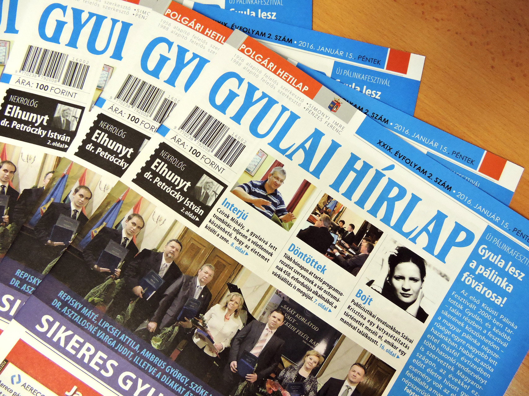 A XXIX. évfolyam 2. számában beszámolunk a polgármester új évi fogadásáról, a Sikeres Gyulai címek átadásáról. Elolvashatják, hogy miért Gyula lesz a pálinka fővárosa. Ne aggódjanak, a Gyulai Közüzemi NKft. elszállítja a karácsonyfákat. Megírtuk a lapban, hogy mikor és hogyan, illetve hogy mi lesz a sok fából. Közöljük Ambrus Lajos nekrológját dr. Petróczky Istvánról. Hírt adunk arról, hogy jótékonysági bált rendeznek a gyulai evangélikusok. Fórum oldalunkon írunk a piacról, illetve a Gyulai csevegőből is kiemeltünk egy érdekes témát. Állásbörze rovatunkat is érdemes böngészni ezen a héten is.