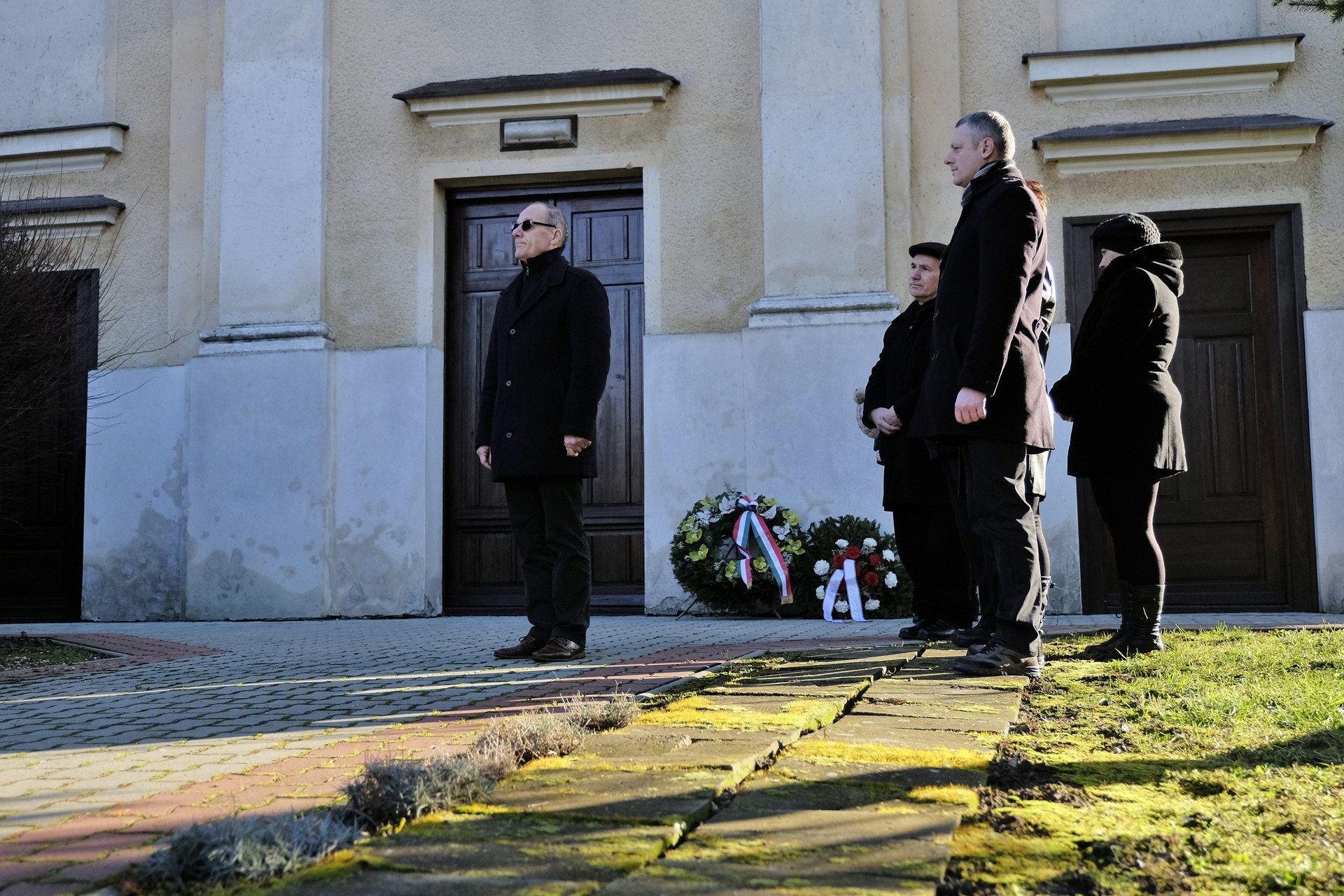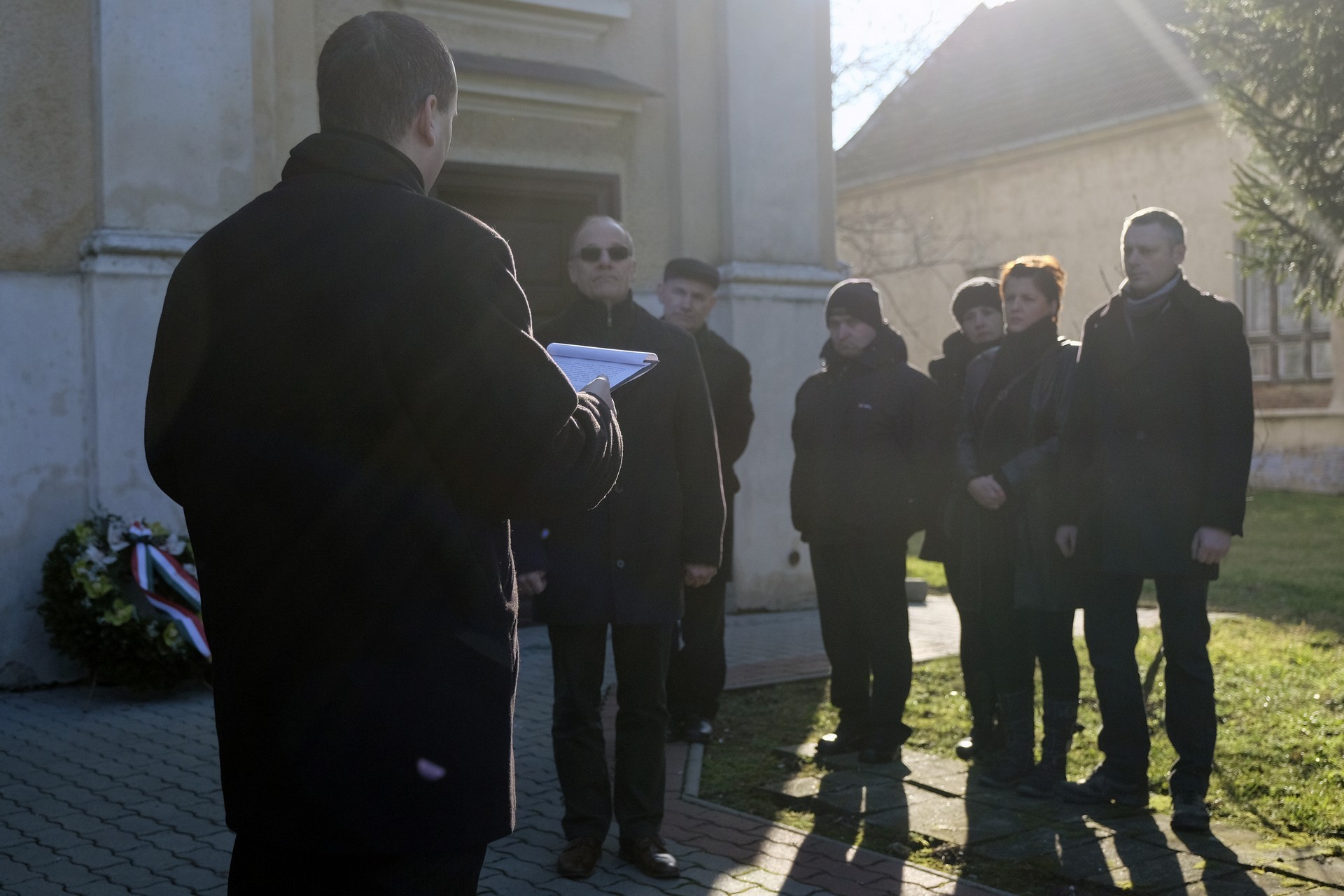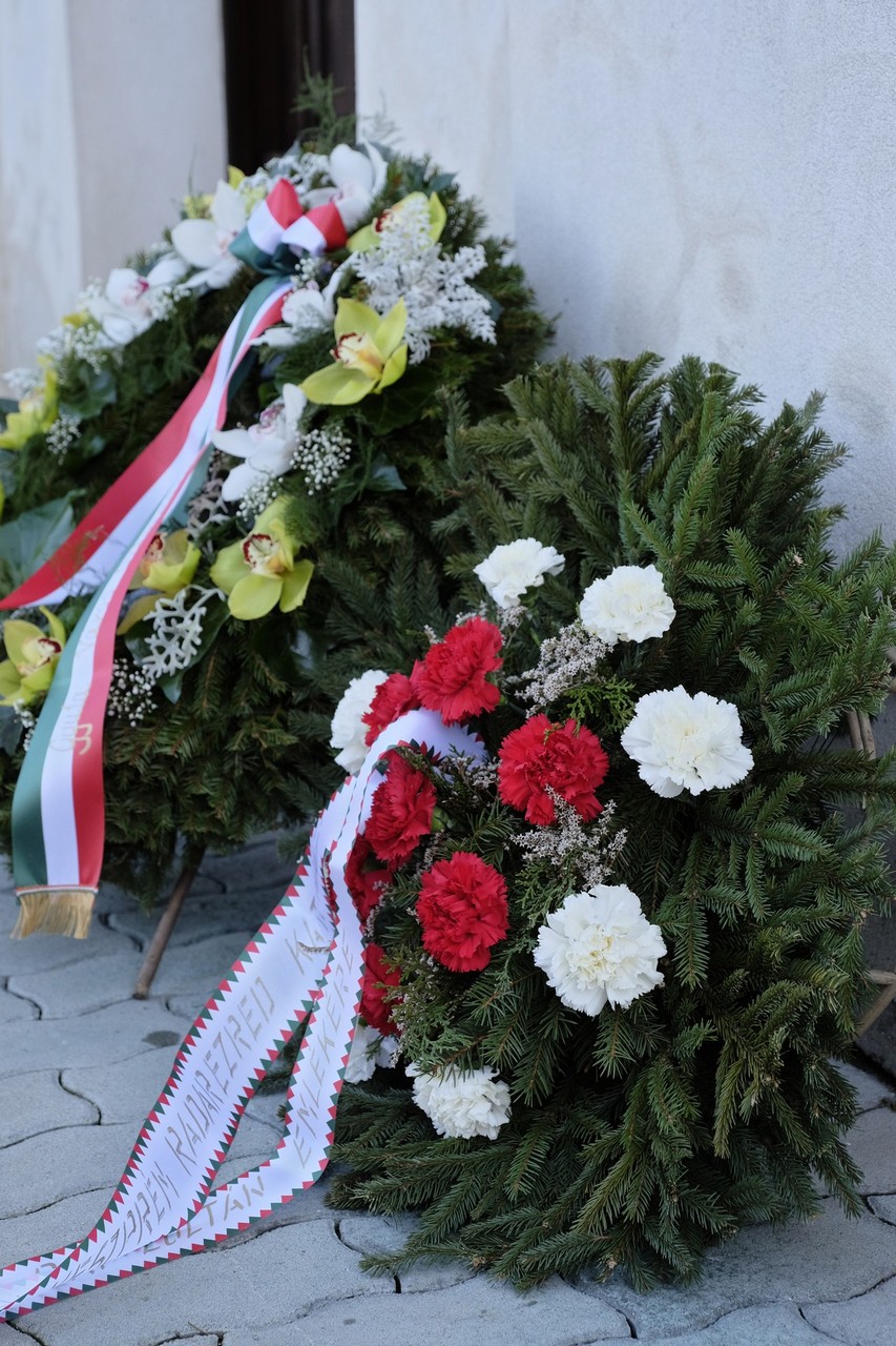 A rövid megemlékezés után az emlékműnél koszorúkat helyezett el Hegedűs István református lelkész, Bagyinszki Zoltán, a polgármesteri hivatal vezető főtanácsosa a gyulai önkormányzat és Szvarnasz Jorgosz, a Magyar Honvédség 54. Veszprém Radarezrede nevében.
