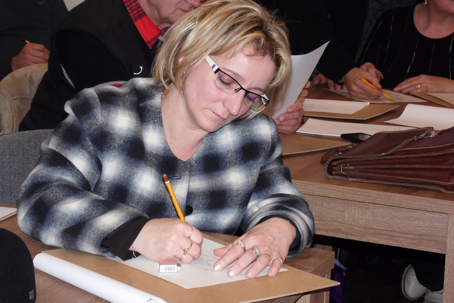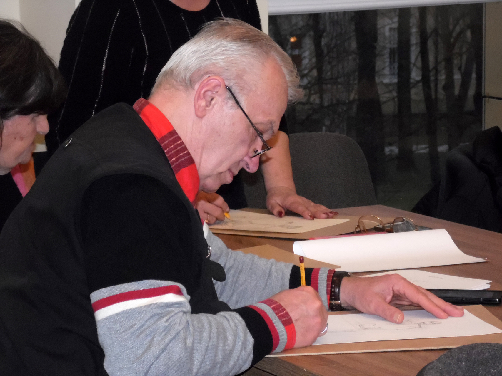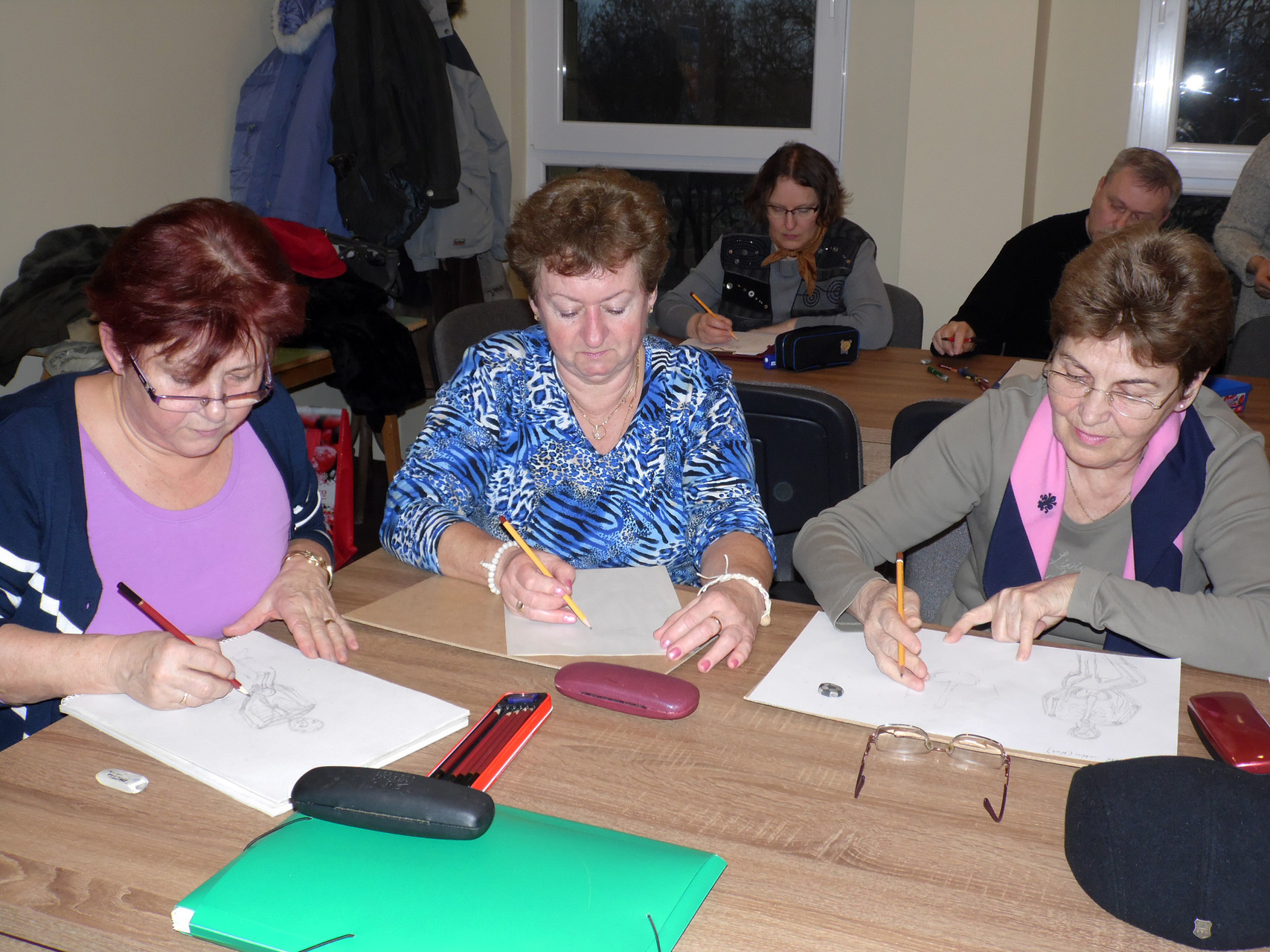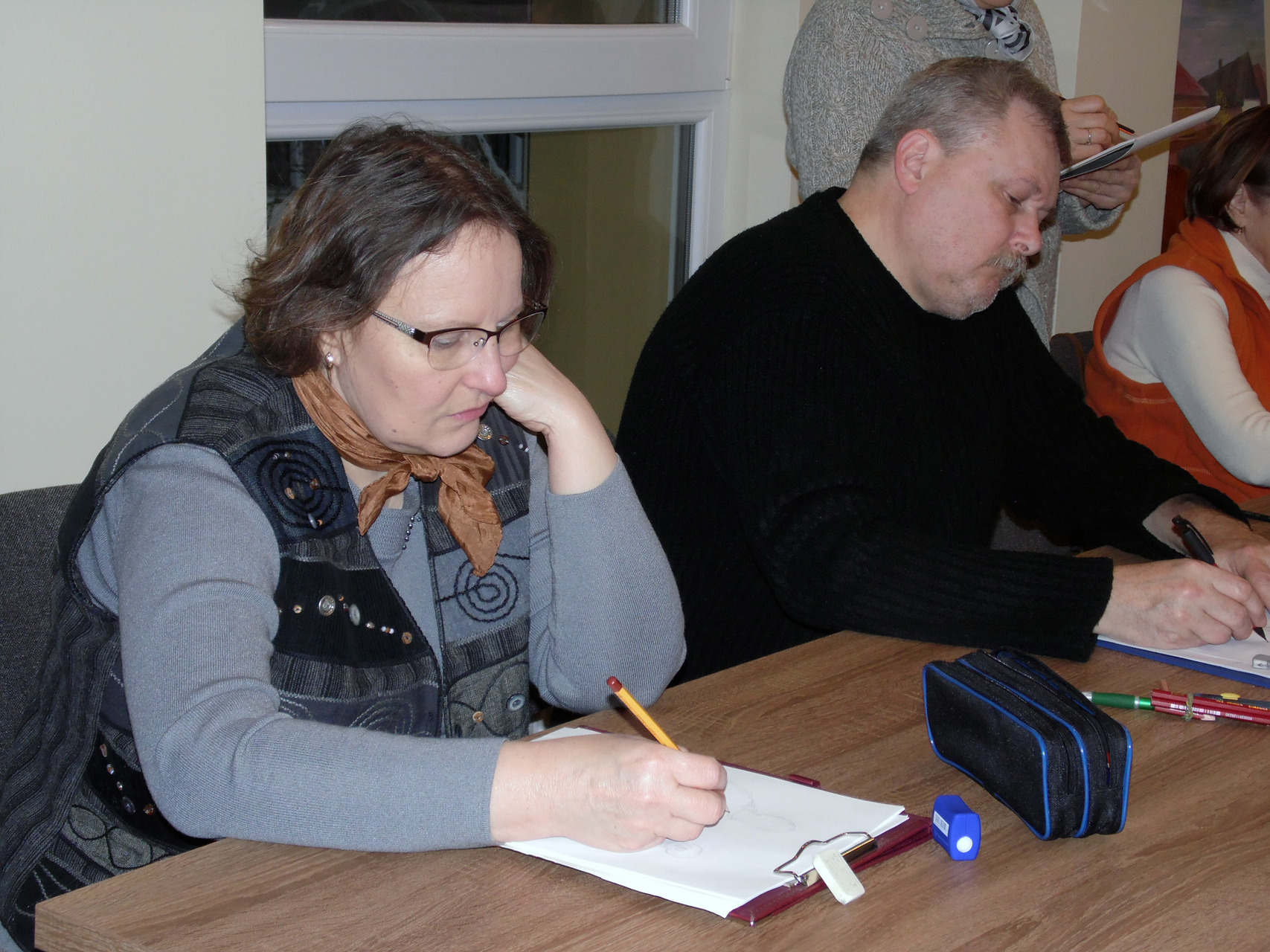A korábbi foglalkozásokon volt már szó az egyszerűsítésről, a geometriai ábrákról, a tér más-más meghatározásáról, végeztek képelemzéseket, foglalkoztak a perspektívával, ottjártunkkor pedig épp Szőke Sándor szobrász- és képzőművész segítette a résztvevők munkáját. A gyulai alkotóművész két alkalommal is a szabadegyetem vendége volt, először a művészeti anatómiáról tartott előadást, majd a gyakorlatban mutatott rá az alkotók rajzaiban jelentkező hibákra.