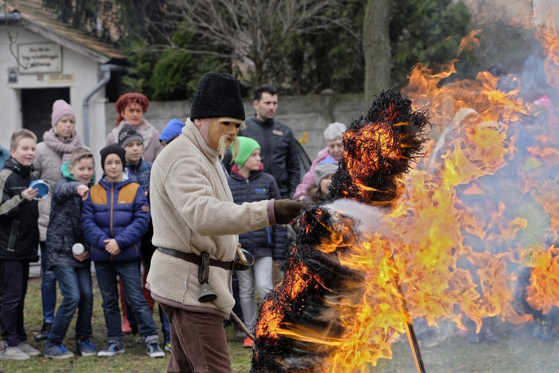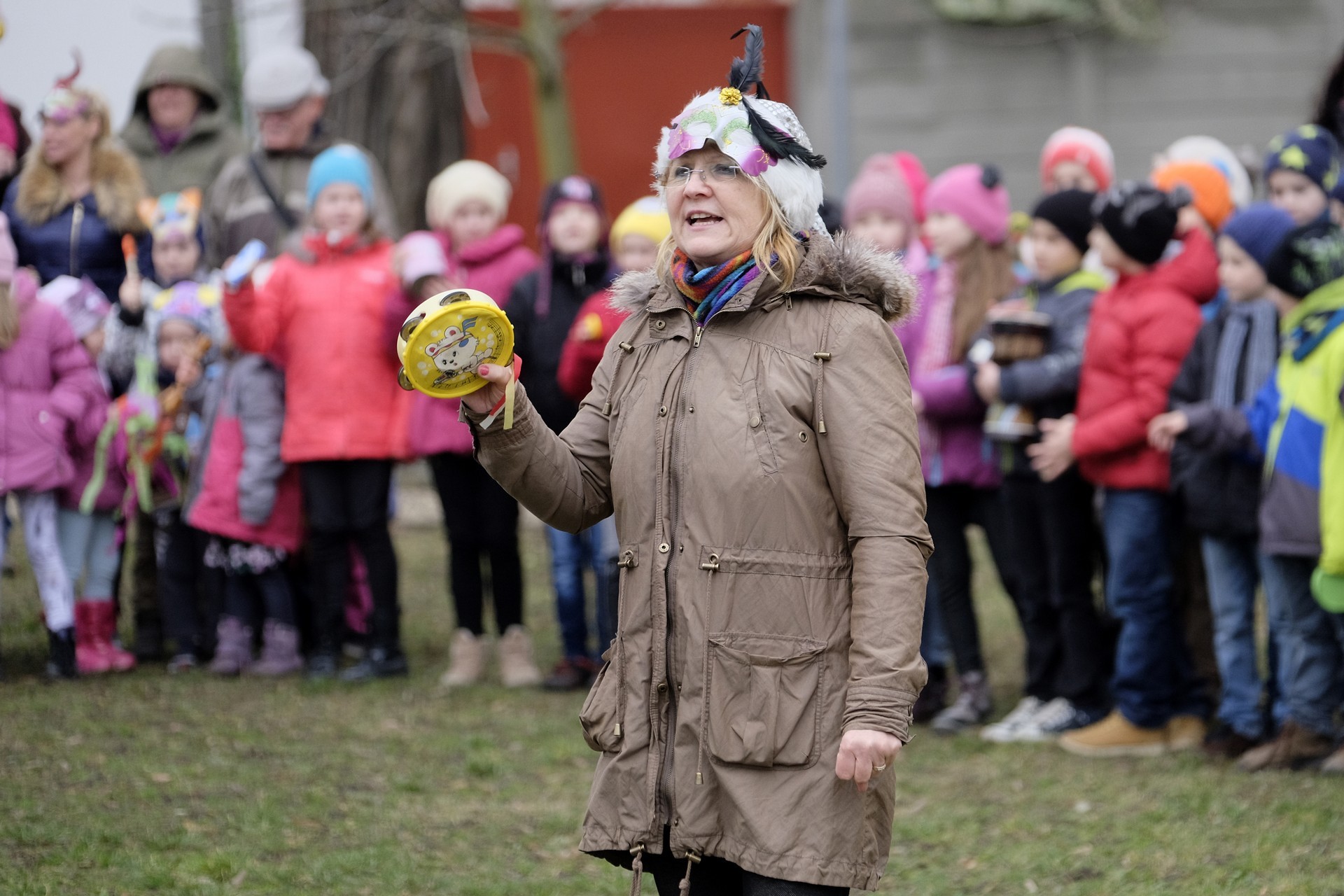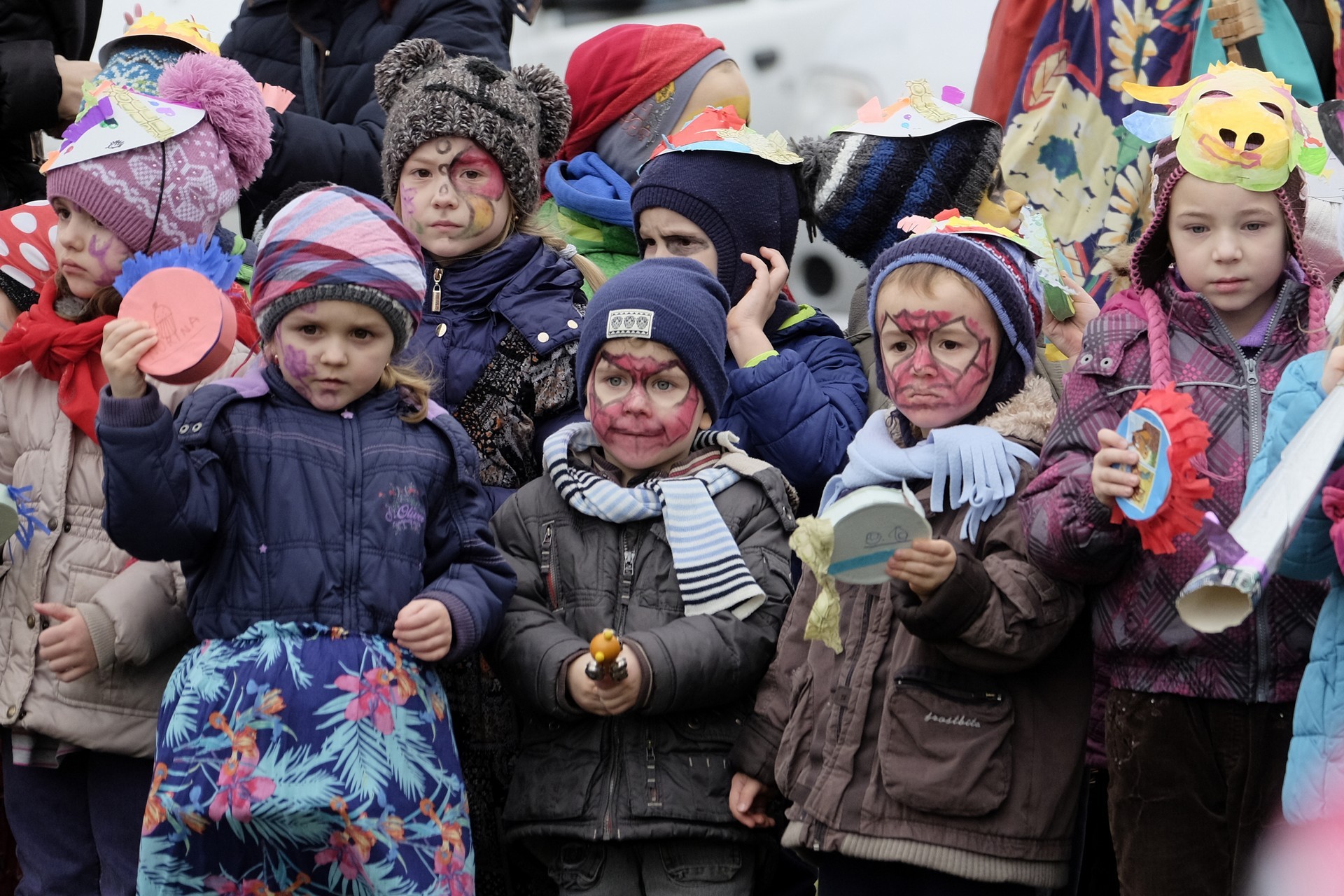 A gyerekeknek egy télűző maszkás segített elkergetni a rossz időt