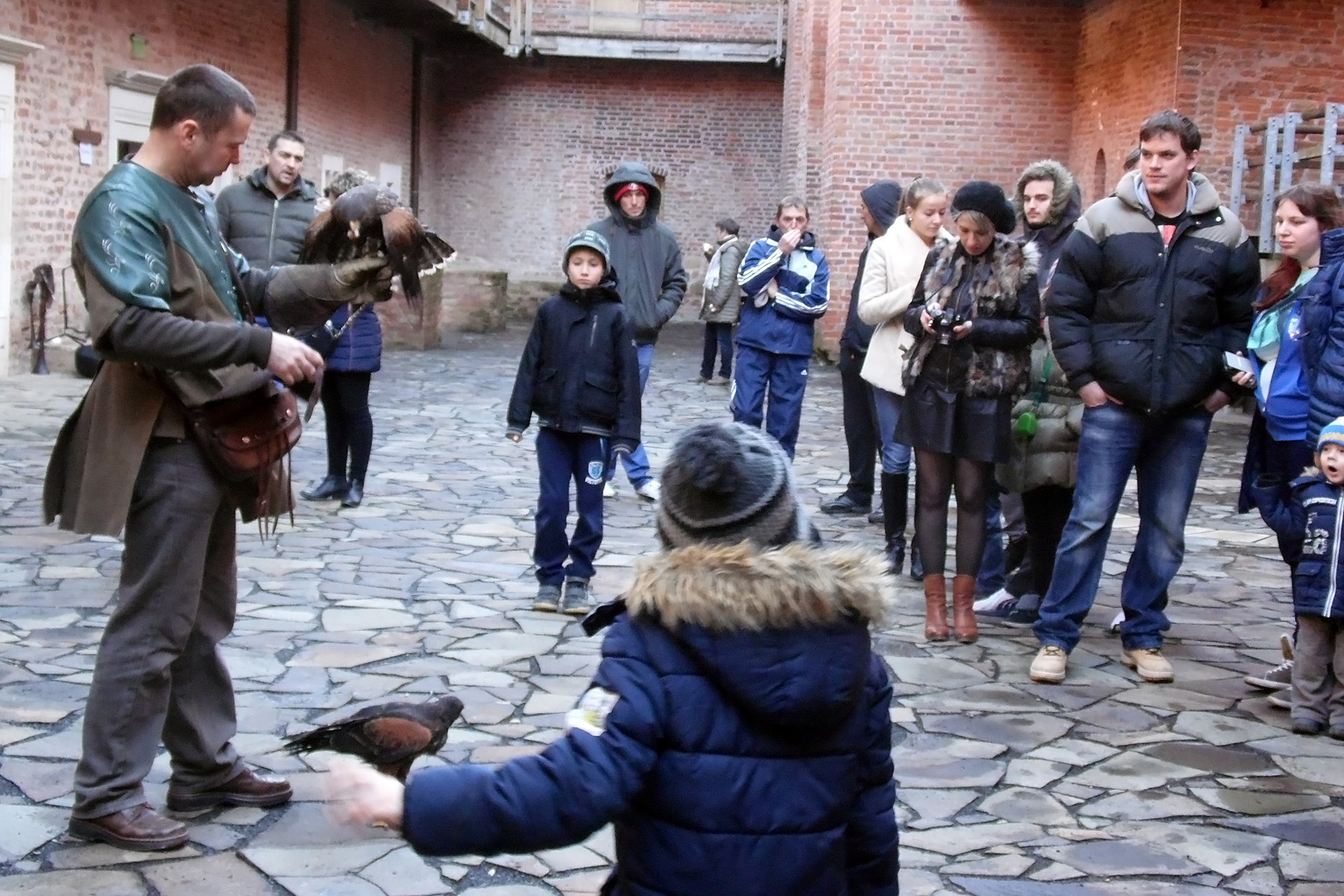 Czene Ferenc a lovagteremben tartott ismeretterjesztő előadást a solymászatról, majd a látogatók örömére két ölyv főszereplésével mutatta be a madarak ügyességét és engedelmességét. A legbátrabbak – természetesen a gyerekek – még saját karjukra is röptethették a figyelmes és emberbarát madarakat.