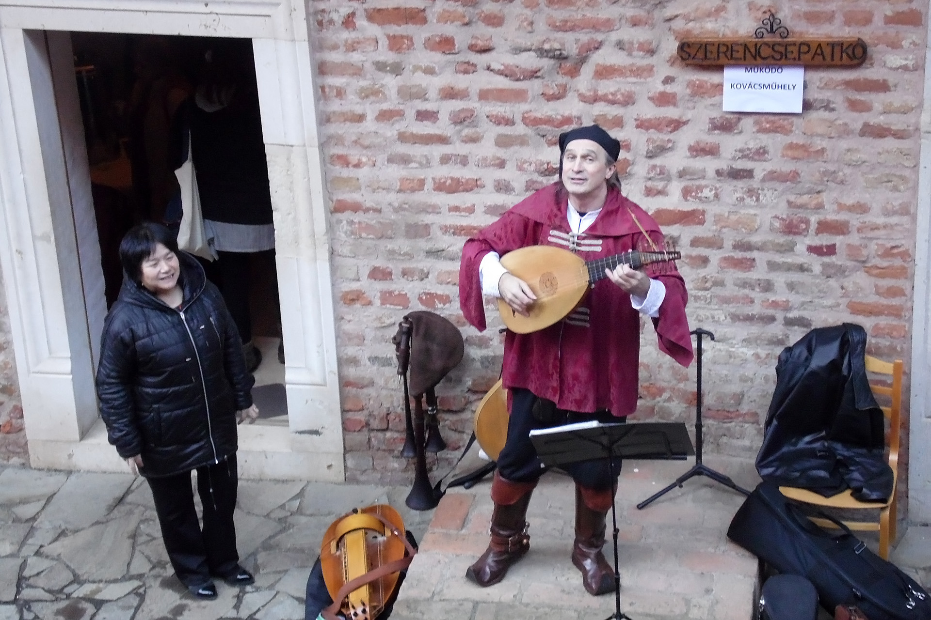 „Hogy Júliára talála, így köszöne neki…” – hallatszott 11 órától a várudvaron, ahol Béke Csaba lantművész korabeli hangszereken játszott Balassi Bálint szerelmes énekeiből, valamint a kor más témába illő szerzeményeiből is bemutatott néhányat. A lantművészt körbeálló közönség szívesen fogadta a témáiban a nap aktualitását erősítő dallamokat, egyesek vele énekeltek, miközben mások még táncra is penderültek közben.