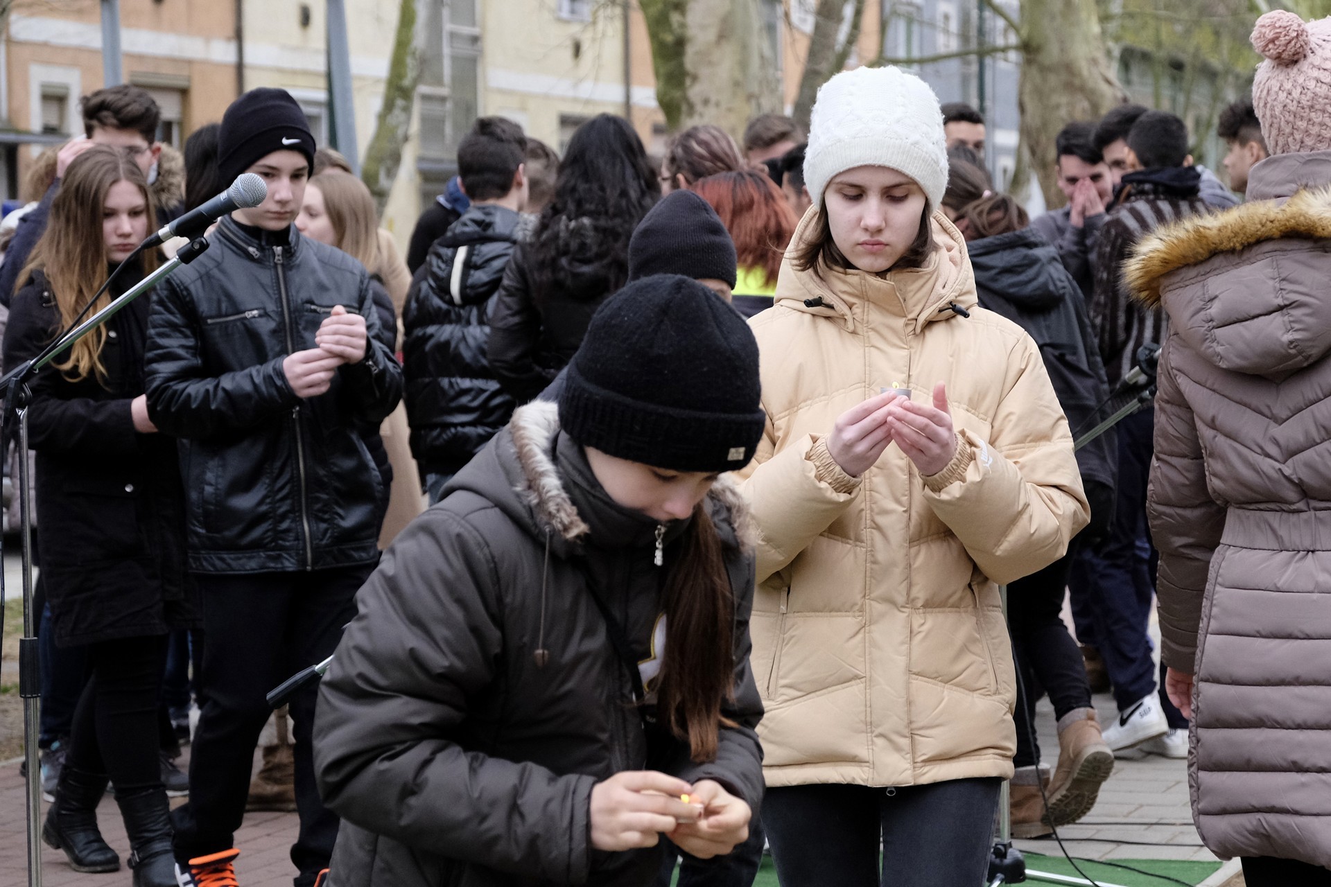 A Szózat elhangzása után a rendezvényt gyertyagyújtás és koszorúzás zárta, majd a megjelentek egy-egy szál virágot helyeztek az emlékmű előtt.