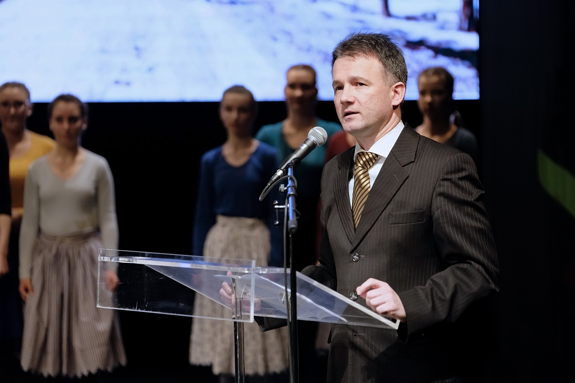 Az délutáni első előadás dr. Görgényi Ernő köszöntőjével indult. – Magam sem tudom, mikor volt akkora érdeklődésre számot tartó rendezvény Gyulán, amelyre kevésnek bizonyul a művelődési központ színházterme. A dupla teltház azt jelzi, micsoda várakozás övezte a mai gálát, az ország számos pontján élő egykori tagok közül is sokan hazatértek. Az 1950-ben, eredetileg Béke táncegyüttes néven indult csapat rengeteget tett a helyi értékek bemutatásáért, és az évtizedek során számos alkalommal bizonyítottak hazai pályán és idegenben is – kezdte gondolatait polgármester, aki beszéde végén 100 000 Ft-ot nyújtott át a gyulai önkormányzat nevében az éppen jubiláló csapatnak. A jelképesen átadott támogatást az együttes népviseletekre költi el.