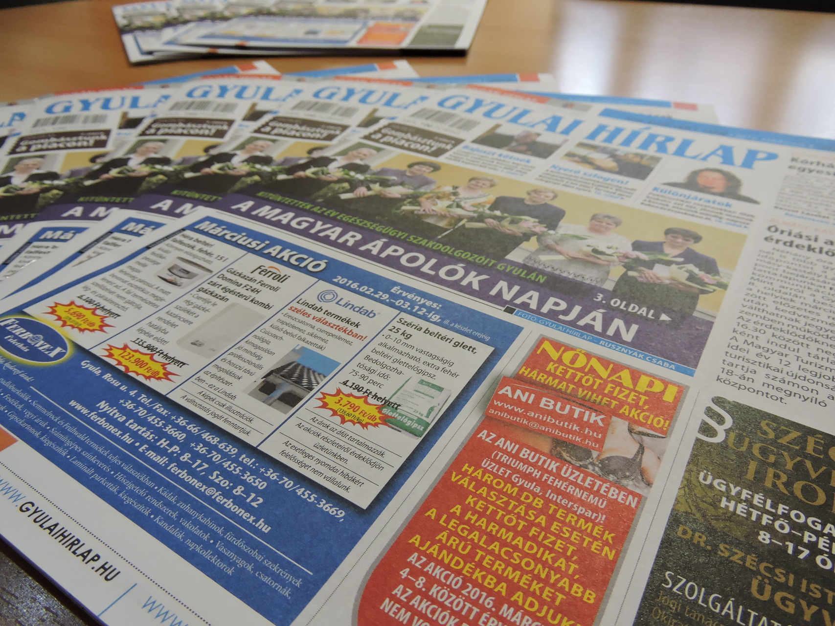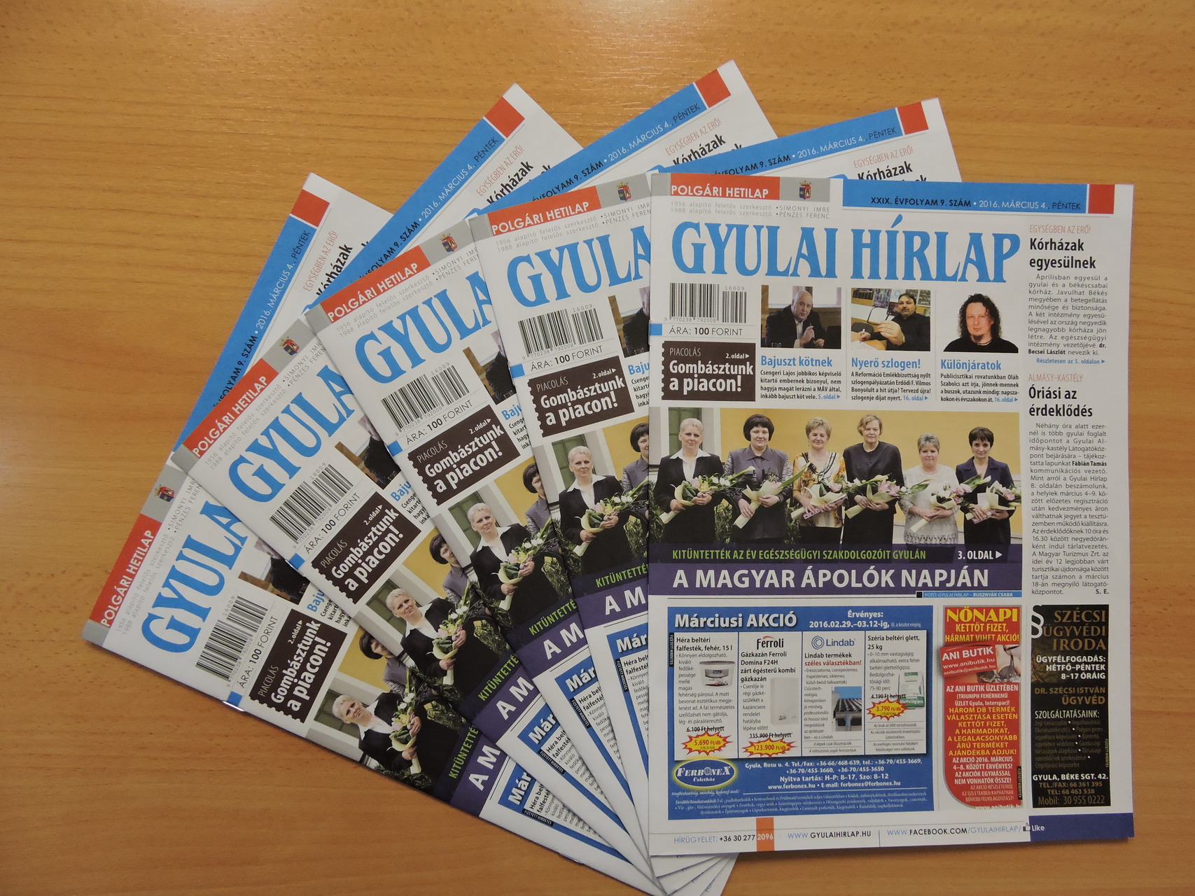 A Gyulai Hírlap legfrissebb száma 100 forintért megvásárolható szerkesztőségünkben (Gyula, Városház utca 20.), illetve az alábbiakban felsorolt elárusítóhelyeken: Volt V Nővérek (Szent István u. 32.), Tópart ABC (Pósteleki út 22/a), Híd utcai élelmiszerbolt (Híd u. 4.), Buszpályaudvari non-stop (Vásárhelyi Pál utca), Paradicsomi non-stop (Liliom köz), Reoma büfé (Várkert u. 1.), Szőlőskert ABC (Szőlőskert utca 16.), Kiss diszkont (Nagyváradi út 50.), Sarok ABC (Széchenyi u. 7/1.), Narancs ABC (Kazinczy út 1.), Kékszilva ABC (Dobozi út 14.), Vasútállomás újságos (Budrió 16. II/5.), Diófa ABC (Diófa u. 32.), Gabingo (Liliom köz), Élésker szupermarket (Kossuth Lajos tér 5.), Paradicsomi Élésker ABC (Temesvári út 173.), Budrió ABC (Béke sgt. 71.), Gyulavári COOP ABC (Széchenyi u. 53.), Nagyváradi úti COOP ABC (Nagyváradi út), Törökzugi COOP ABC (Budapest krt. 1.), Piaci lottózó (Honvéd utca), Idesüss Pékség (Tomcsányi utca), IQ Könyvesbolt (Kossuth tér), Kossuth téri Dohánybolt, Béke sgt.-i élelmiszerbolt (Béke sgt. 9-11.), Kórházi újságospavilon, Törökzugi Kiss ABC, Törökzugi dohánybolt, Buszpályaudvari újságos pavilon (Vásárhelyi P. u. 2.), Béke sgt-i újságos (Béke sgt. 12.), MOL kút (Csabai út 5.), Shell kút (Mártírok útja), Tesco (Csabai út), Interspar (Kétegyházi út).