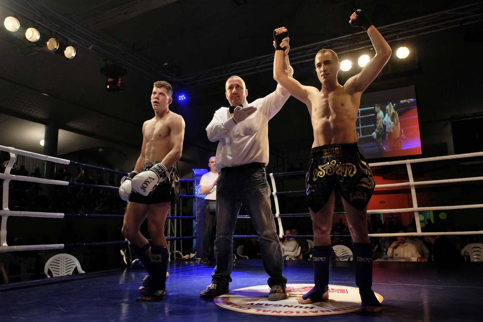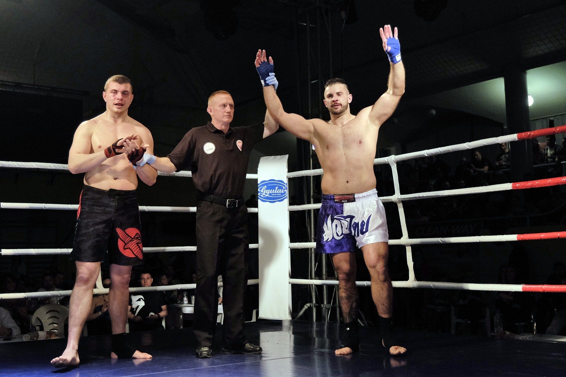 A helyi Nedreu Dániel és Okos Péter meccsén megnyugodhattak a gyulaiak: a kiegyenlített, kemény mérkőzésnek induló harcban végül Nedreu nyert. Ellenfele edzője, Szántó Béla a második menetben feladta a 3X3 menetesre tervezett K-1 meccset. Okos Péter áprilisban EB-selejtezőre készül, edzője alighanem így akarta elkerülni azt, hogy versenyzője komolyabb sérüléseket szenvedjen.