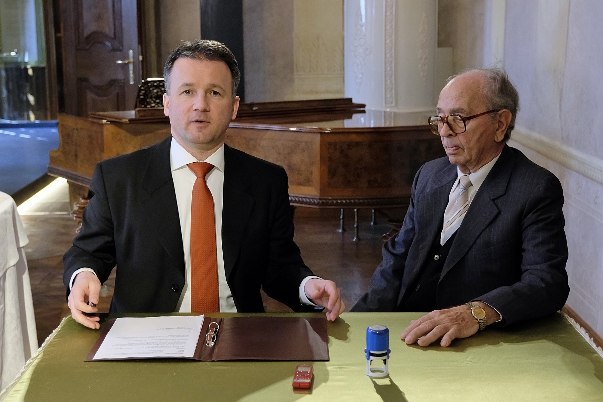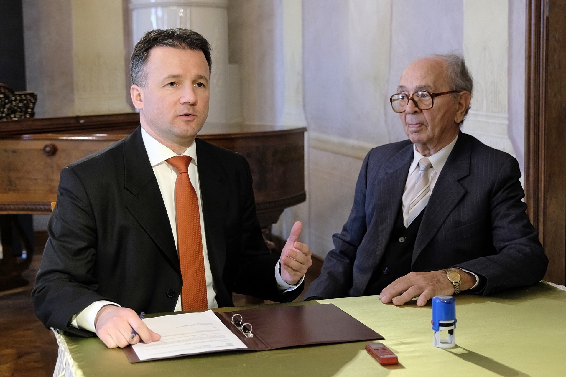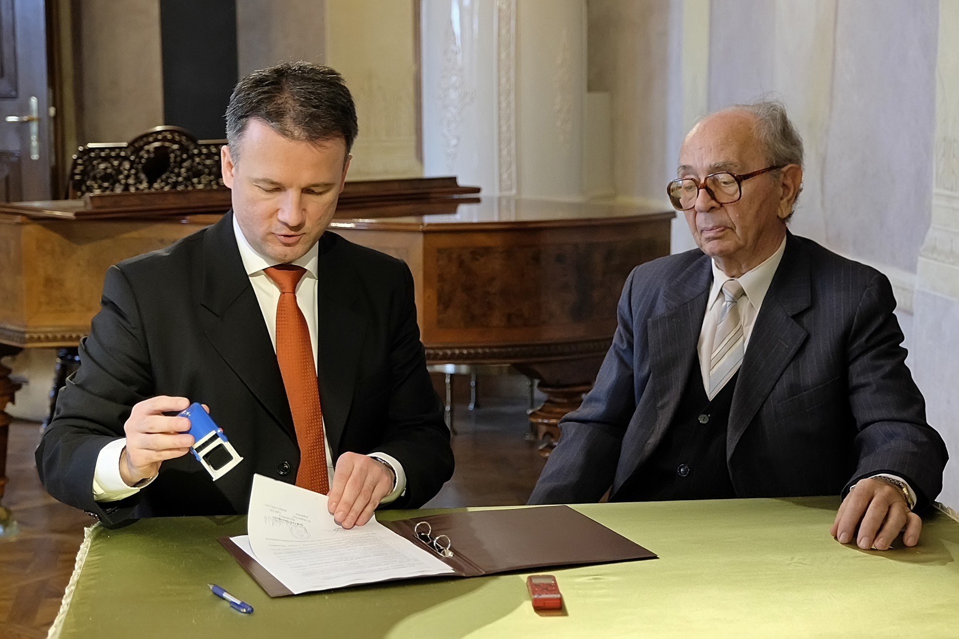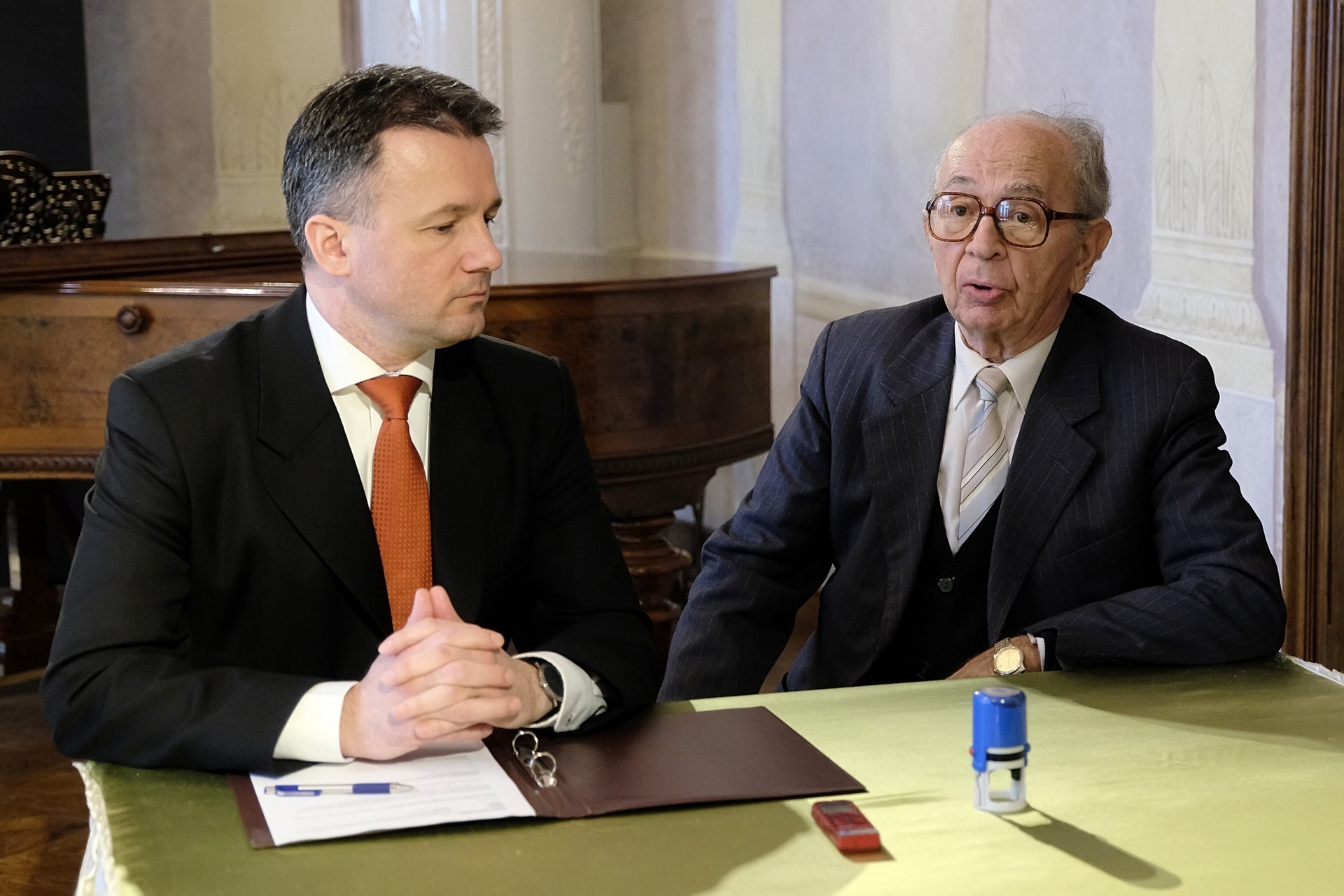 dr. Görgényi Ernő és DR. DELI LÁSZLÓ az Almásy-kastélyban írta alá az ajándékozási szerződést