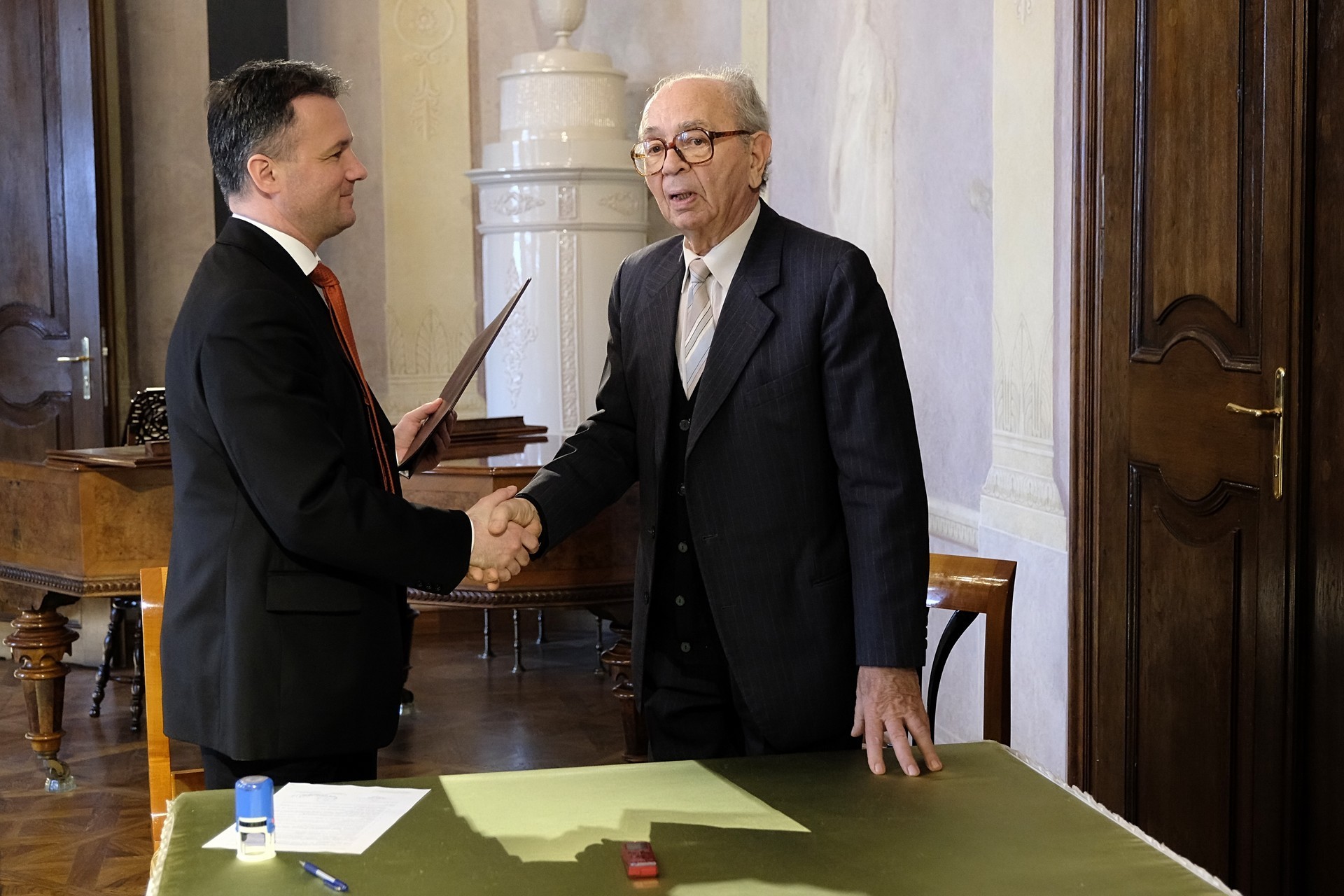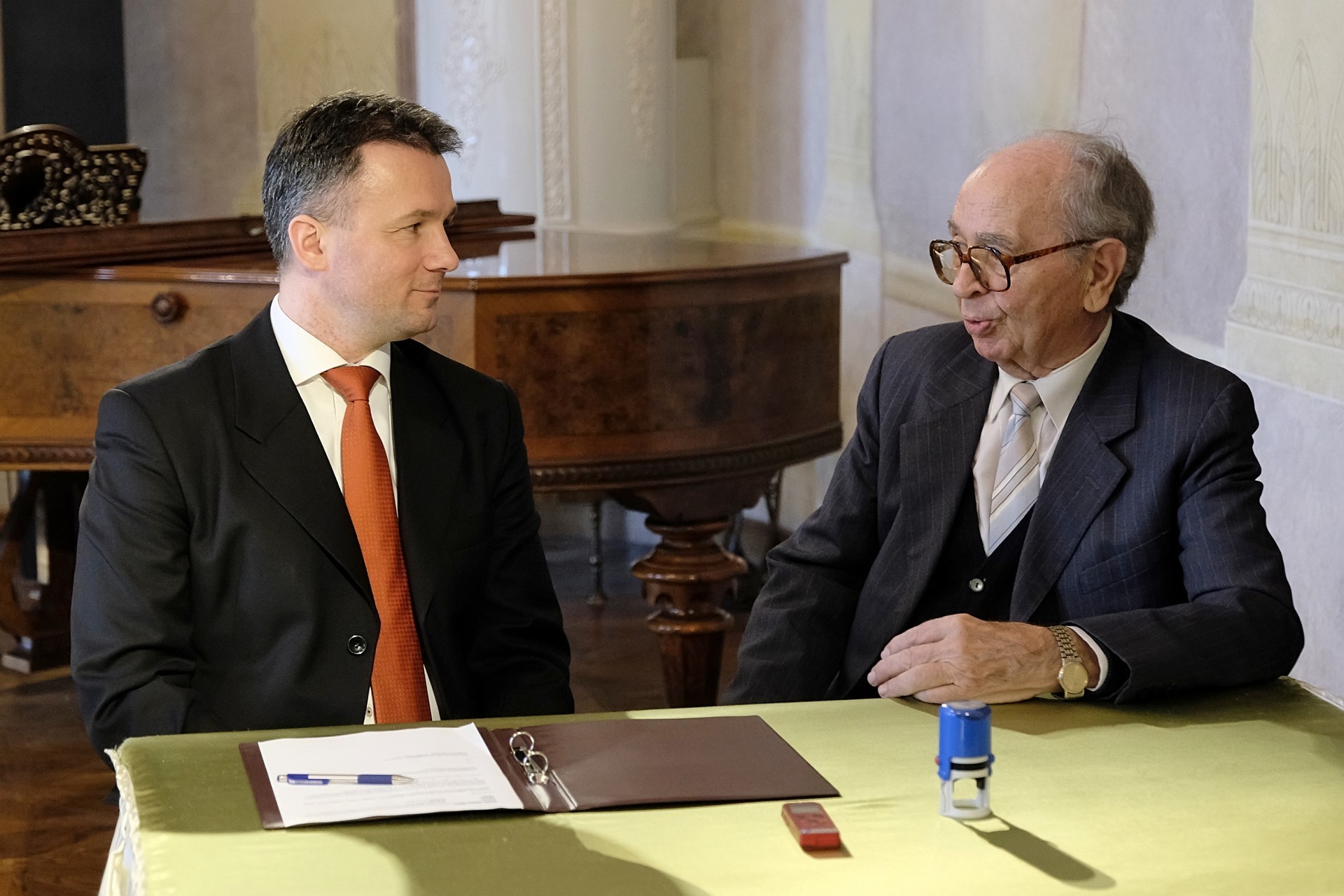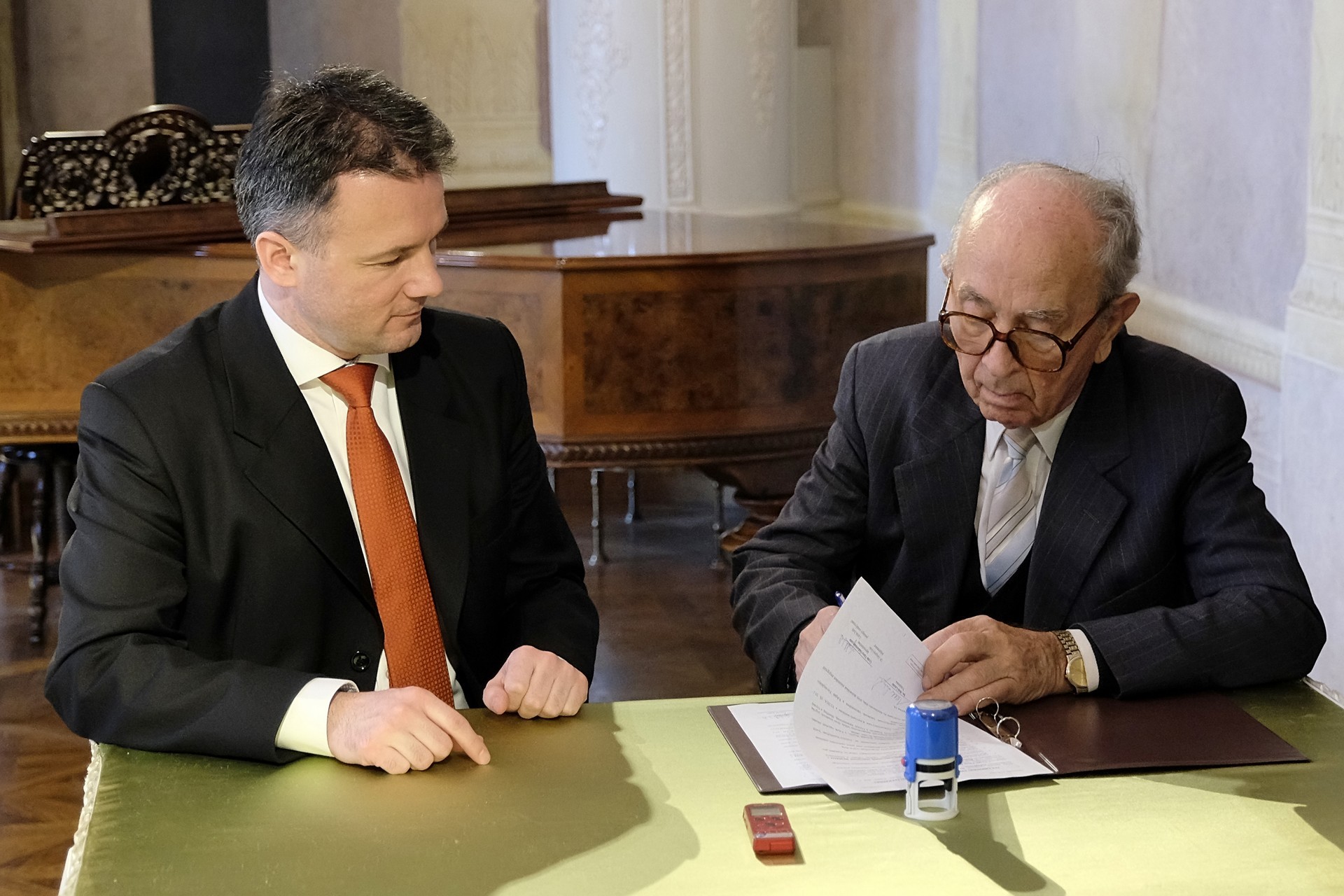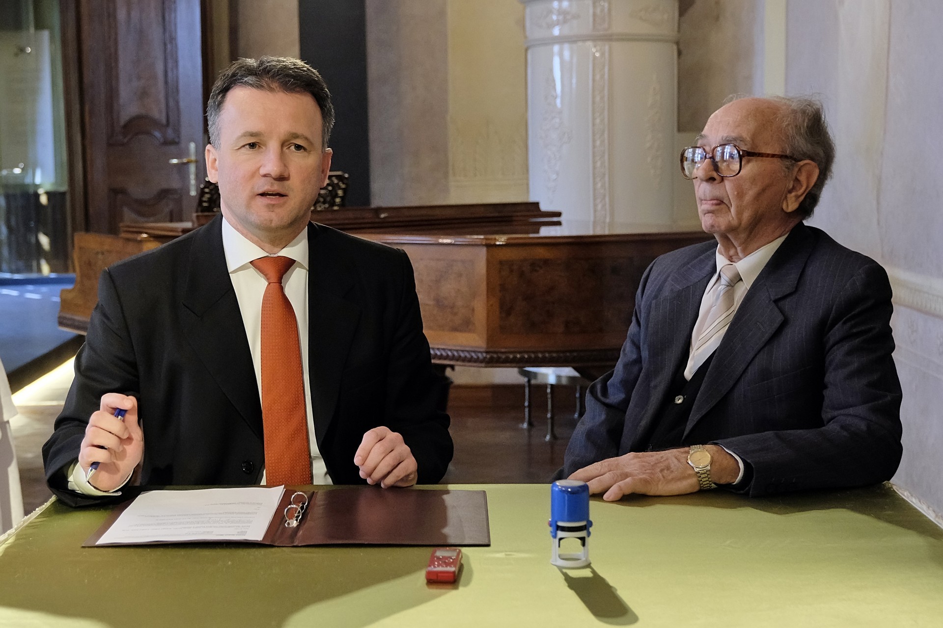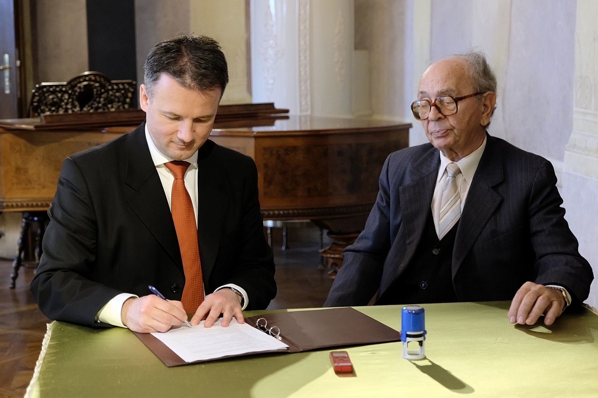 dr. Görgényi Ernő és DR. DELI LÁSZLÓ az Almásy-kastélyban írta alá az ajándékozási szerződést