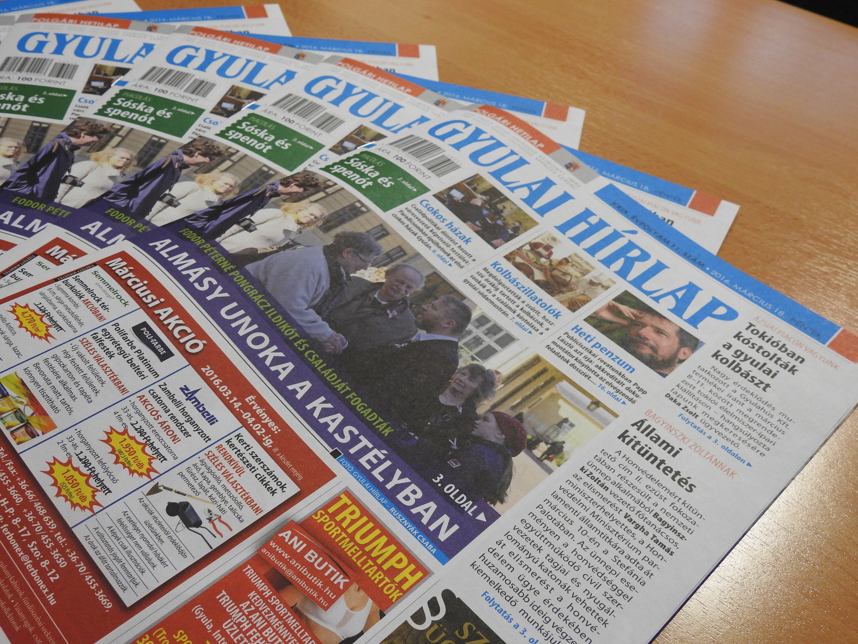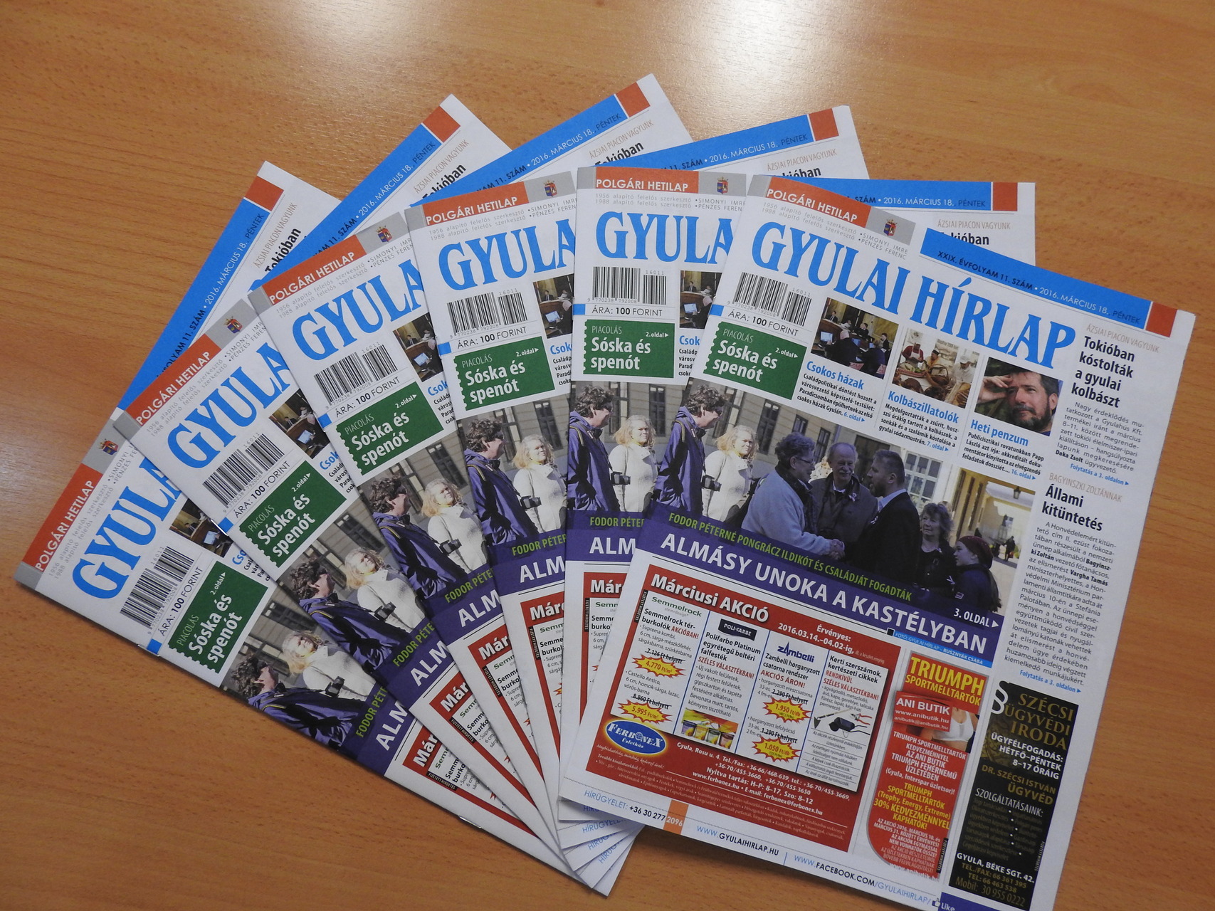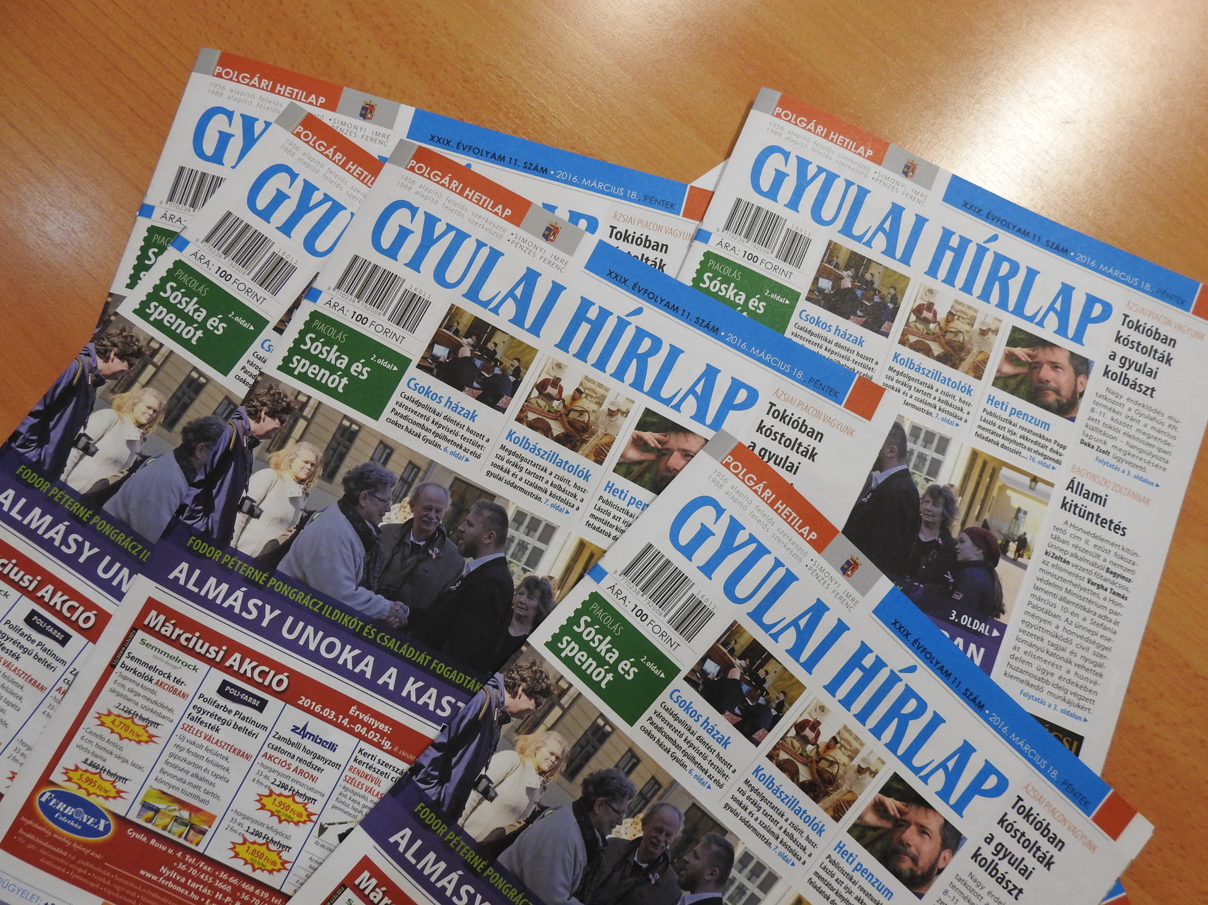 A Gyulai Hírlap legfrissebb száma 100 forintért megvásárolható szerkesztőségünkben (Gyula, Városház utca 20.), illetve az alábbiakban felsorolt elárusítóhelyeken: Volt V Nővérek (Szent István u. 32.), Tópart ABC (Pósteleki út 22/a), Híd utcai élelmiszerbolt (Híd u. 4.), Buszpályaudvari non-stop (Vásárhelyi Pál utca), Paradicsomi non-stop (Liliom köz), Reoma büfé (Várkert u. 1.), Szőlőskert ABC (Szőlőskert utca 16.), Kiss diszkont (Nagyváradi út 50.), Sarok ABC (Széchenyi u. 7/1.), Narancs ABC (Kazinczy út 1.), Kékszilva ABC (Dobozi út 14.), Vasútállomás újságos (Budrió 16. II/5.), Diófa ABC (Diófa u. 32.), Gabingo (Liliom köz), Élésker szupermarket (Kossuth Lajos tér 5.), Paradicsomi Élésker ABC (Temesvári út 173.), Budrió ABC (Béke sgt. 71.), Gyulavári COOP ABC (Széchenyi u. 53.), Nagyváradi úti COOP ABC (Nagyváradi út), Törökzugi COOP ABC (Budapest krt. 1.), Piaci lottózó (Honvéd utca), Idesüss Pékség (Tomcsányi utca), IQ Könyvesbolt (Kossuth tér), Kossuth téri Dohánybolt, Béke sgt.-i élelmiszerbolt (Béke sgt. 9-11.), Kórházi újságospavilon, Törökzugi Kiss ABC, Törökzugi dohánybolt, Buszpályaudvari újságos pavilon (Vásárhelyi P. u. 2.), Béke sgt-i újságos (Béke sgt. 12.), MOL kút (Csabai út 5.), Shell kút (Mártírok útja), Tesco (Csabai út), Interspar (Kétegyházi út).