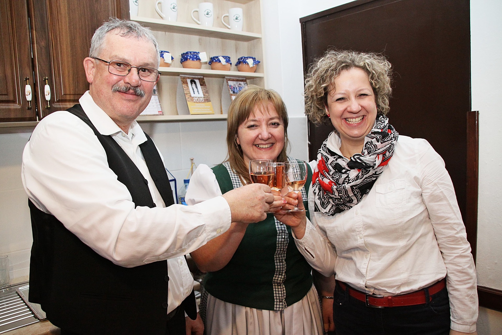 A program további része azonban már a közelmúltban felújított épület falain belül folytatódott, ahol az önkormányzati elnök elsőként épp ezekre a változásokra hívta fel a figyelmet. Mittag Mónika elmondta, hogy az épület az elmúlt 30 év során nem részesült felújításban, de amióta közösségük rendszeresen ott tartja ünnepségeit, e feladat elvégzésére is készült. A gyulai Német Klub fenntartása 2007 óta az ő kezükben van, és mostanra érkezett el annak az ideje, hogy a közösségi tér még otthonosabbá és korszerűbbé váljon. Ezért három szervezet összefogásával és sok-sok önzetlenség eredményeként a múlt év során megtörtént a belső és külső festés, az épület nyílászáróinak cseréje, valamint a konyha kibővítése, amibe egy mosogatógépet is sikerült vásárolniuk.