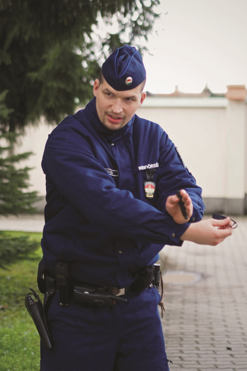 – Úgy gondolkodtam, ha megérkeznek a mentők, a férfi ellátásához úgyis szükség lesz a segítségemre, ezért nem akartam várni, mentem utána – folytatta a járőr. – Megálltam az ajtóban, a férfi a folyosón volt, újra megkértem, igazolja magát. Láttam a dühöt az arcán, határozottan megindult felém. Leszegte a fejét, és fura, gúnyos mosollyal nézett fel rám. Nem volt időm elővenni a szolgálati könnygázszóró sprayt, felkapott egy kést. Később derült ki, 15 centiméteres a pengéje. Pillanatok alatt játszódott le minden. Felemelte a kést, és felülről a mellkasom felé szúrt. Bal alkarral eltérítettem, eltoltam a karját, és hátraléptem. Tudtam, a földre kell vinnem, különben magában és másokban is kárt tehet. Kétszer megütött, ennek ellenére folytattam az intézkedést, letepertem, közben járőrtársam, Ilyés Lajos őrmester kicsavarta kezéből a kést, amely a földre esett, majd közös erővel megbilincseltük a férfit.