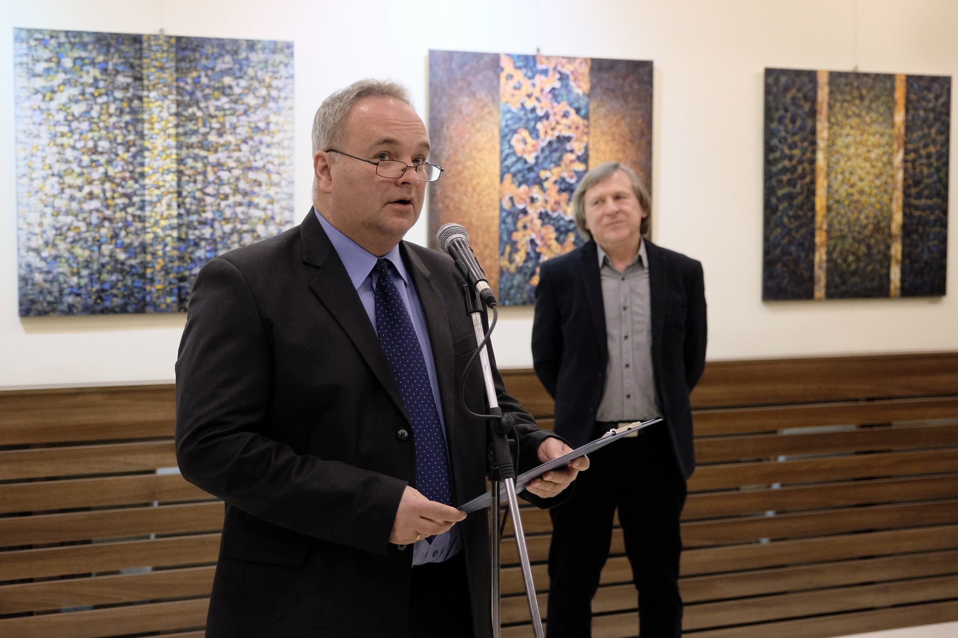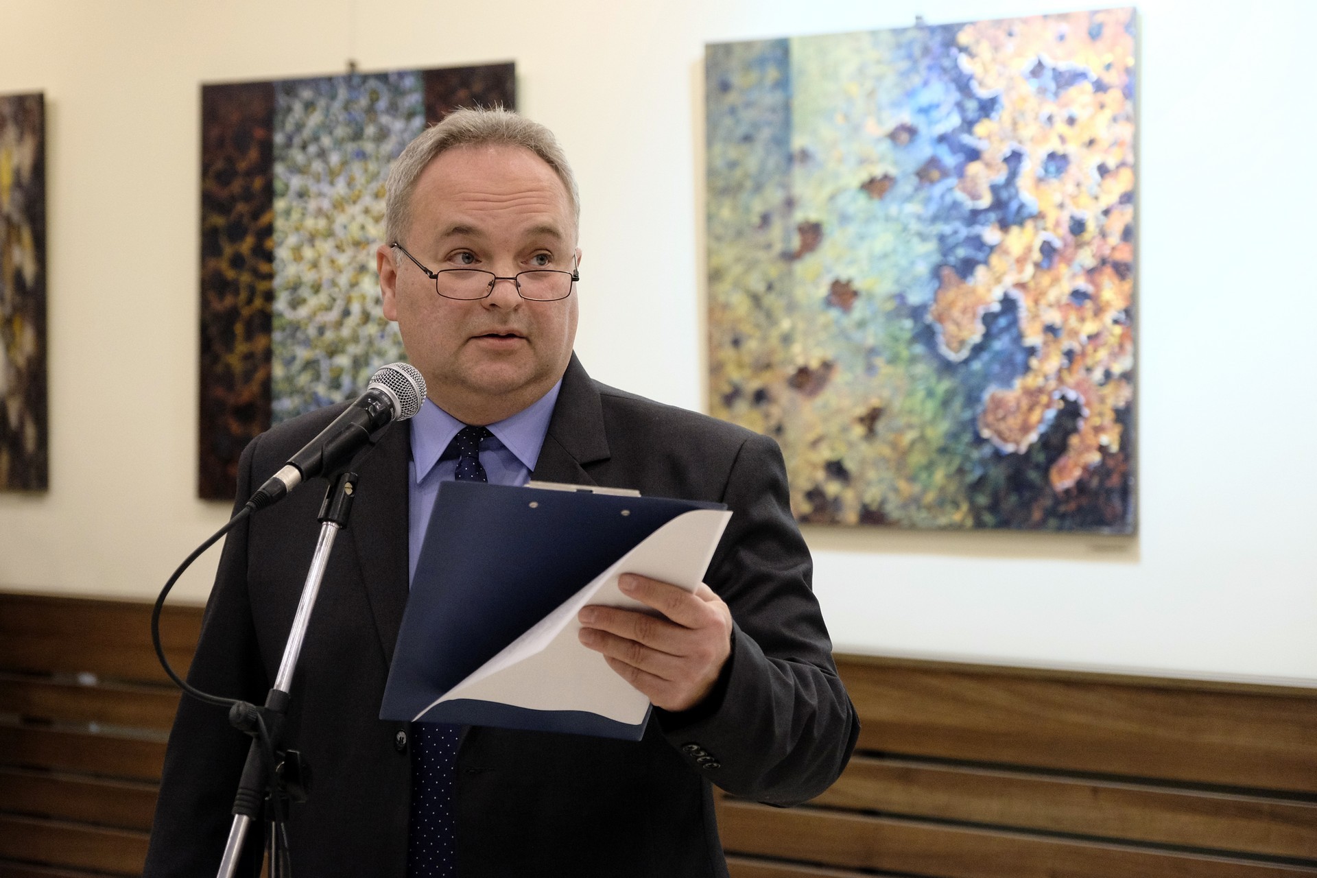 – Amikor az ember a műtermében készíti a képeit, nem arra gondol, hogy egy kiállításon majd a közönség elé kerülnek. Én egyszerűen csak szeretek ezzel foglalkozni, mert olyan élvezetet jelent számomra, ami kiemel a hétköznapok szürkeségéből. Az persze öröm, ha a képeket mások is látják és másoknak is tetszenek, nem csak nekem – mondta a megnyitón a szót magához ragadó művész.