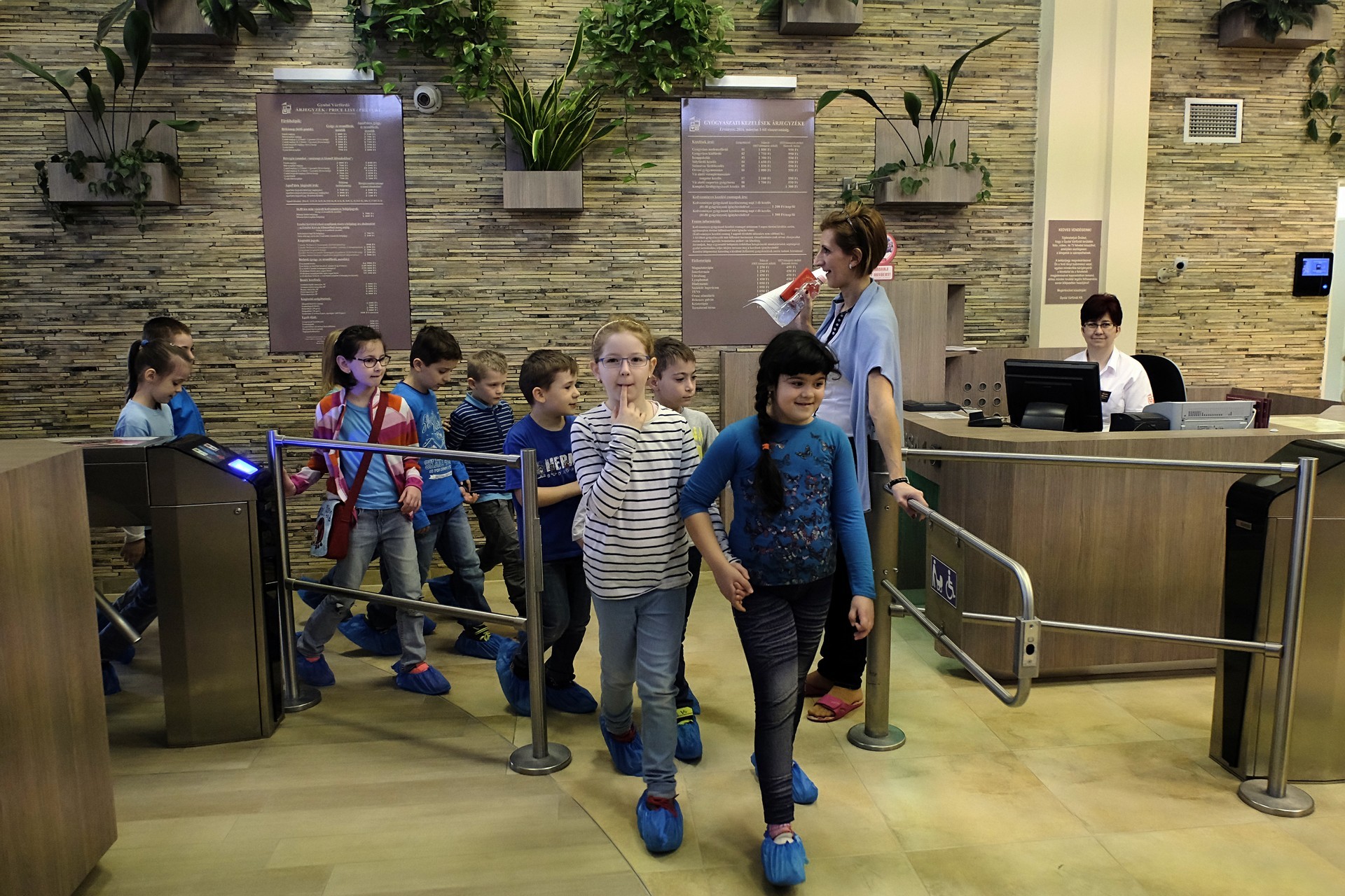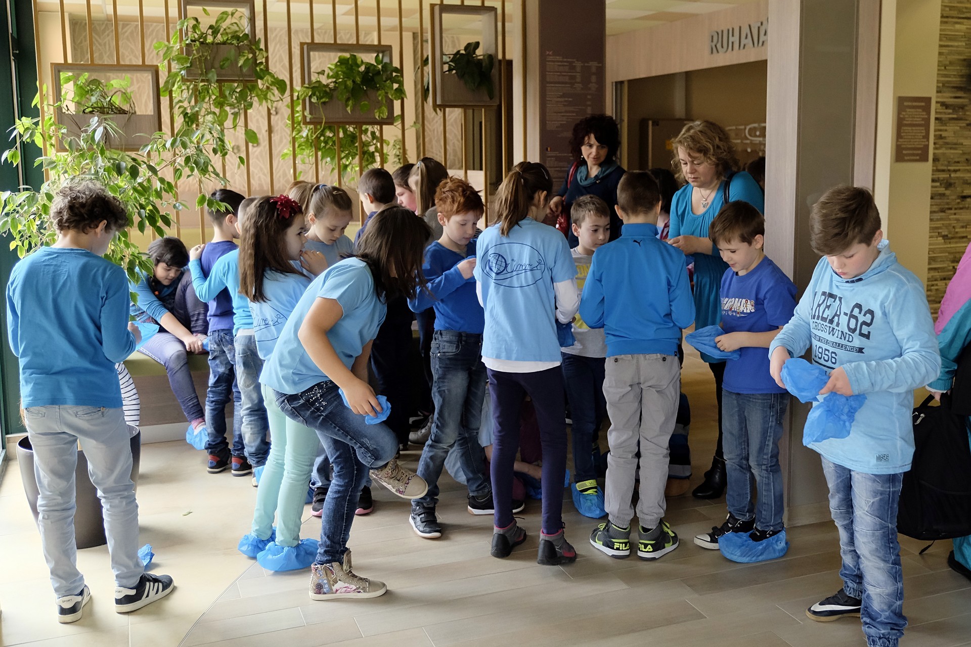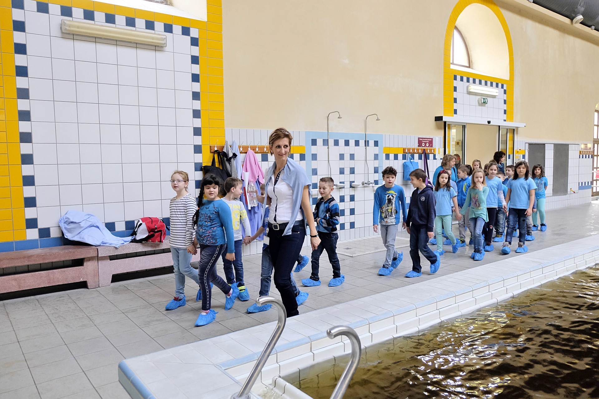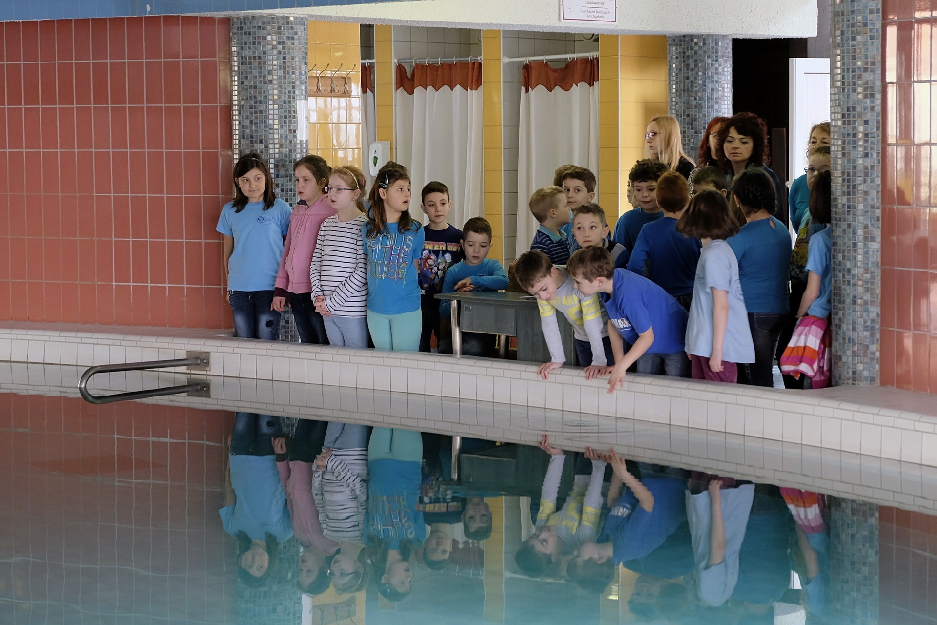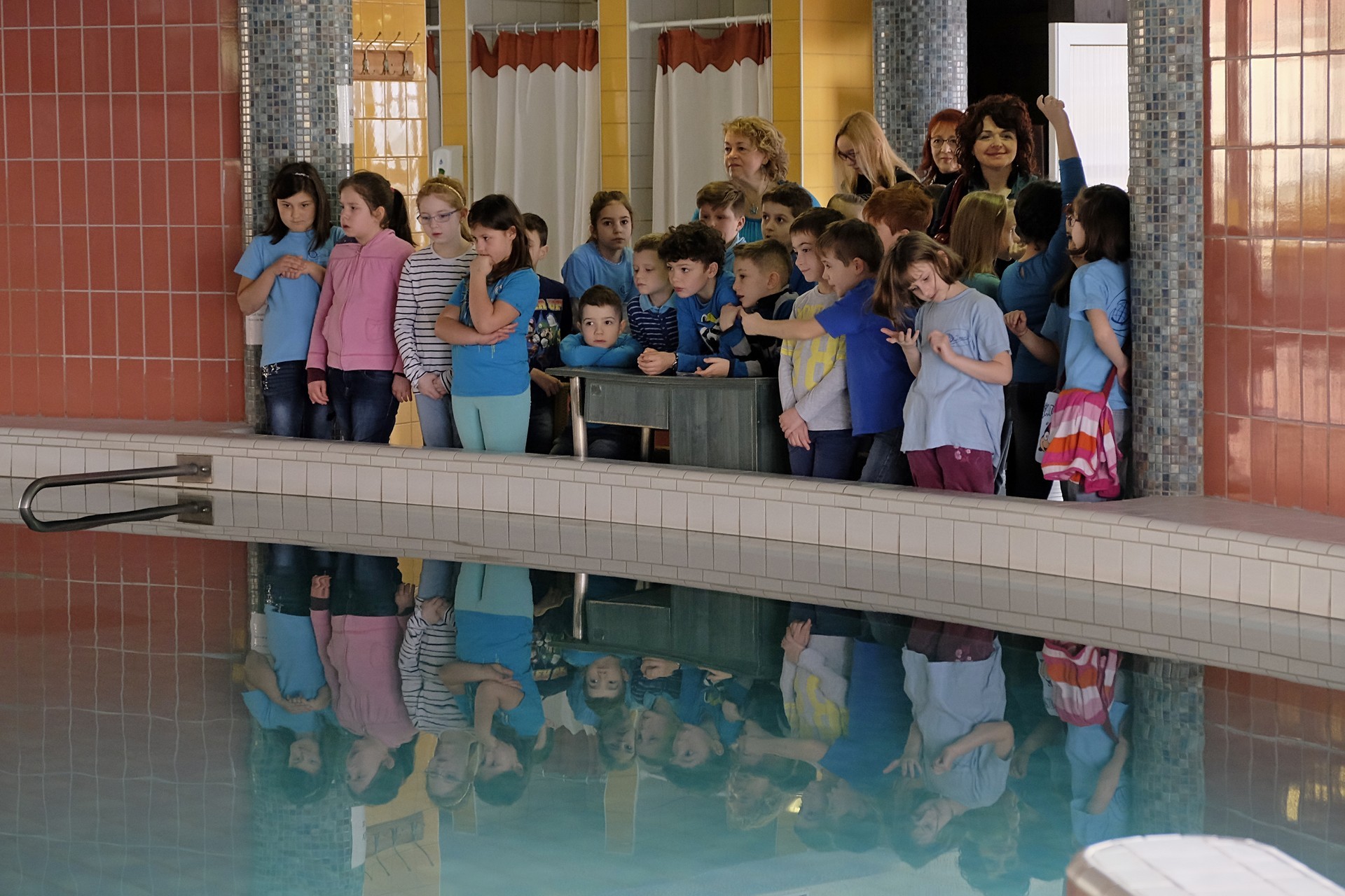 Aznap több csoport is indult, a legelső, 9 órás csapatban a Dürer Albert Általános Iskola 2.a osztályos tanulói vettek részt, akik lelkesen válaszoltak alkalmi túravezetőjük kérdéseire. A sétát elindító eligazításon Keszeli Hajnalka megkérdezte az alsósokat arról, vajon tudják-e, milyen szolgáltatásai vannak egy ilyen fürdőnek, meddig szabad a gyógyvízben ülni, és hogy mire kell vigyázni egy ilyen helyen. Az iskolások megegyeztek abban, hogy leginkább arra, hogy el ne törjön a kezük, majd a fürdő munkatársa után eredve célba vették a gyógyvizes medencéket.