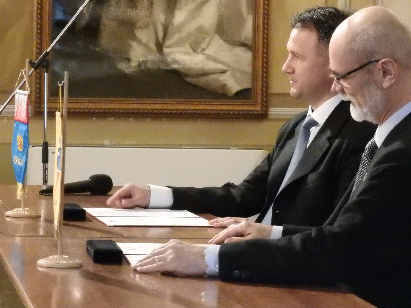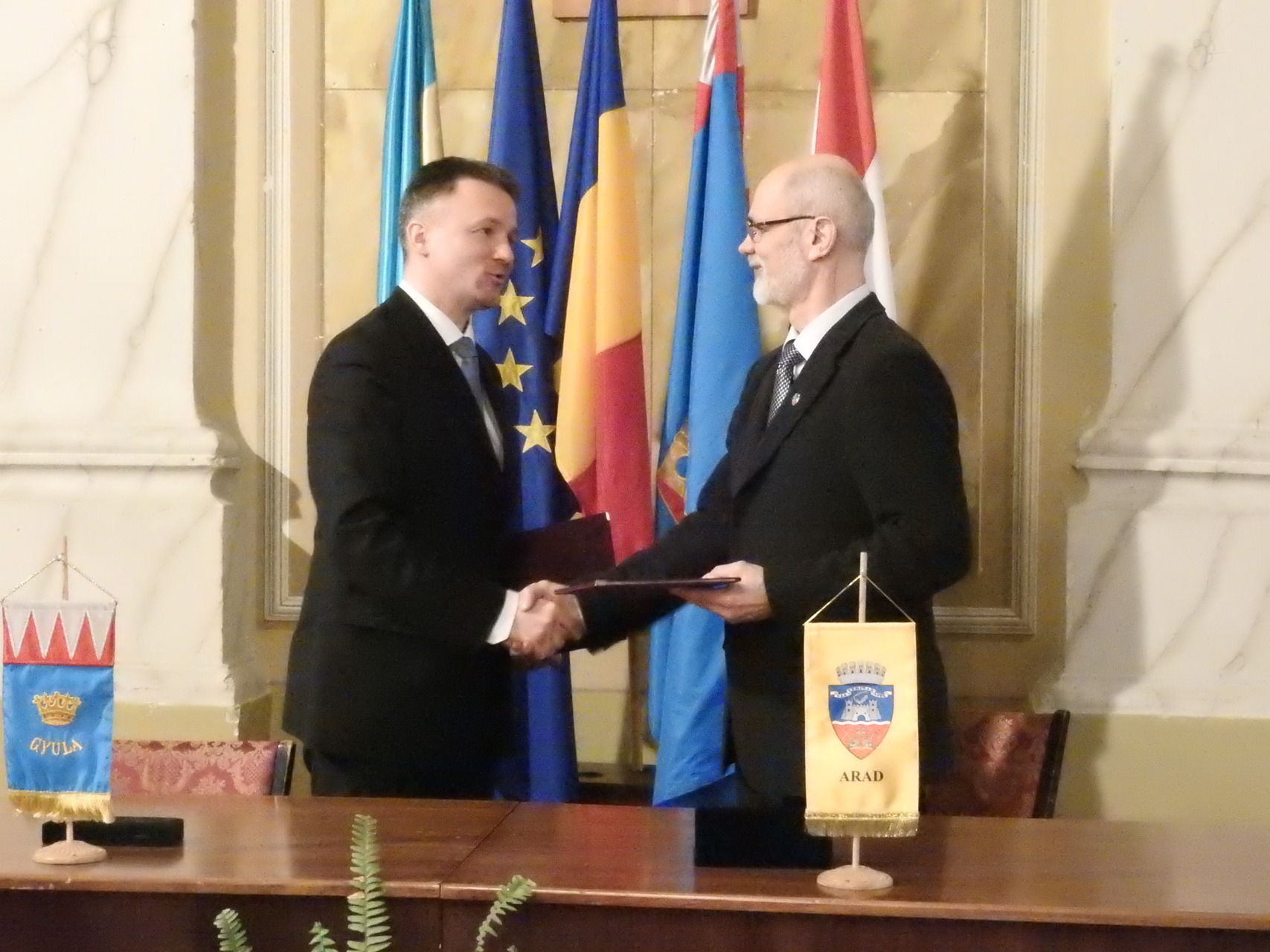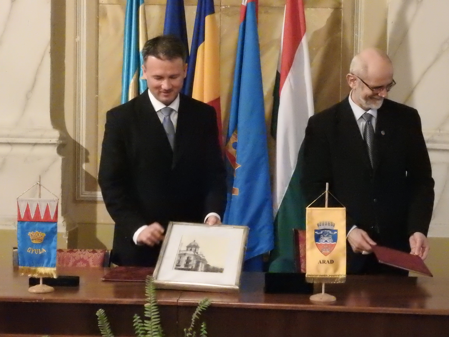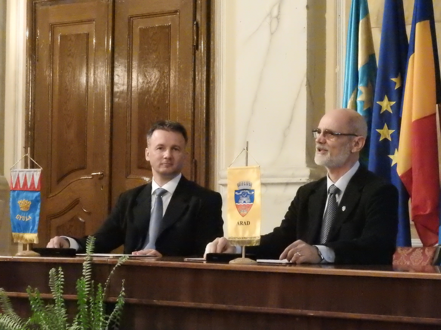 Dr. Görgényi Ernő és Bognár Levente a gyulai városházán írta alá a testvárvárosi együttműködést