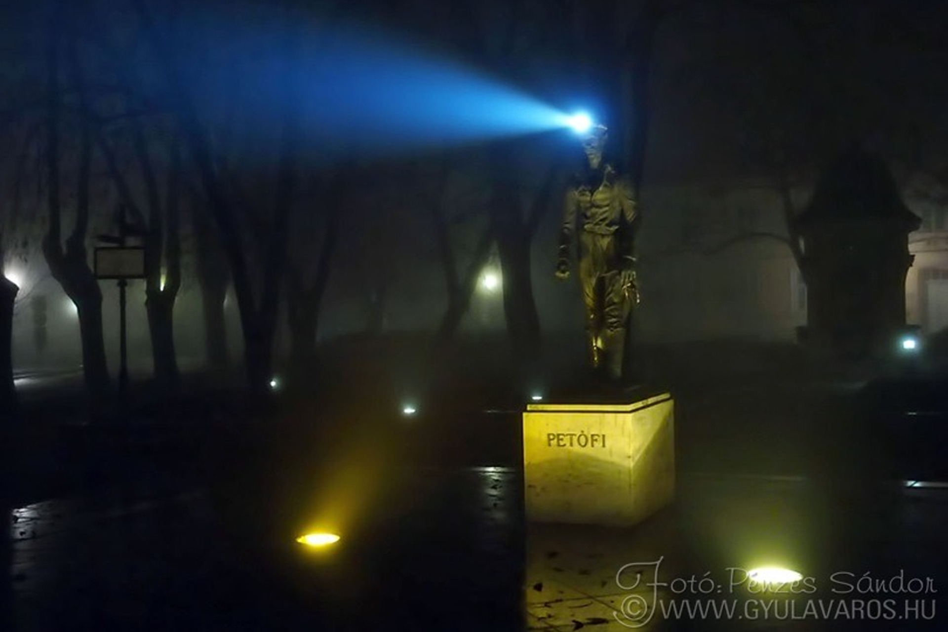A városvezetéssel való hosszas egyeztetés és a sikeres próbaüzem után döntés született a gyulai köztéri teljes alakos szobrokra kihelyezendő fejlámpák használatáról.