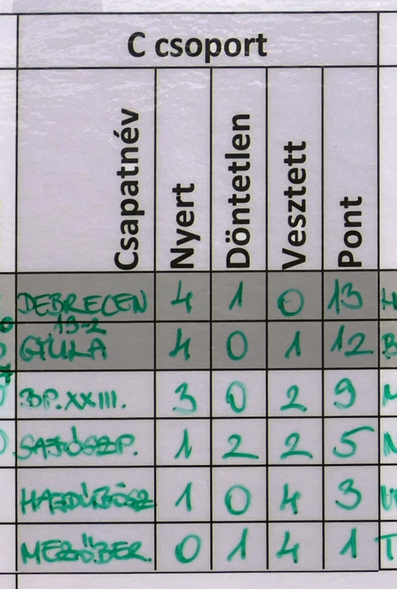 – A következő körben már a negyeddöntőbe jutás volt a tét. Fizikailag és lelkileg is elfáradtunk, így a hetedik meccsünk 3–3-as döntetlennel végződött, drámai végkifejlettel. A hetes rúgásban sajnos egy góllal alul maradtunk, így a hódmezővásárhelyi önkormányzat csapata juthatott tovább – számolt be a végjátékról a gyulai játékos. Hozzátette: nagyon büszkék arra, hogy a gyulai polgármesteri hivatal fiatal informatikusa, Vadi Gergő lett a keleti kupa gólkirálya.