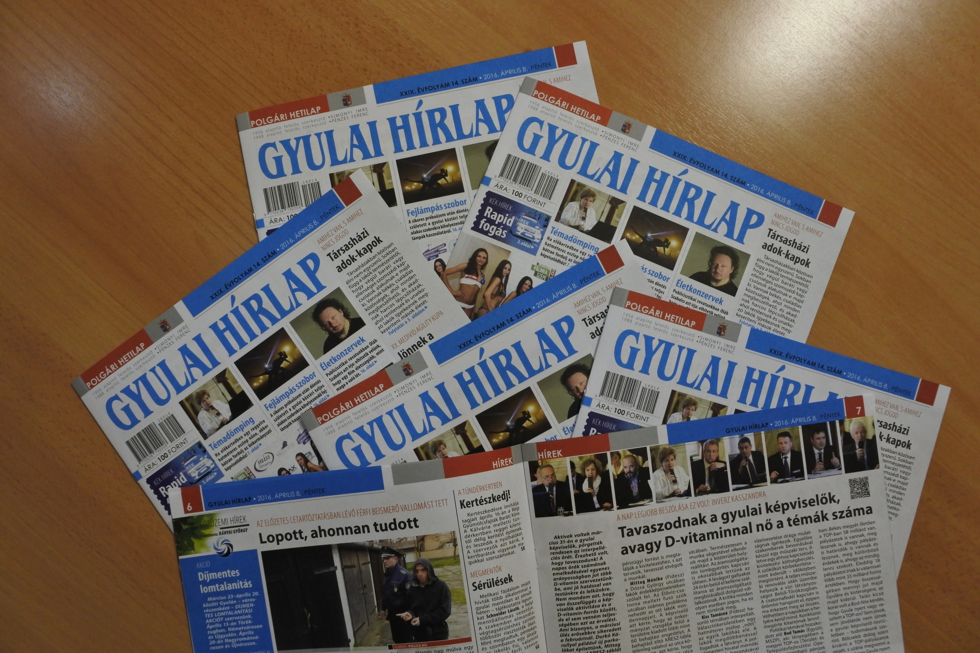 A XXIX. évfolyam 14. számában örömmel mutatjuk meg a Magyar Pálinka Szépe gyulai döntőjébe jutott lányokat. Gyulai sajnos nincs a leányzók között. A döntő április 17-én lesz a várkertben, ahol minden bizonnyal népes férfi sereg kíséri figyelemmel majd őket. Társasházi adok-kapok, avagy mi számít közös ügynek, és hol kezdődik a privát szféra című cikkünkben sokunkat érintő kérdéseket tett fel Szabó Eszter dr. Csige Gábornak. Megírjuk, hogy Gyulára jönnek a legjobbak! A Gyulai Kutyás Agility Szabadidősport Klub április 15–17-e között rendezi meg a Jubileumi XX. Medivid Agility Kupa és XI. ParAgility Kupa névre keresztelt országos kutyás ügyességi versenyt. A gyulai piacon ezúttal cuki cukkinik után sziszletett Súr Enikő. A finom zöldség kilójáért 650 forintot is elkérnek az árusok. Csevegő rovatunk azokat keressük, akik autókat zúztak és törtek az éjszaka leple alatt. Állásbörze rovatunk minden eddiginél tartalmasabb. Jó hírt adni arról, amikor a gyulai rendőrök rapid fogást hajtanak végre. Ezúttal házbetörőket „kapcsoltak le” két órán belül. A héten horogra akad egy másik tolvaj is, akik onnan lopott, ahonnan csak tudott. Olvashatnak lapunkban a jubiláló Gyulai Erkel Ferenc Ifjúsági Fúvószenekarról. A Gyulai Közüzemi NKft. jövő héten is folytatja díjmentes lomtalanítási akcióját. Teljes utcalistát közlünk, csak a jelzett utcákban „lomolhatnak” díjmentesen. Részletesen beszámolunk Gyula Város Képviselő-testületének interpellációs órájáról. A tavaszodó városatyáknak ezúttal nem kellett a szomszédba menni egy jó témáért. Szobatűzről számoltak be lapunknak a gyulai lánglovagok. A gyulai mentősök sem unatkoztak az elmúlt napokban. Szólunk előre, hogy a bibliotékában Szabó T. Annával találkozhatnak a költészet napján. Csodálattal hallgattuk végig Várjon Dénes zongoraestjét a Gyulai Várszínház Kamaratermében. Sokan voltak kíváncsiak a Mogyoróssy János Városi Könyvtár „Ex libris” kiállítására. Az Almásy-kastély látogatóközpontban az ügyvezetővel és az alpolgármesterrel együtt vártuk az ötezredik látogatót. Ezen a héten Havas Henrik könyvét ajánljuk olvasóinknak a könyvtárral közösen. Gazdit és új otthont pedig Picurnak keresünk. Ha elvinnék olvasóinkat moziba, akkor a Mama című spanyol drámára váltanánk jegyet. Életmód rovatunk a héten nem a vegánoknak szól! Pomázi Ferenc kertészünk Riadóóó!-t fújt heti írásában. S ezt vegyék nagyon komolyan, amennyiben kertészkednek otthon. Ha csak néhány cserép muskátlira gyúrnak, akkor el se olvassák. Az apróhirdetések böngészését se hagyják ki! Április 1-jei tréfának szántuk a köztéri szobrok megvilágosodását. Az online oldalunkon közül hírből tehát semmi sem volt igaz. Heti publicistánk, Oláh Szabolcs életkonzervekről ír, csak óvatosan bontogassák. Kis eső jön a hétvégére, de megmarad a benyáriasult idő.
