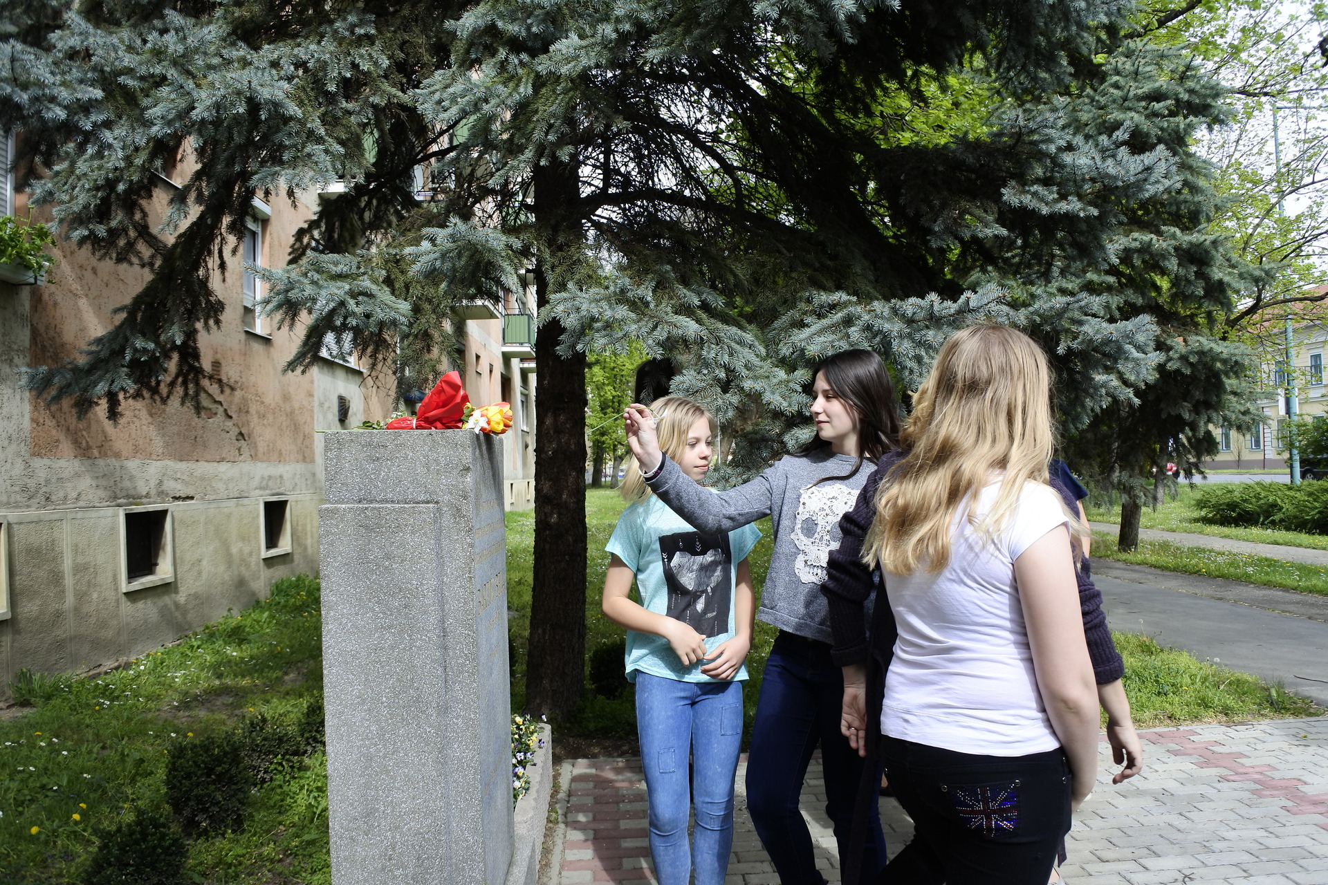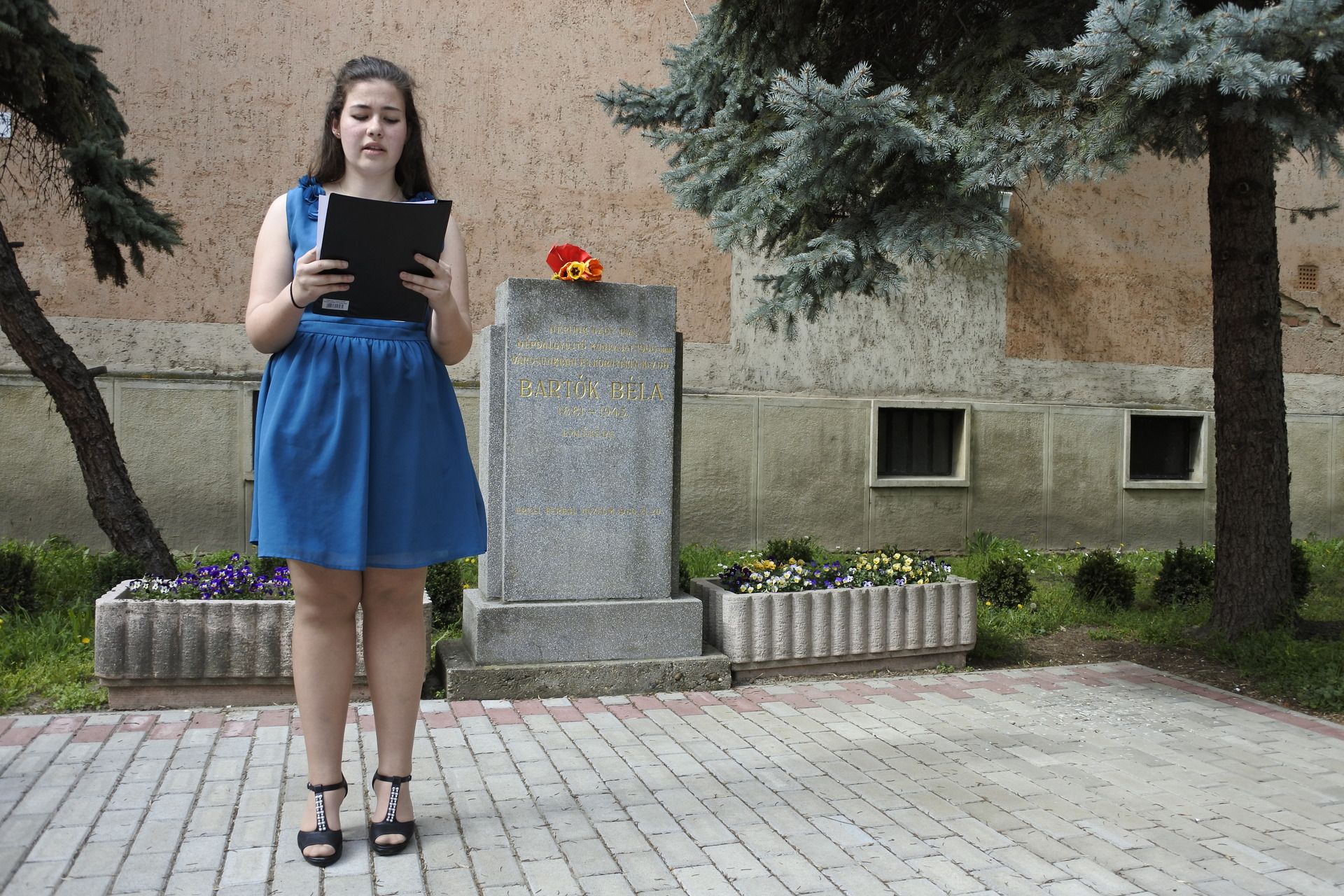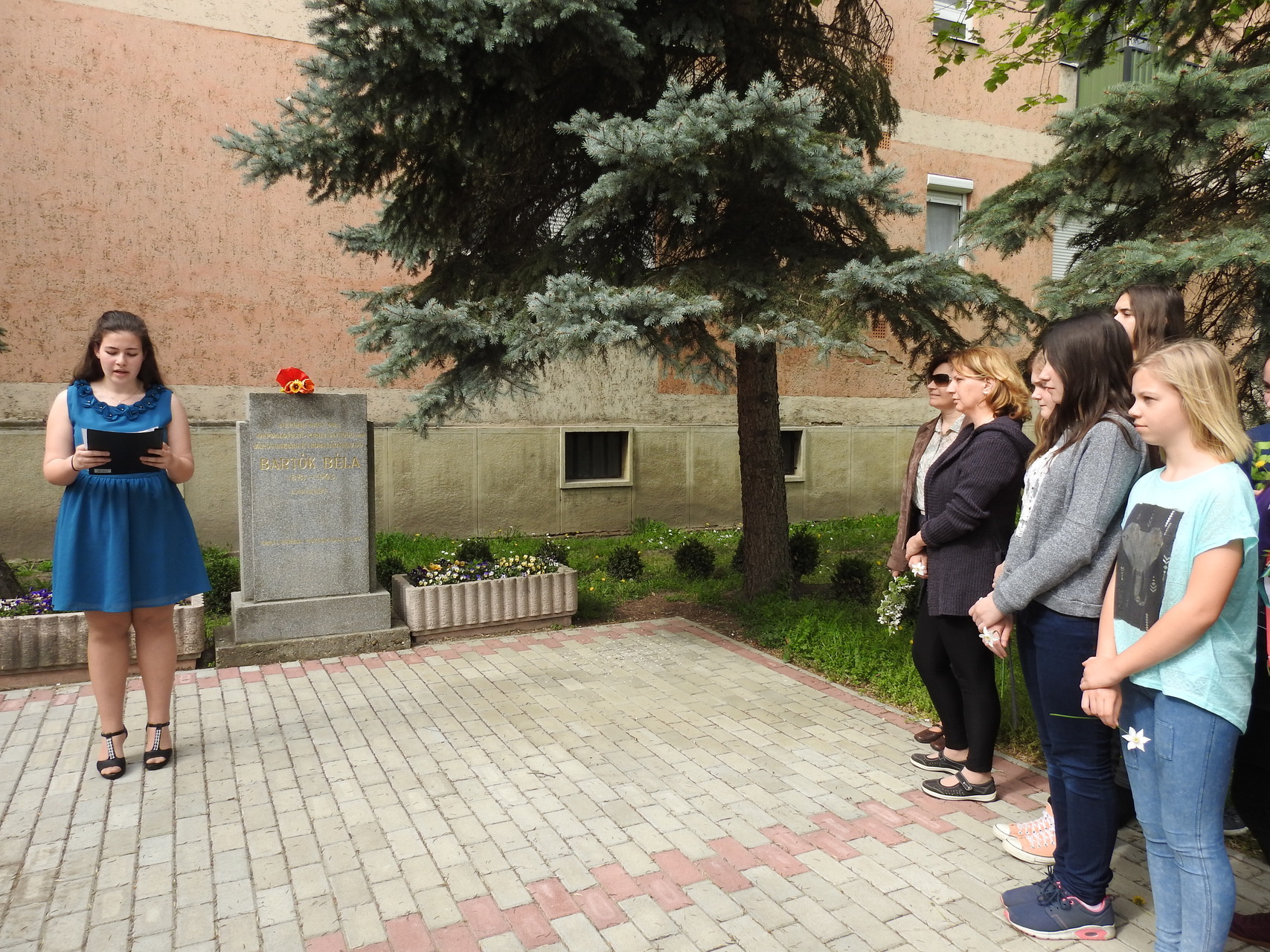 a zeneiskola diákjai bartók béla gyulai emlékművénél