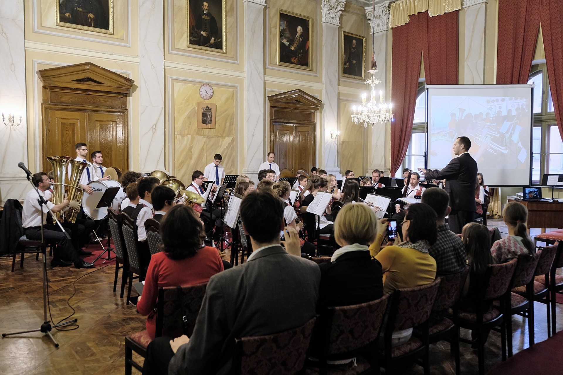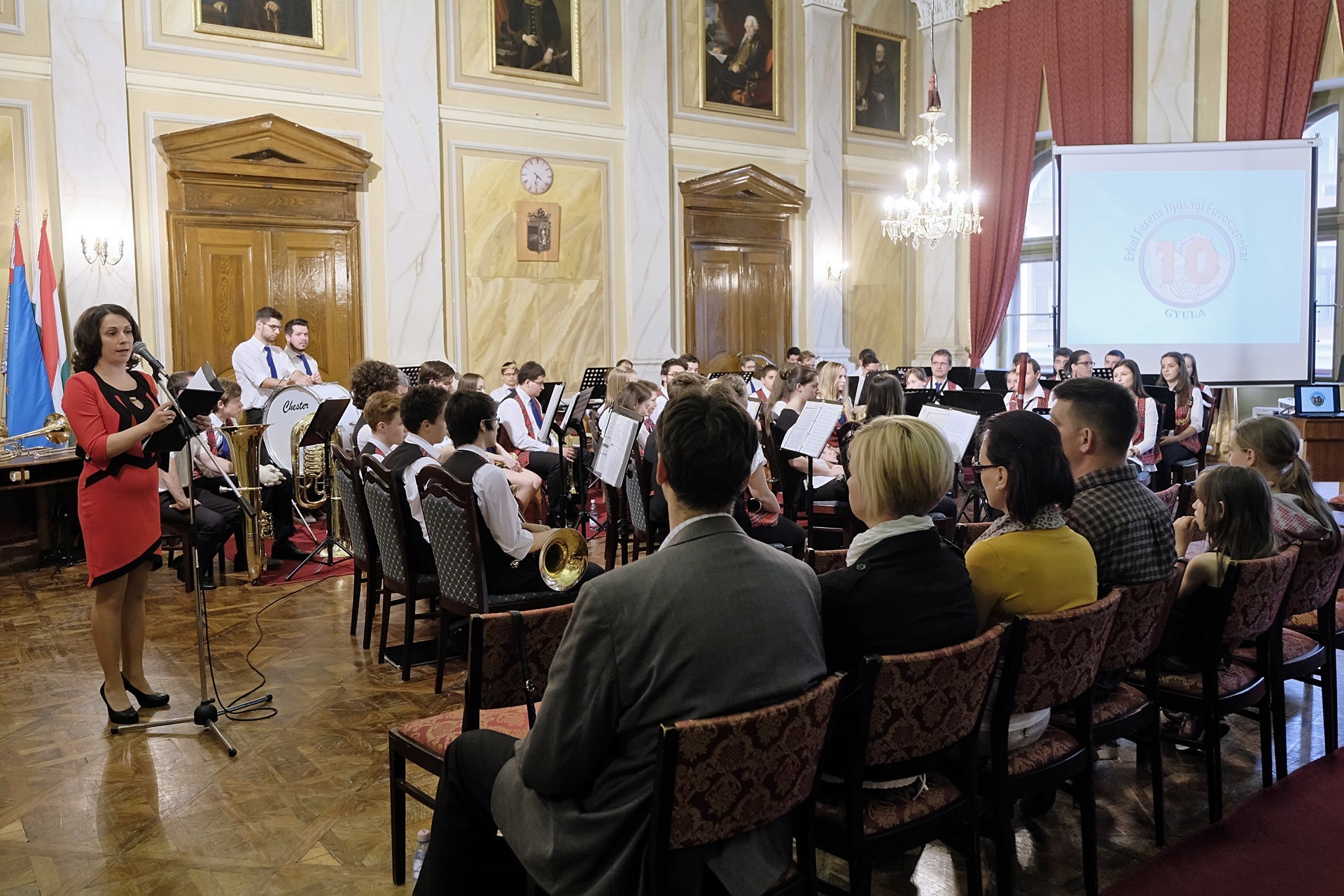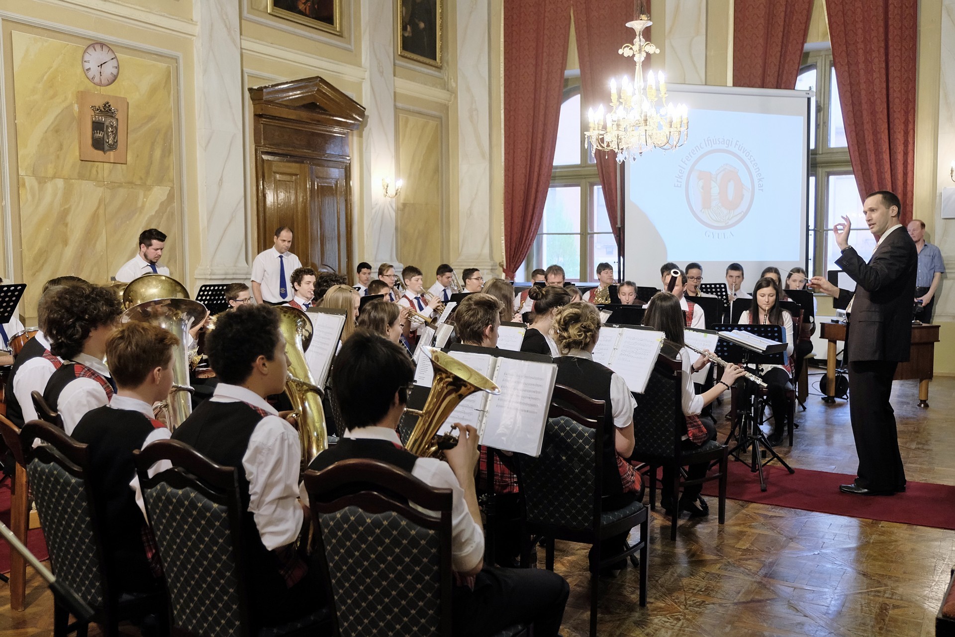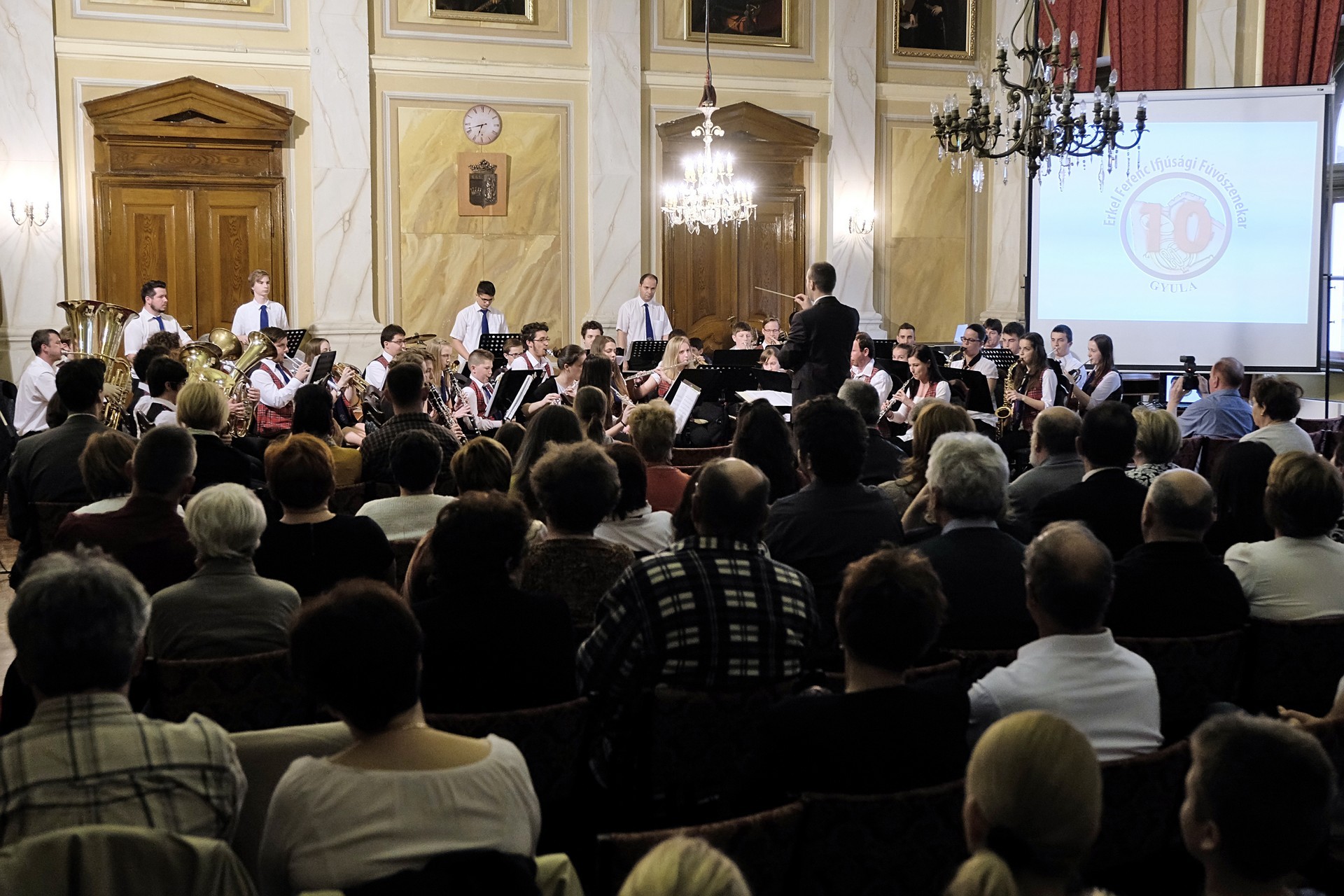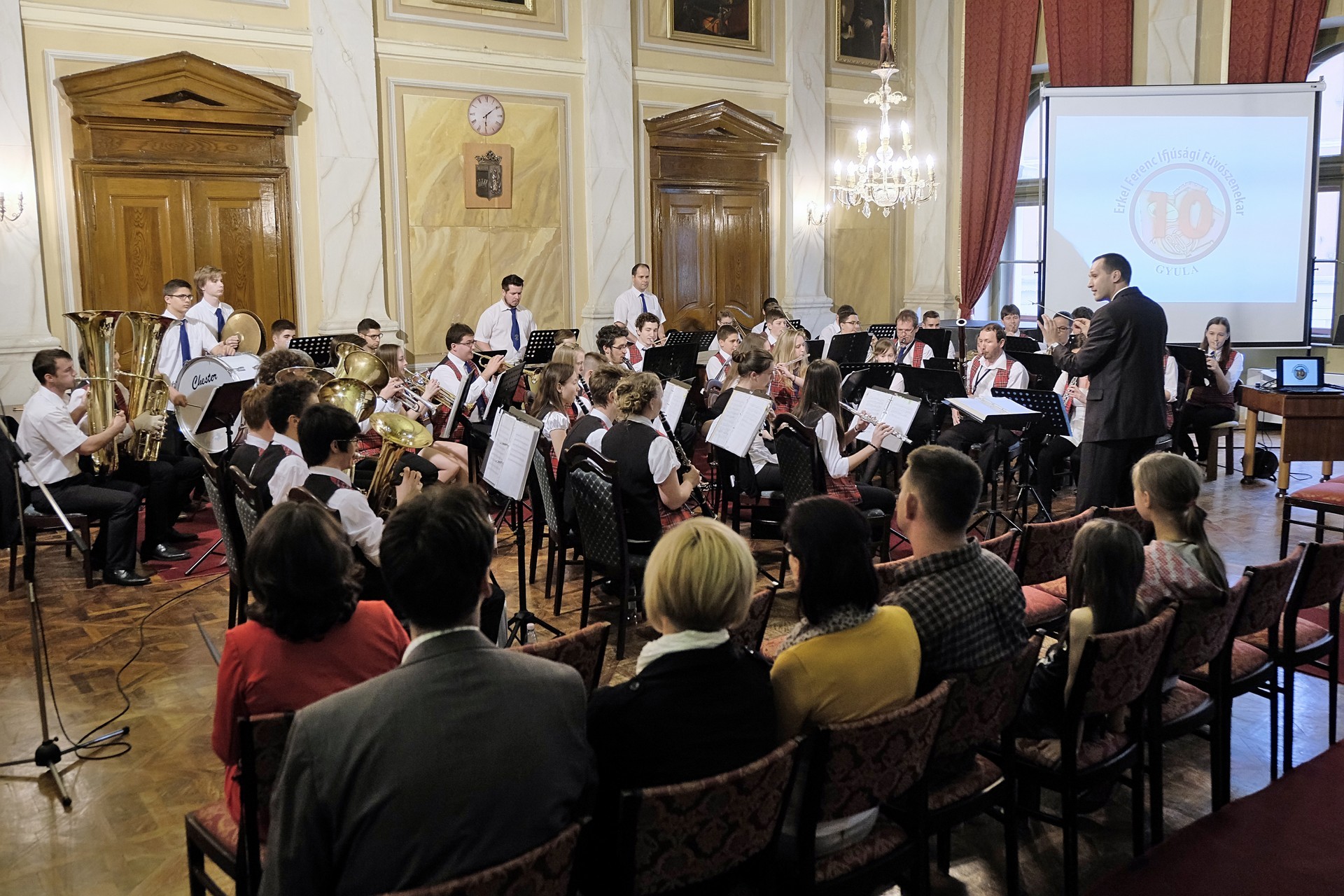 Az Erkel Ferenc Ifjúsági Fúvószenekar koncertje a gyulai városháza dísztermében