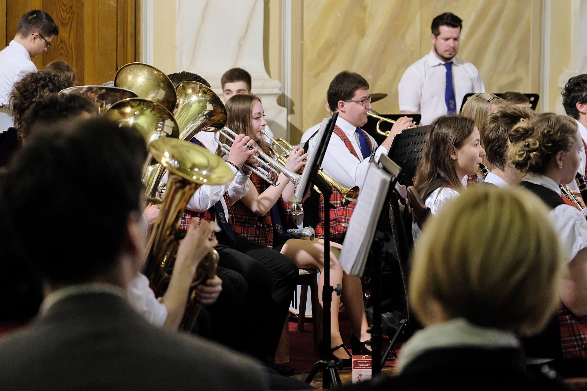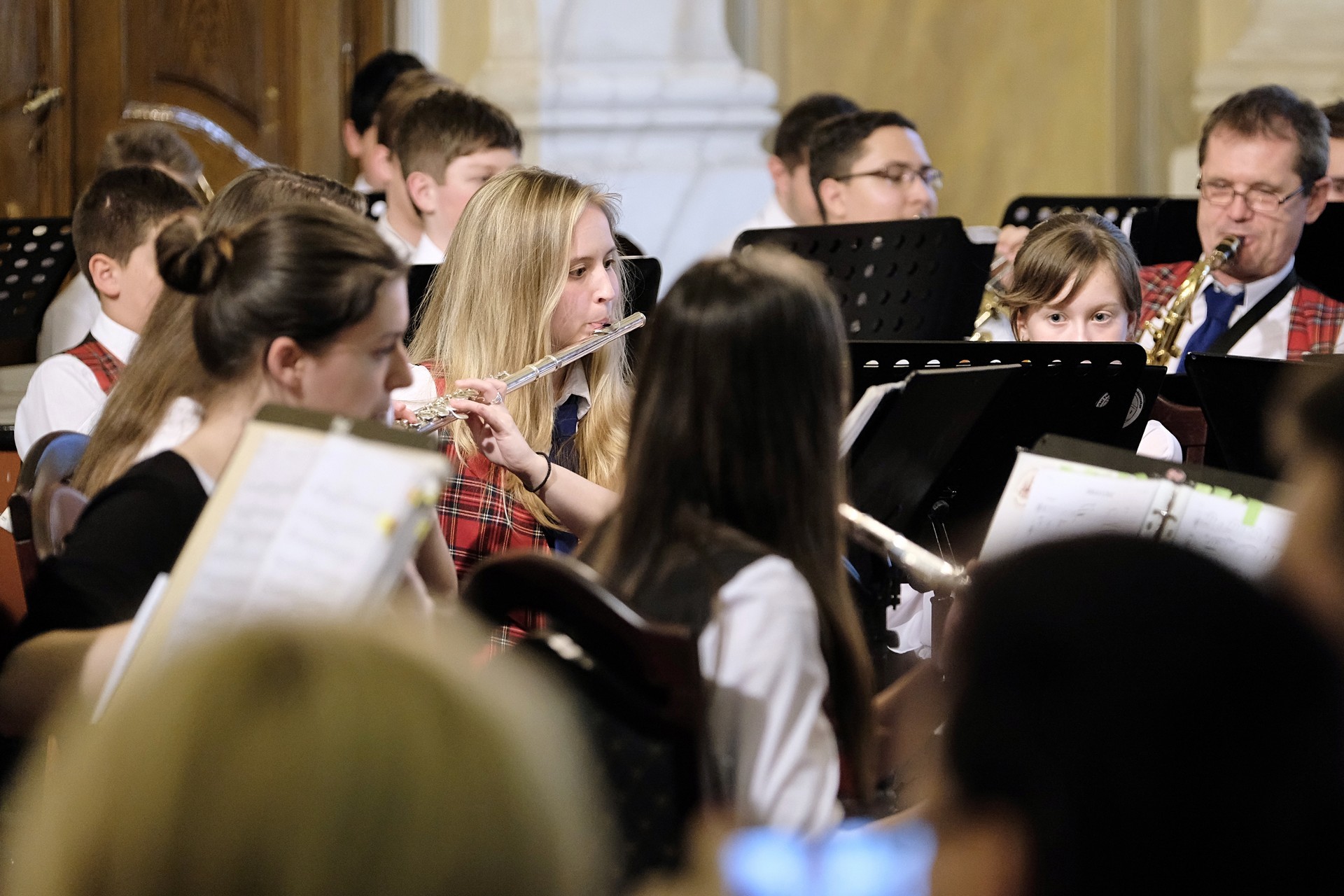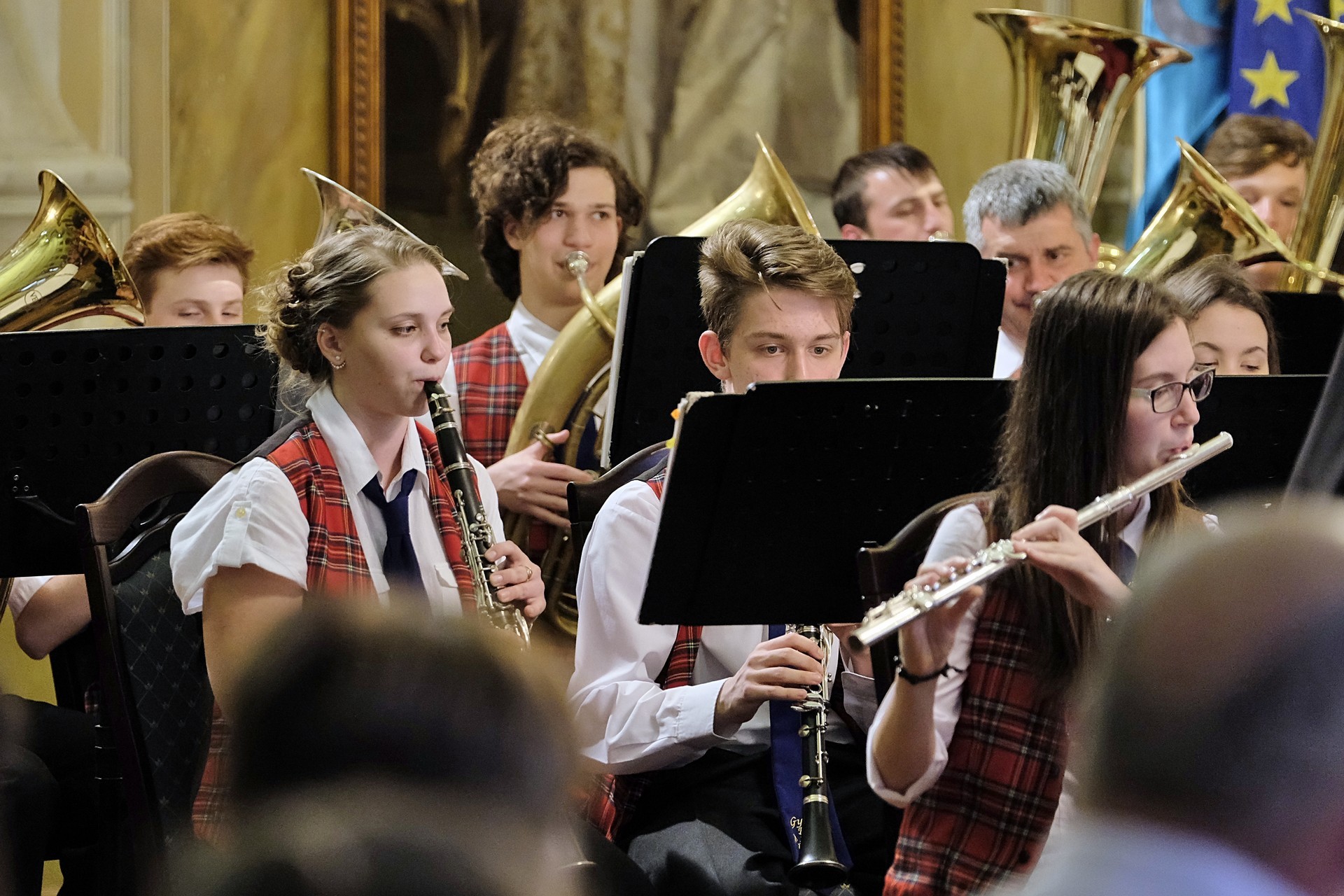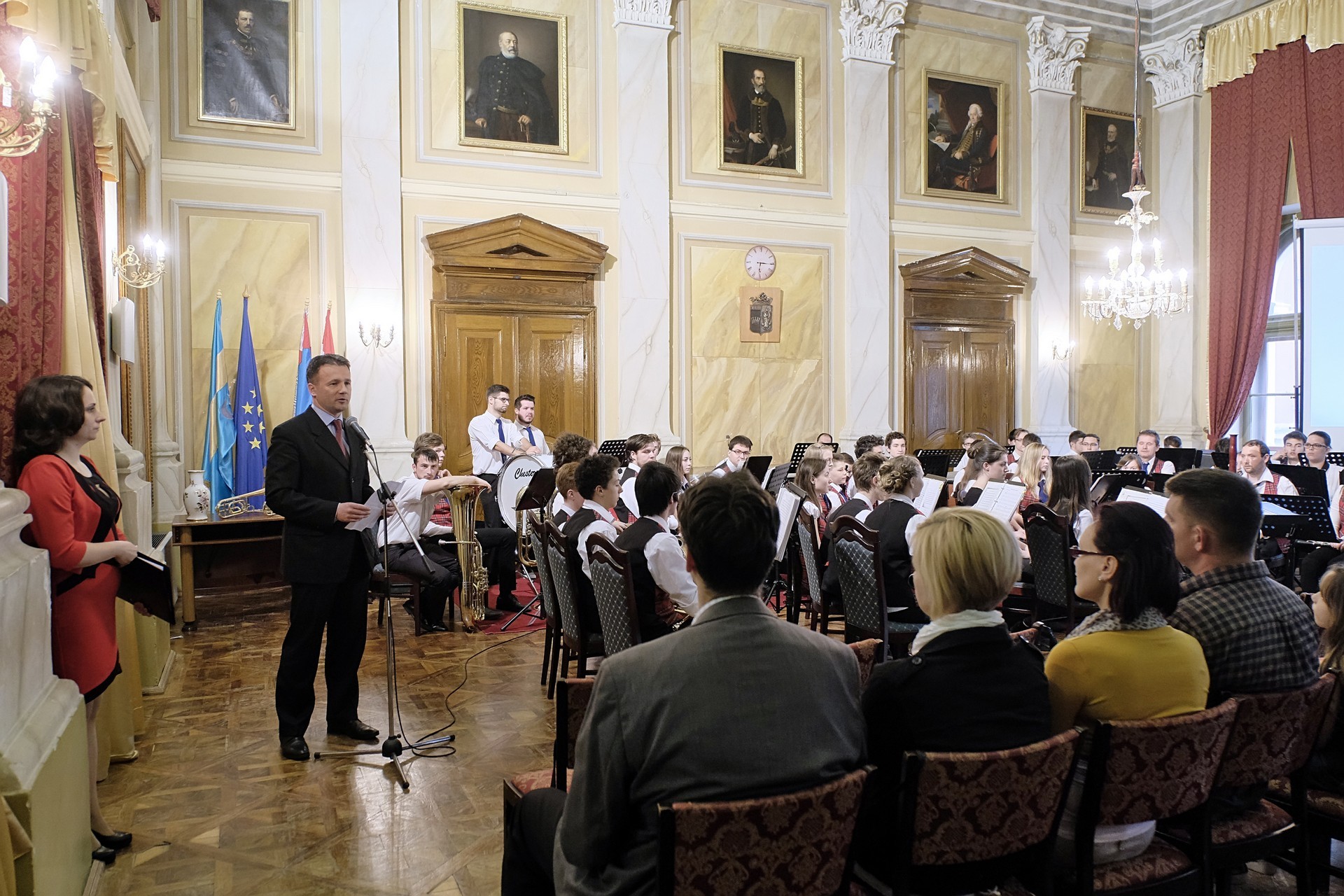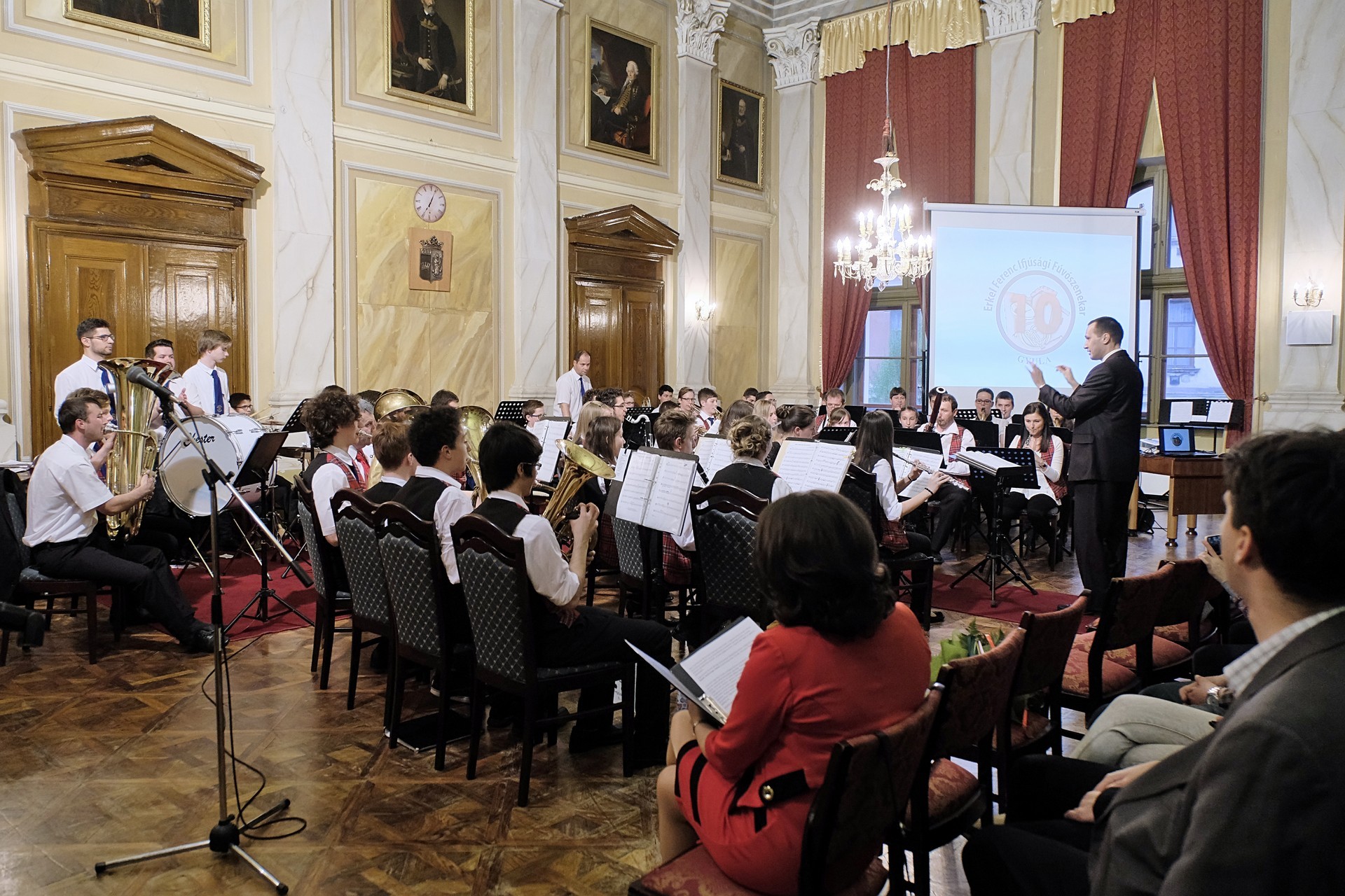 Az Erkel Ferenc Ifjúsági Fúvószenekar koncertje a gyulai városháza dísztermében