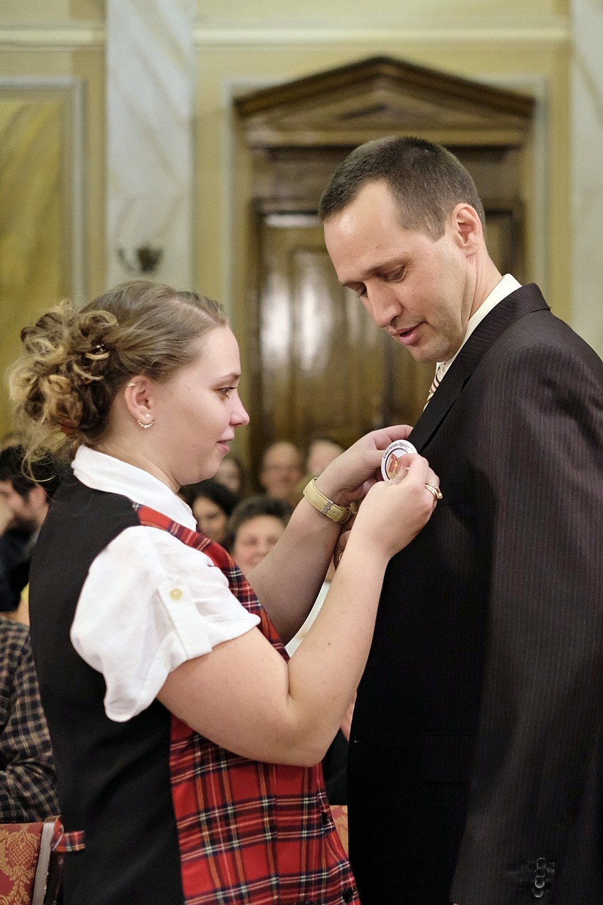 Az elmúlt 10 év során persze cserélődtek a zenekar tagjai, de sokuk a kezdetektől jelen van, ezért kitartó és példamutató munkájáért az est során jubileumi kitűzőt kapott Horváth Márk és Juhász Gergő trombitás, Juhász Nagy Rita és Pásztor Tibor vadászkürtös, Kovács Gyula ütős, Pallagi Júlia piccolós és Pallagi Éva klarinétos, aki a kitűzőt a zenekar nevében Bogdán Gábor karnagy mellkasára szintén feltűzte, ezzel köszönve meg 10 éves odaadó munkáját.