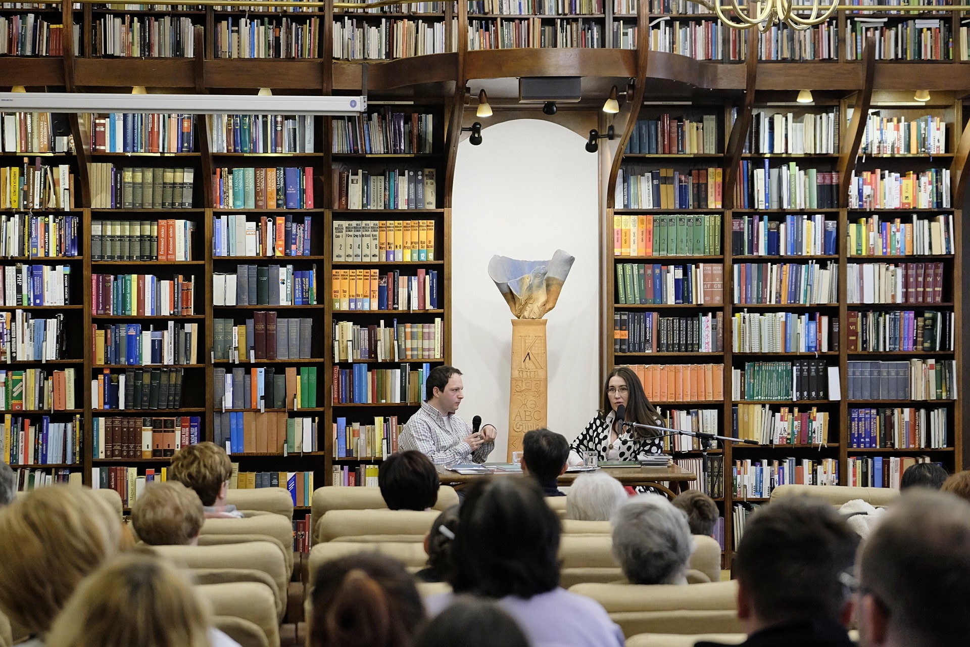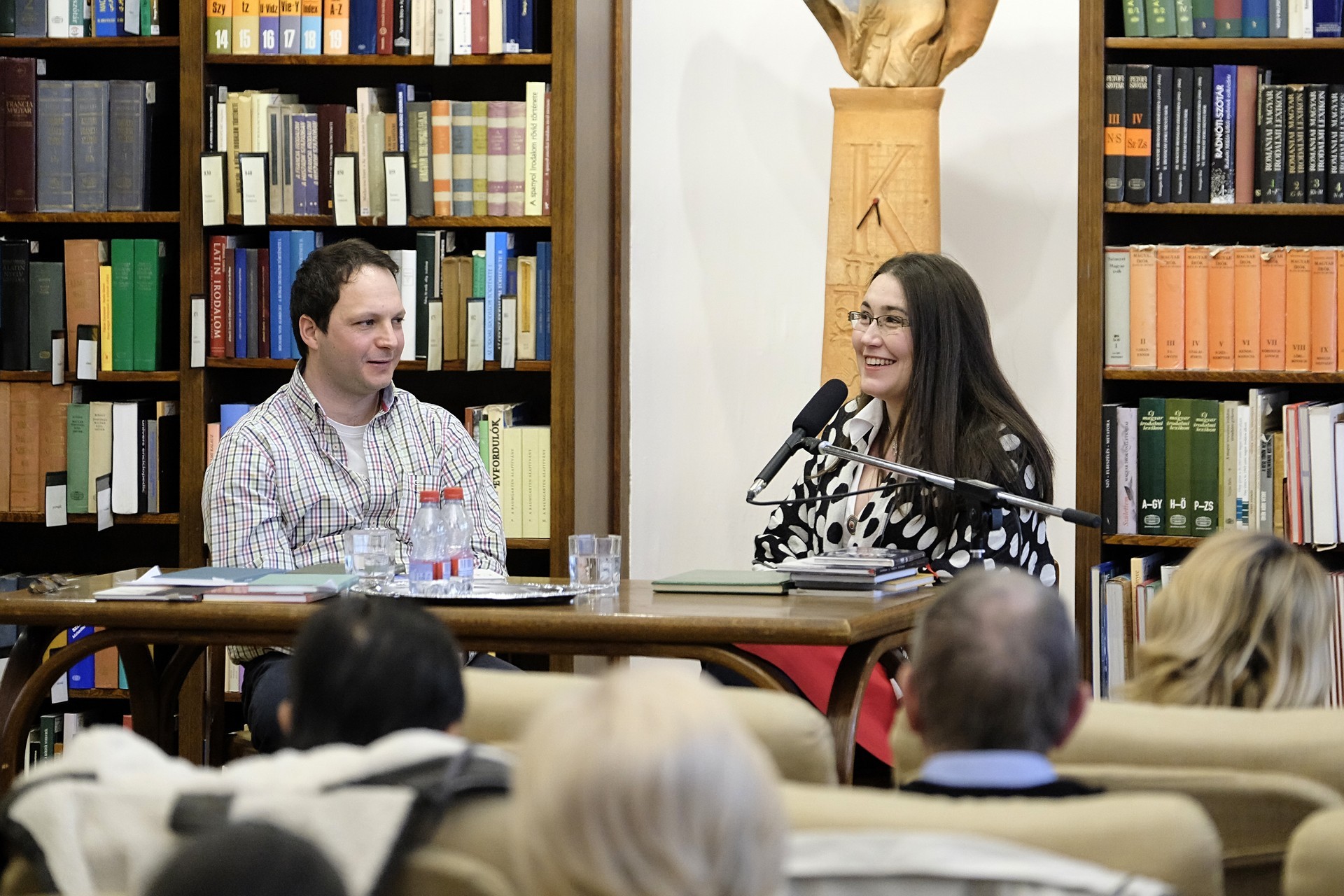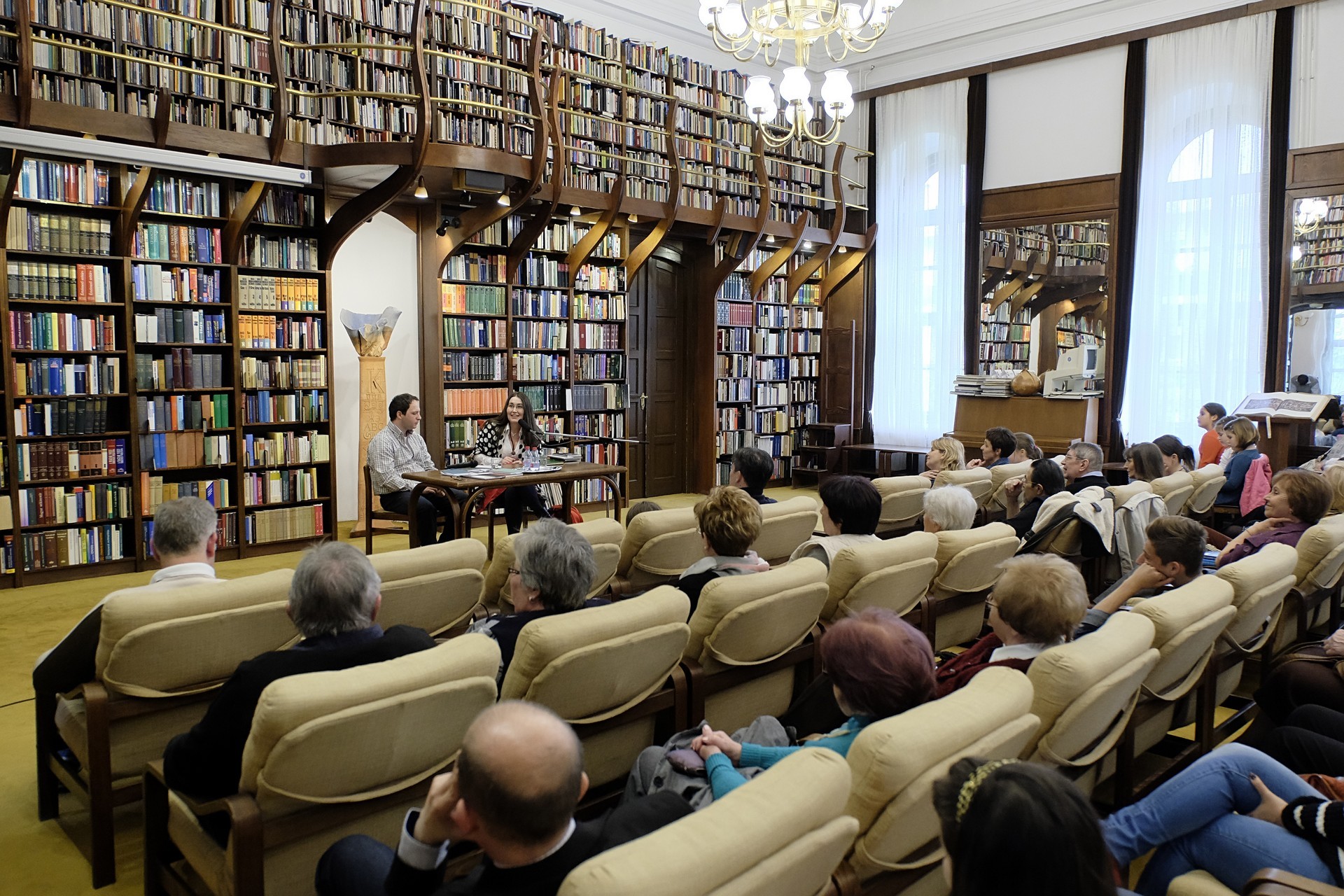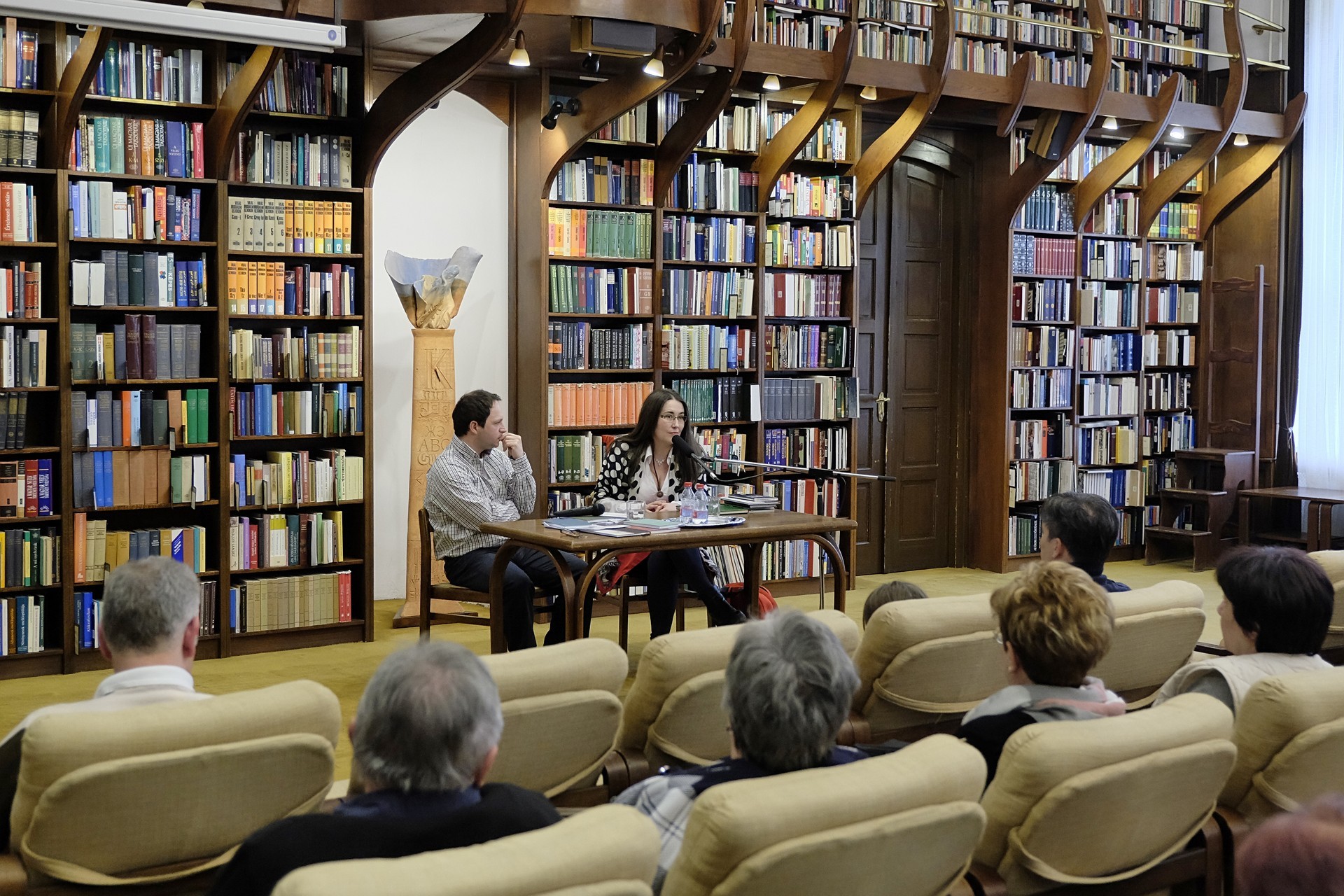 Kiss László és Szabó T. Anna a gyulai könyvtár olvasótermében