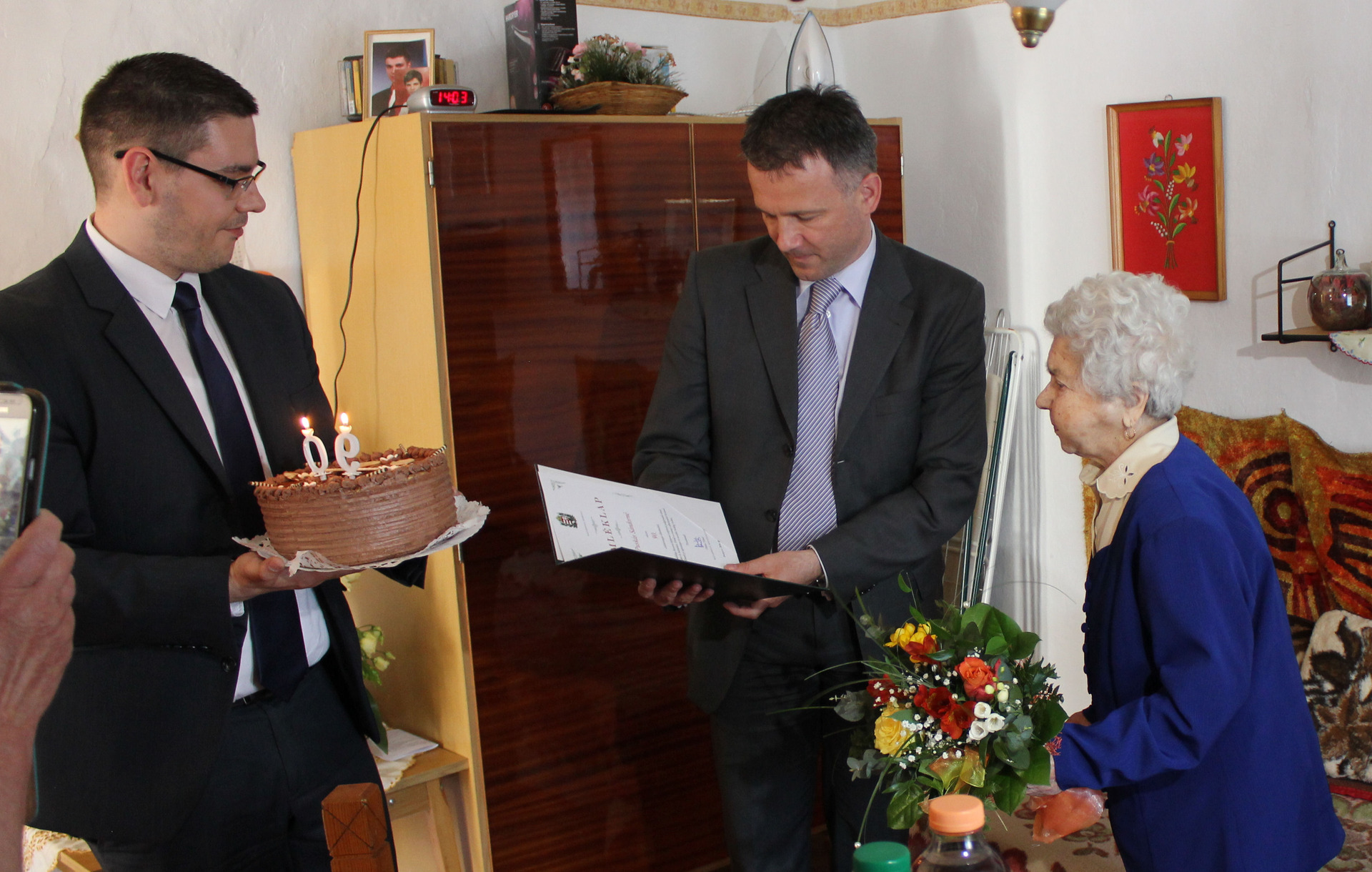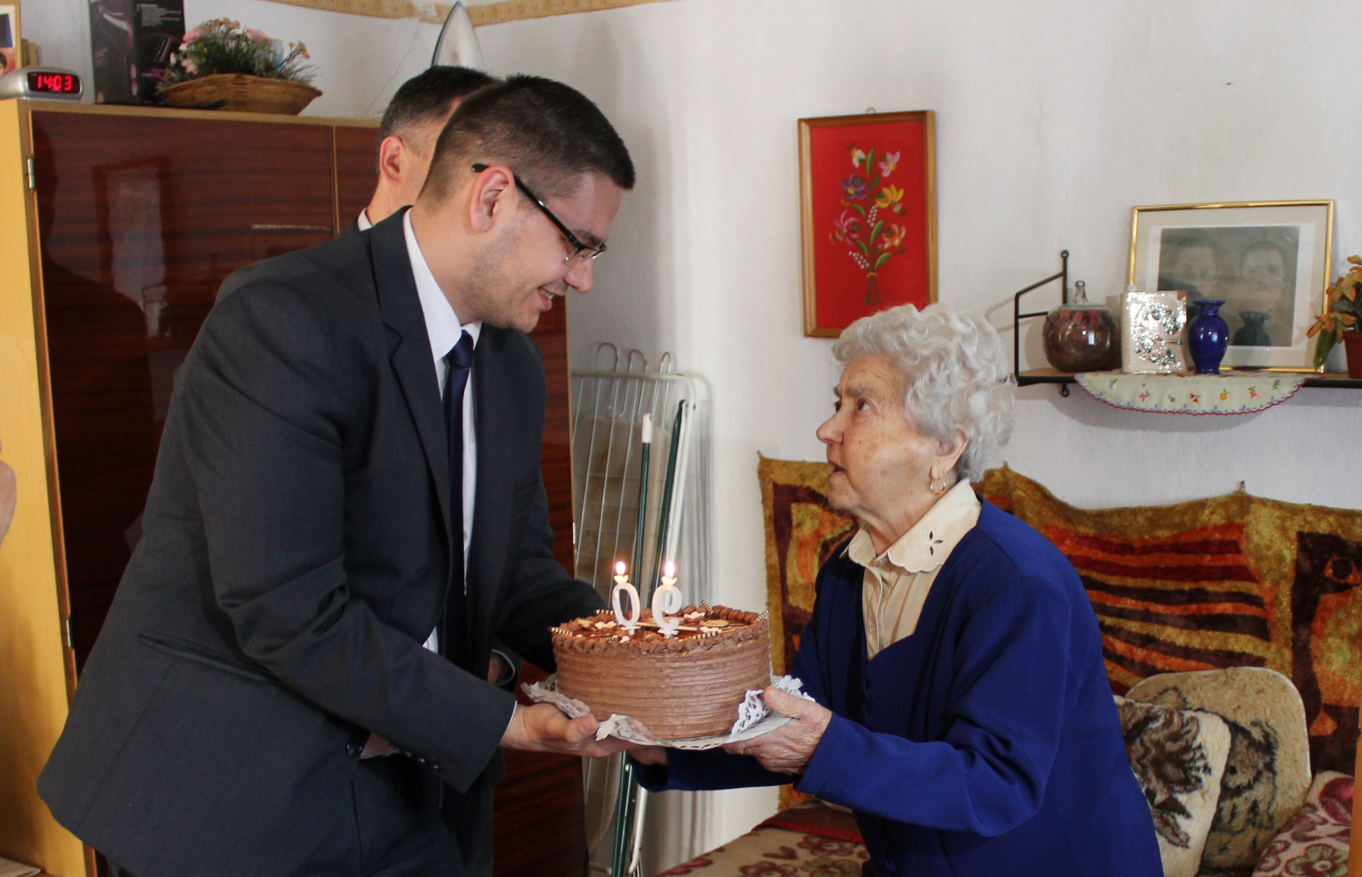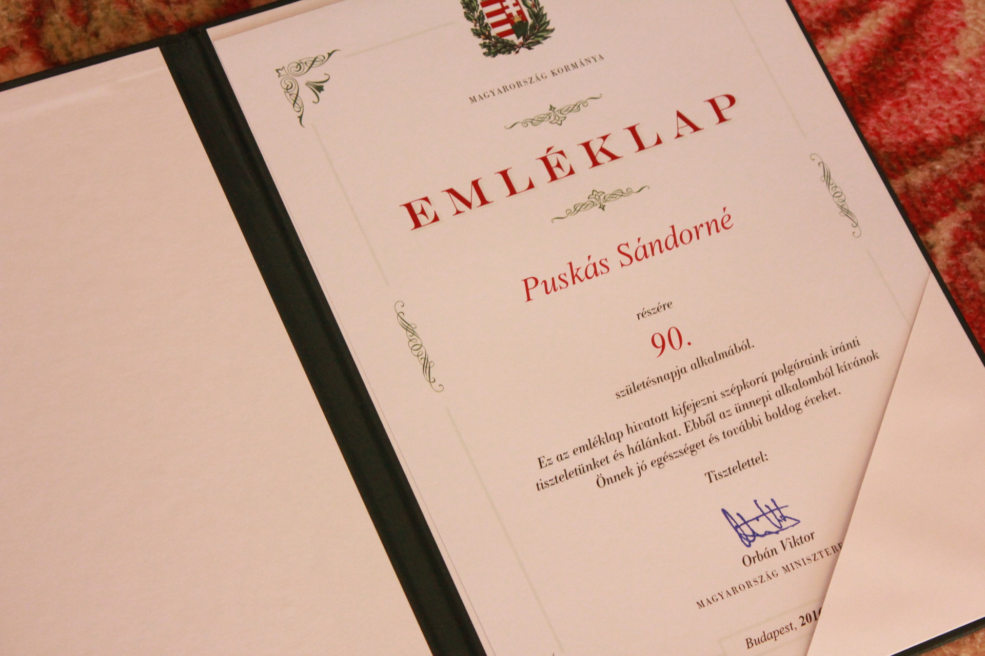 Puskás Sándornét tortával, virágcsokorral és emléklappal Köszöntötték