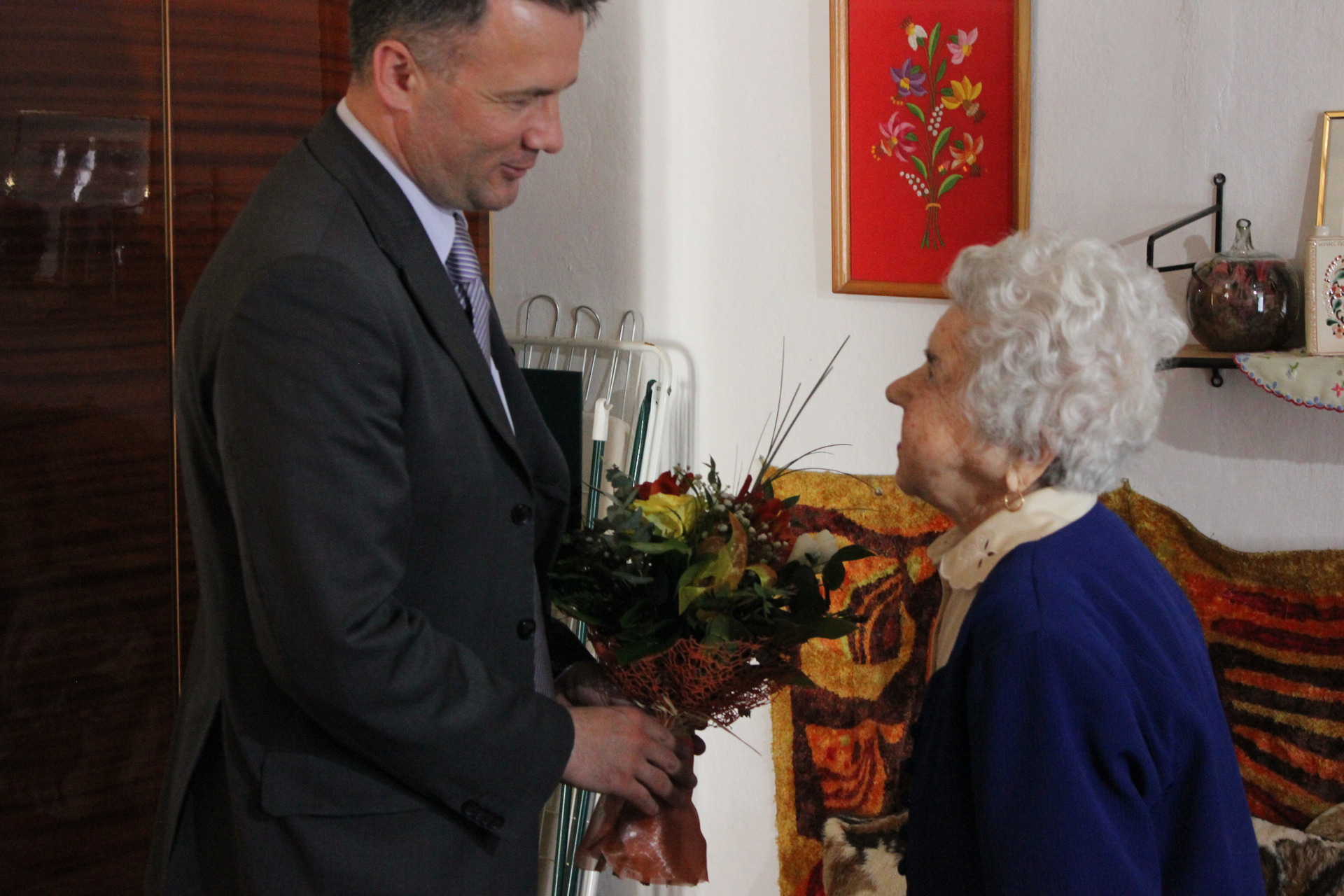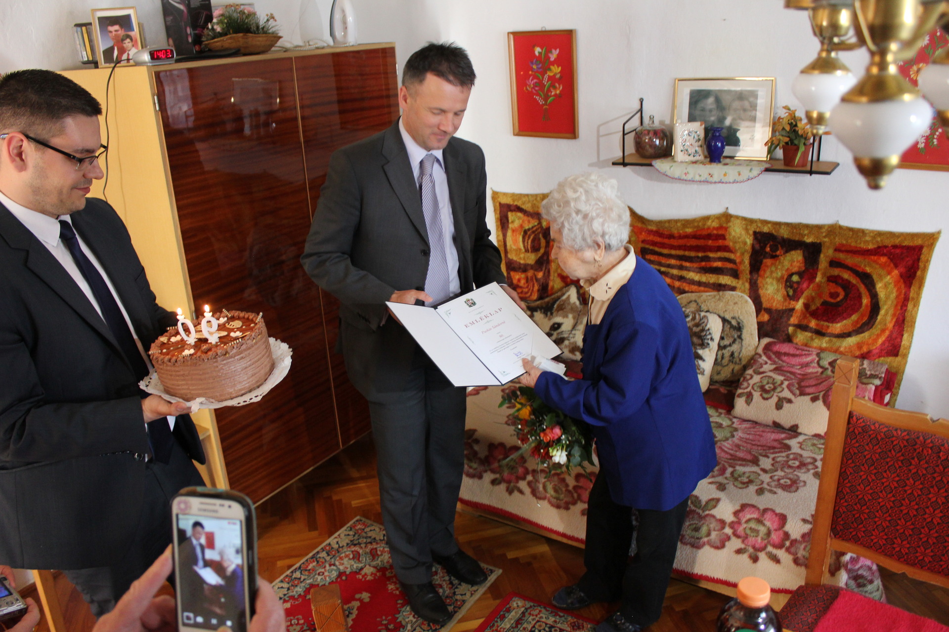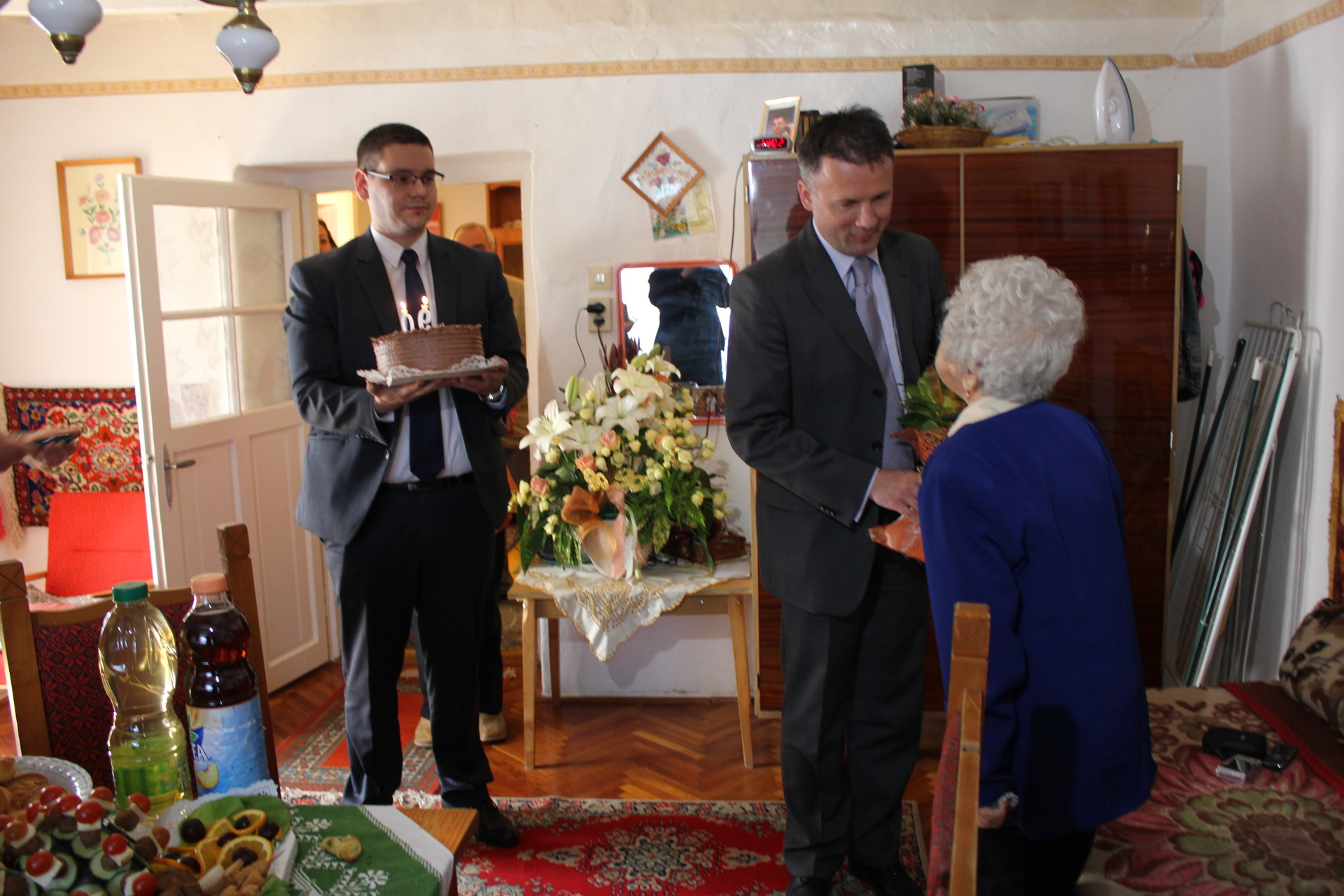 Puskás Sándornét tortával, virágcsokorral és emléklappal Köszöntötték