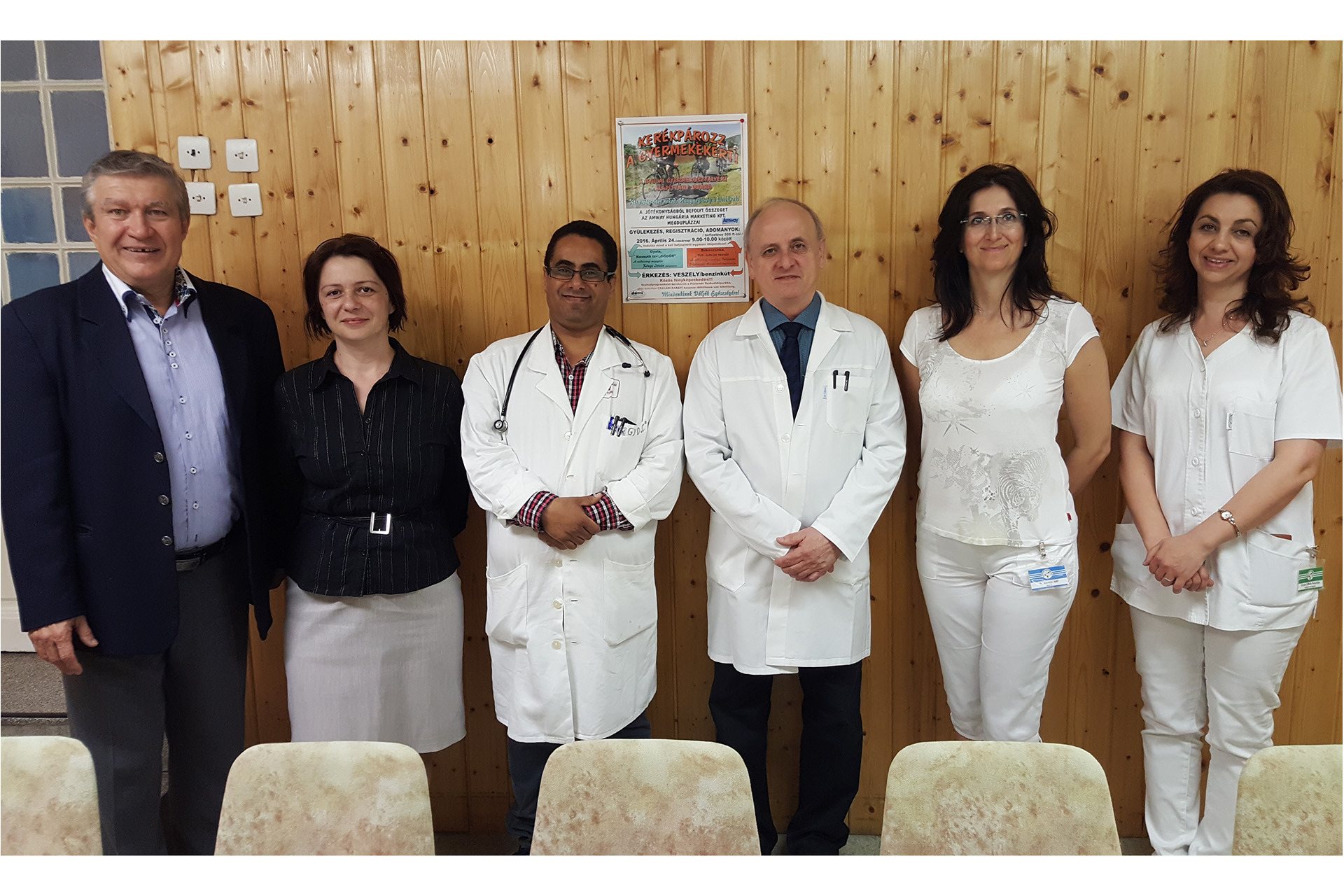 A gyermekosztály munkatársai és a jótékonysági akciót támogató cég képviselői