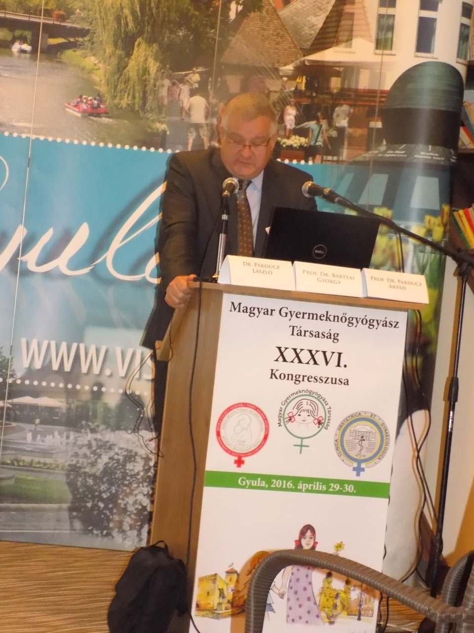 Dr. Párducz László főorvos, a kongresszus házigazdája a gyermekgyógyászat megteremtőjére, dr. Dobszay László professzorra emlékezett meg beszédében. Dr. Görgényi Ernő, Gyula Város polgármestere, dr. Becsei László, a Békés Megyei Központi Kórház főigazgató főorvosa, dr. Németh Gábor, prof. dr. Borsos Antal, a Magyar Gyermeknőgyógyász Társaság tiszteletbeli elnöke és dr. Major Tamás köszöntötte a jelenlévőket.