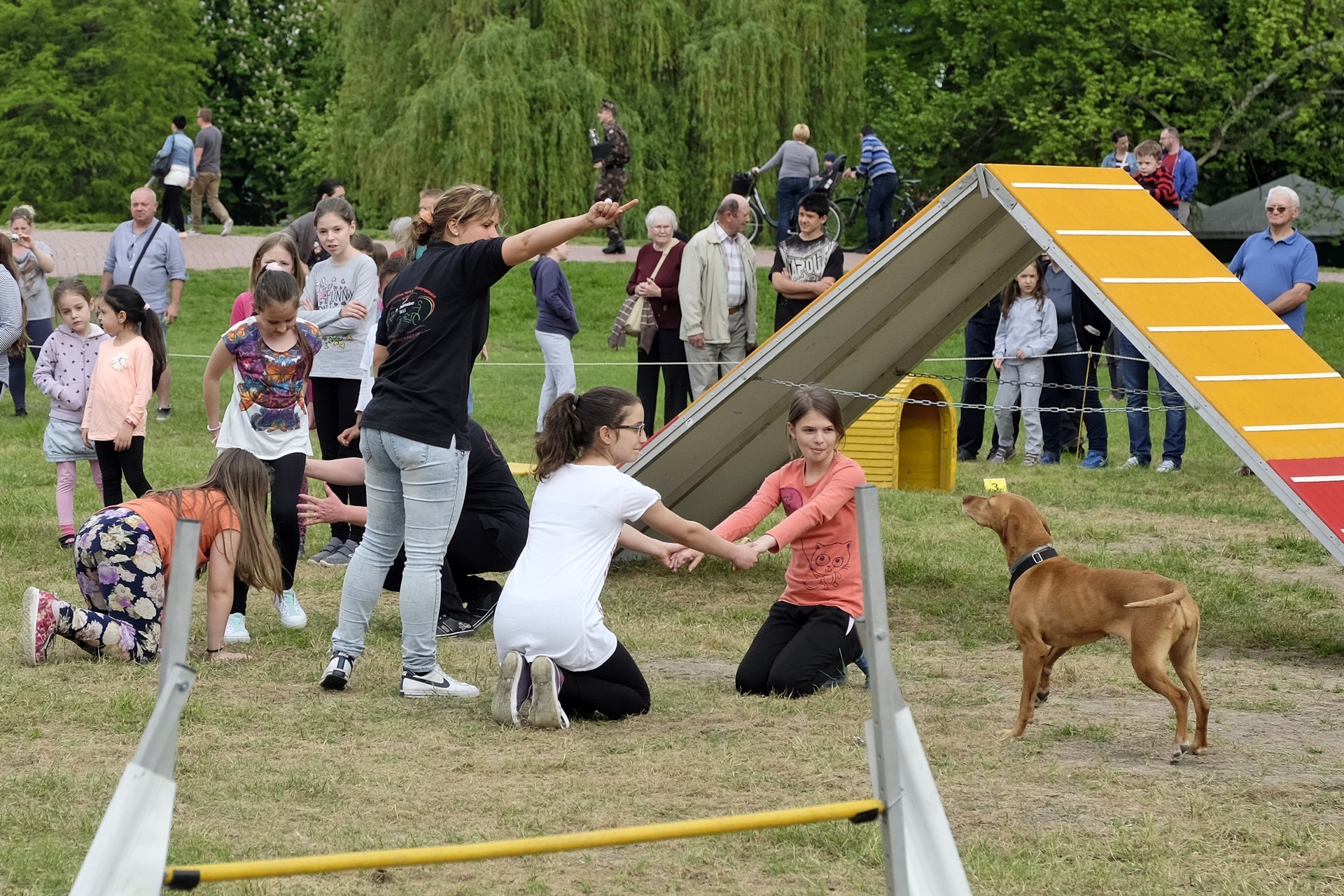 A nap egyik leglátványosabb része a Gyulai Kutyás Agility Szabadidősport Klub bemutatója volt, amit mind a kicsik, mind a nagyok élvezettel figyeltek. A kicsiknek Pepe manó bőröndmeséje volt a legmókásabb, az előadás végén a gyerekek sorba álltak, hogy a manó megvizsgálhassa őket, hogy felírja számukra a szomorúság elleni gyógyszert.