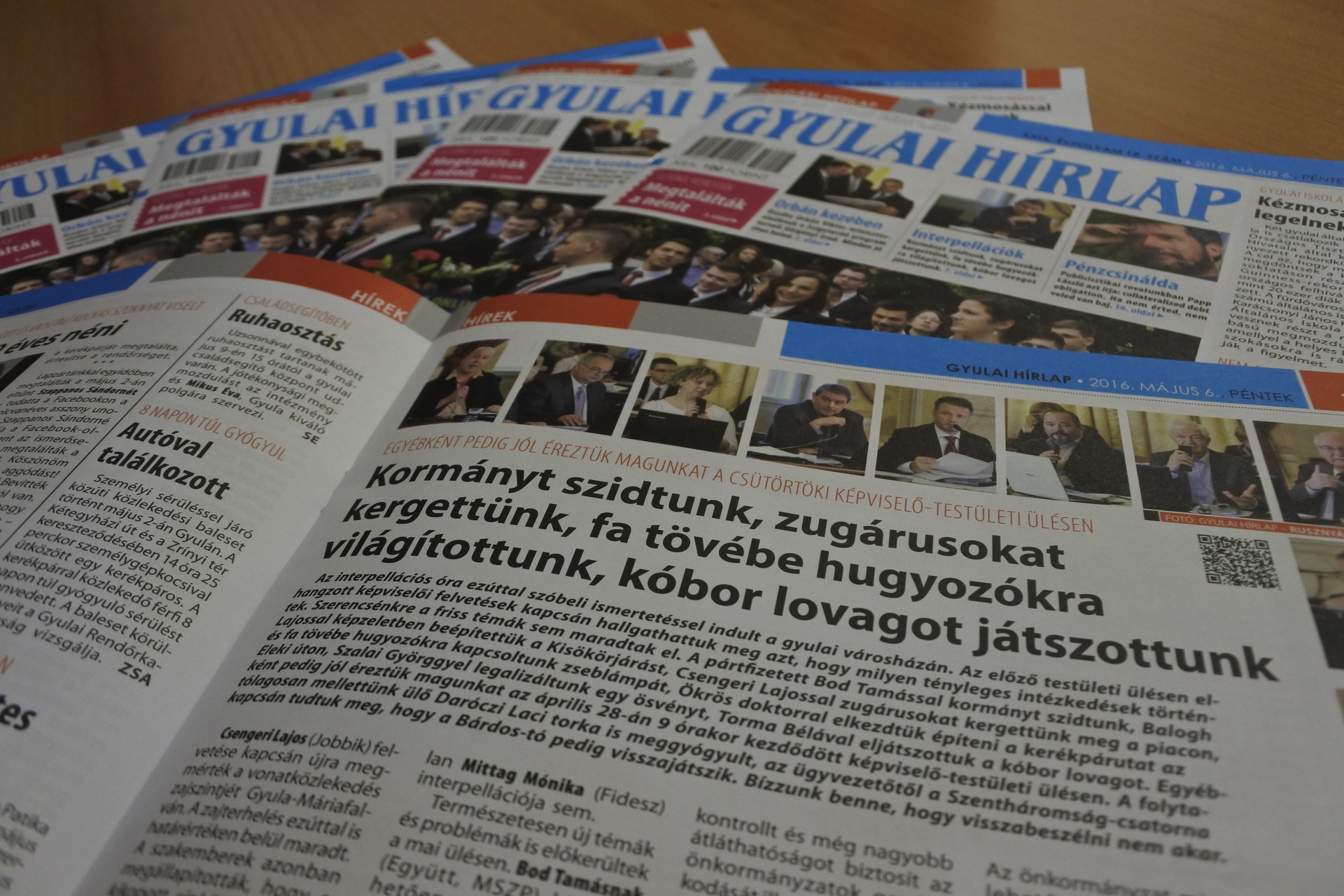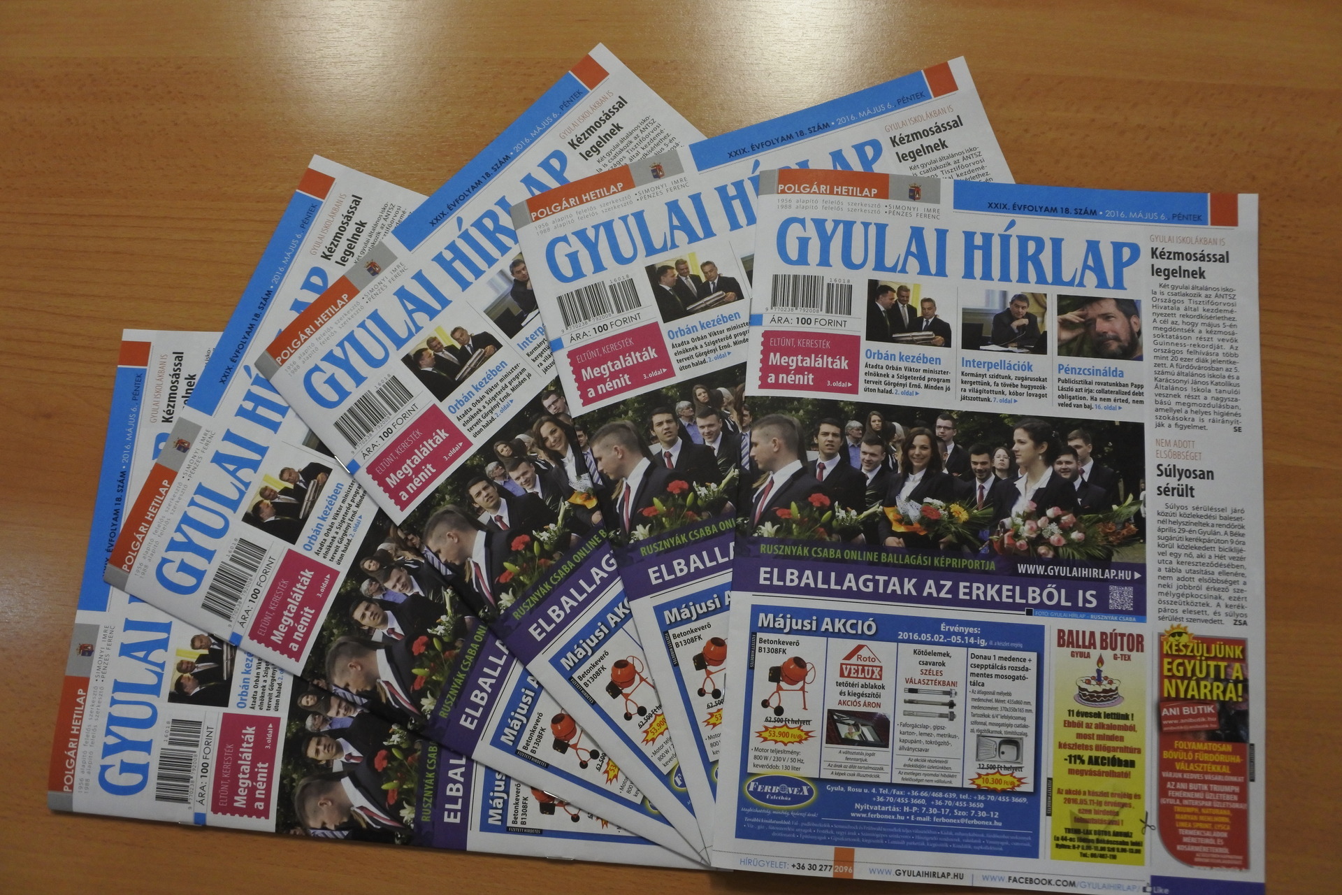 A XXIX. évfolyam 18. számában elballagtunk az erkeles maturandusokkal, képzeletben velük együtt készülünk a szóbeli érettségire, s nagy terveket szövögetünk egy nagybetűs élethez. Görgényi Ernővel Orbán Viktor kezébe adtuk szigeterődős fejlesztési elképzeléseinket. Kézmosással legelünk a gyulai nebulókkal és az ÁNTSZ-szel, a rekordkísérlet garantált. Súlyosan sérült az a kerékpáros, aki figyelmetlen volt, s nem adott elsőbbséget egy autósnak. Súr Enikő uborkakörútra indult a gyulai piacon. A vasárnapi túra sikeres volt, fűtött fóliás ubi van, a hidegágyasra még várni kell uszkve négy hetet – ezt nem mi mondjuk, hanem a termelők. A Facebook csevegőben körforgalomra éhes gyulaiakról olvastunk. A népszerű témát Takács Glória dobta be a köztudatba, mint kiderült, nem csak ő szeretne több forgalomgyorsító körforgalmat városunk „nehezebb” csomópontjaiba. Állásbörze rovatunk a héten sem egyperces olvasmány, akad benne bőven munkalehetőség. Most akár benzinkutas álmaidat is beteljesítheted. A Nemzeti Közszolgálati Egyetemmel közösen készül városunk a gyulai vár 1566-os ostromának évfordulójára. A gyulai lánglovagokkal kazaltüzeket oltottunk. A Körös-vidéki Vízügyi Igazgatóság dolgozóival 165 zsák szemetet gyűjtöttünk össze. A gyulai mentősökkel anyák napi ünnepségen rosszul lett gyerekeket mentettünk. Olvasóinkkal közösen kerestünk egy eltűnt 80 éves nénit. Nagy dobás, nagy fogás! A NAV pénzügyőreivel orgazdát fogtunk, 5000 doboz cigi lapult az autóban. Csöppet sem unatkoztunk a képviselő-testületi ülésen, ahol meghallgattuk a kormányt szidó képviselőt, a zugárusokat kergető képviselőt, a fatövébe hugyozókra világítót, illetve remekül eljátszottuk a kóbor lovagot is. Azért ne vegyenek mindent készpénznek! Várkonyi Kálmán skandináv keresztrejtvénye egy teljes órára leköt bárkit. Én 27 perc után adtam fel. Hagytuk magunkat megsimogatni egyik este a jazz-zel és a Kovács Tamás-trióval. Ott volt a helyünk az Almásy-kastély kápolnájában az első barokk koncerten. Megnéztük Jana negyven évét a művelődési ház galériájában. Jut eszembe! Írd be a naptáradba Isaszegi János tábornok előadását! Gyere velünk moziba, megnézzük az Amerika kapitánya legújabb részét. Ha tömegiszonyod van, olvass velünk a Mogyoróssy könyvtárban, de kereshetünk gazdit Szatyornak is, aki menhelyen várja sorsának jobbrafordulását. Természetesen a sport sem hiányzik a heti lapszámból. Édesköménnyel serkent minket Szalai Ilona dietetikusunk. Pomázi Ferenccel gyógyhatású növényekről folytatunk eszmecserét. Innen is üzenjünk kertészünknek, hogy a farontó féreg még él. Kérdésünk pedig az, amennyiben az ajánlott technikája nem jár eredménnyel, mert most erről beszélek ám, mi tévők legyünk? Továbbra is jó olvasmány az apróhirdetési rovat, bogarászok és rovarászok előnyben. A vattacukormajálisos hétvége után publicisztikai rovatunkban Papp László elmondja nekünk, hogyan működik egy szintetikus pénzcsinálda. Lesz az égen felhő, eső és esőfelhő. El ne felejtsd, hogy szombat este colorStar koncerten csápolunk az első sorokban a Gyulai Vigadóban.