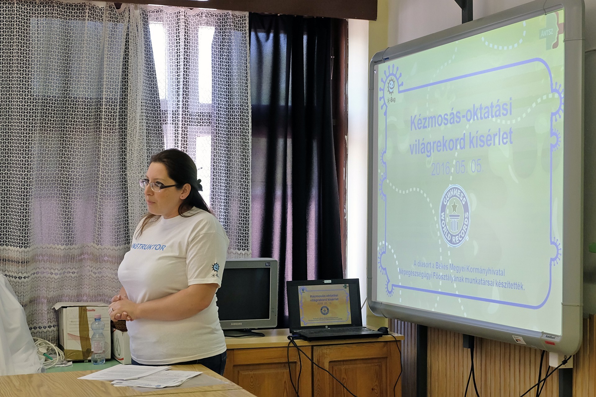 – A célunk az volt, hogy megdöntsük a több helyszínen egyszerre tartott kézhigiénés oktatás Guinness-rekordját, melyet Glasgow-ban állított fel 3039 diák – fejtette ki a szakember. Hozzátette: Békés megyében öt település iskolái csatlakoztak a rekordkísérlethez, Gyula mellett Füzesgyarmaton, Sarkadon, Nagykamaráson és Mezőhegyesen tanították meg a gyerekeknek a kézmosás hat lépését a kéztisztaság világnapján.
