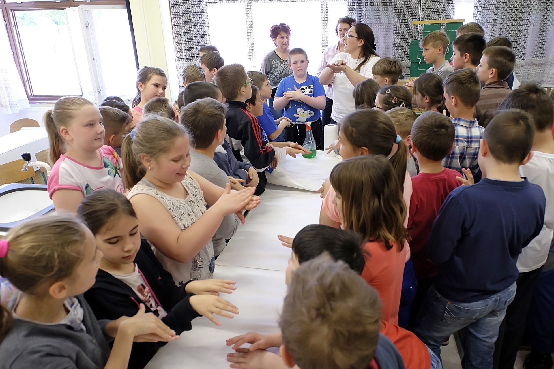 – Az órán azt tanultam meg, hogyan kell úgy kezet mosnom, hogy el tudjam kerülni a bacilusokat – ecsetelte lapunknak Oravecz Kata, hogy mit sajátított el a rekordkísérlet alatt. – Naponta többször is kezet szoktam mosni, étkezések előtt és után, ha kutyát simogatok, vagy ha az iskolai foglalkozáson festékes lesz a kezem – árulta el a 4. osztályos kislány.