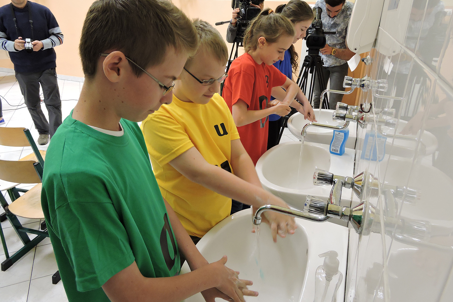 Gyulán az 5. számú általános iskolában, valamint a Karácsonyi János Katolikus Gimnáziumban és Általános Iskolában mutatták be a diákoknak a kézmosás helyes technikáját.