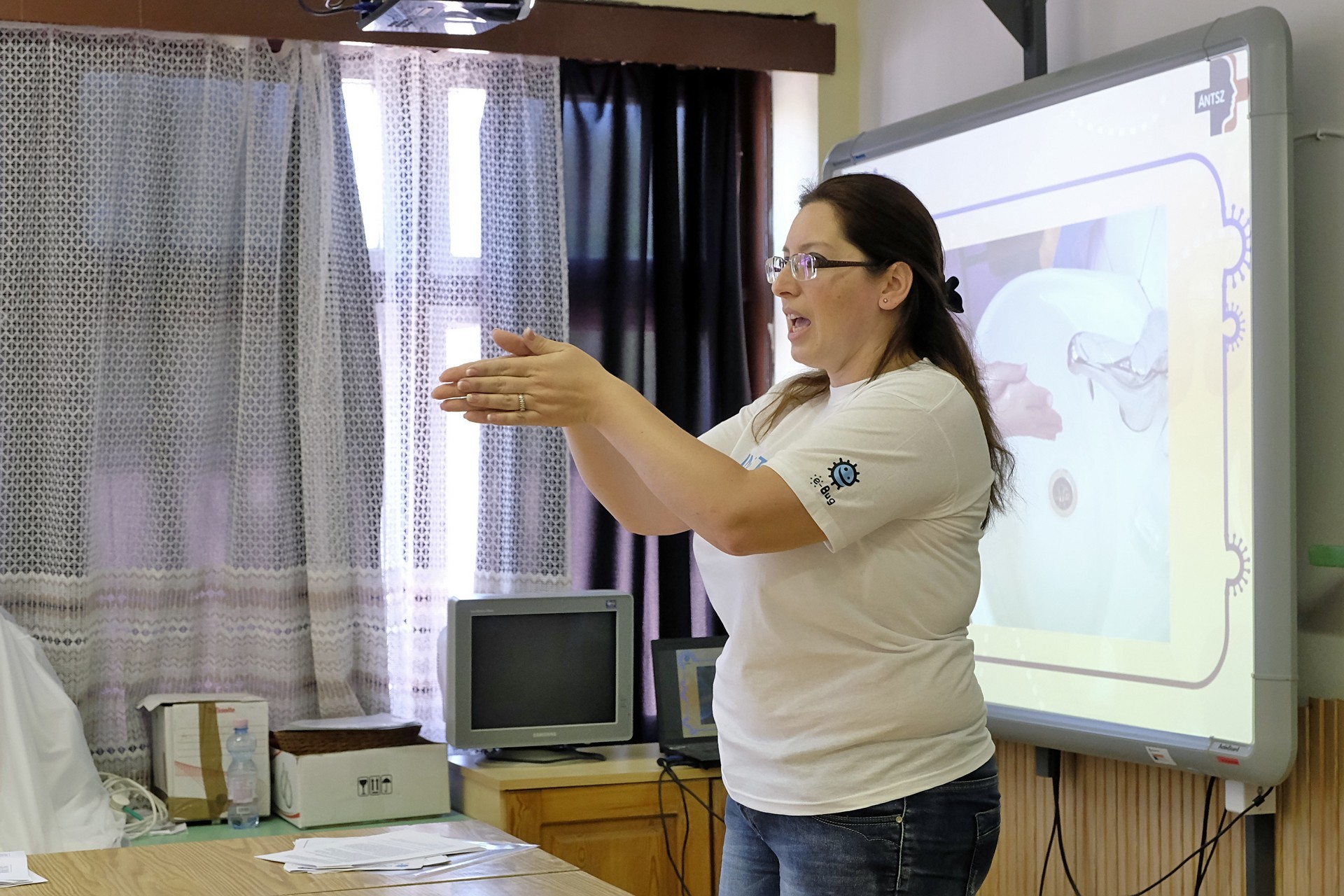 A szakembertől megtudtuk, az Egészségügyi Világszervezet által ajánlott kézmosási technika mellett a cseppfertőzéssel terjedő betegségekről és az antibiotikumhasználatról is szó volt a gyerekeknek tartott tanórán. A diákoknak átadott ismeretanyag az e-Bug nevű oktatási eszközön is elérhető az interneten – tette hozzá Maráczi Gabriella.