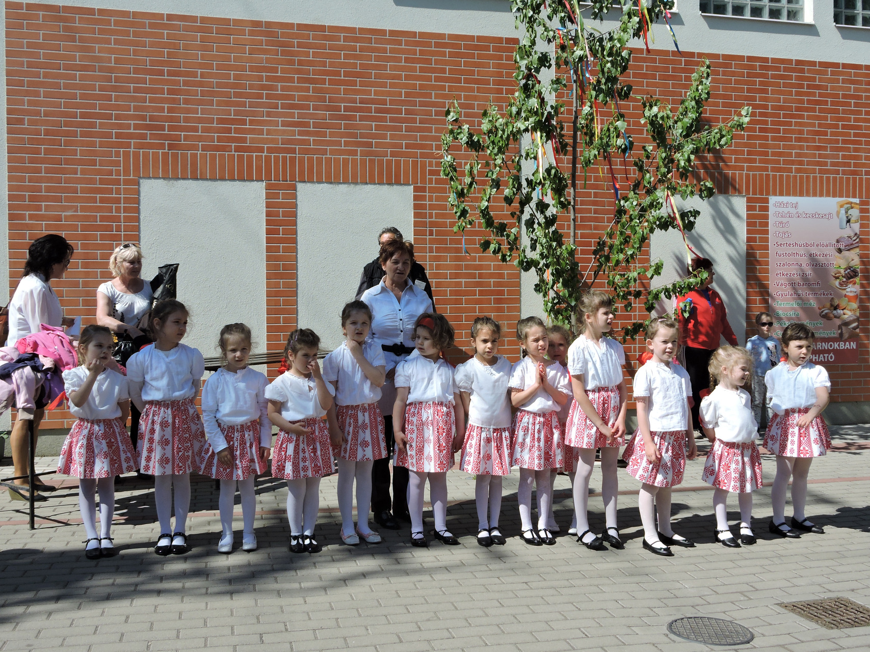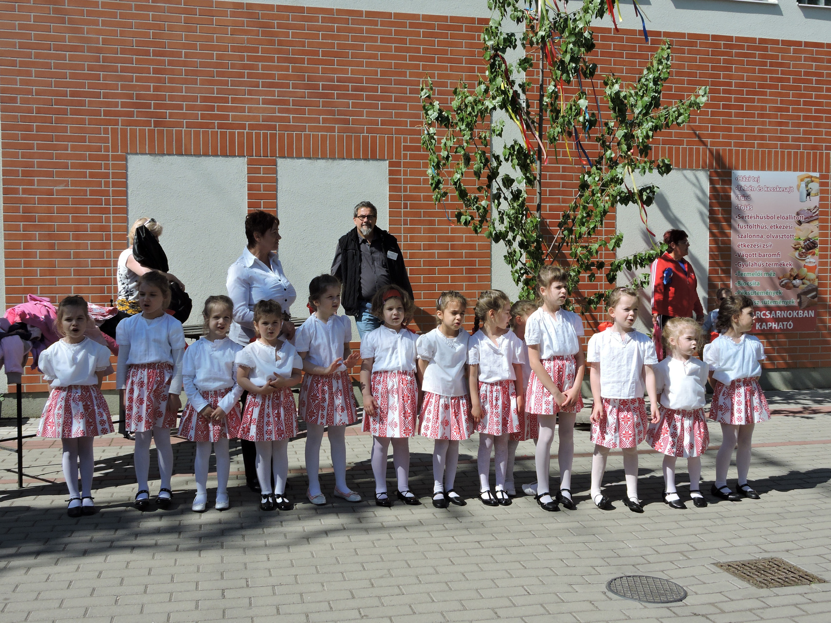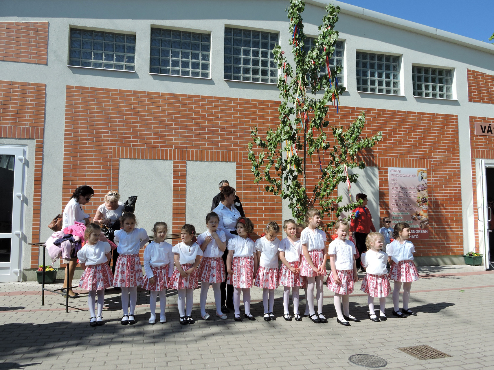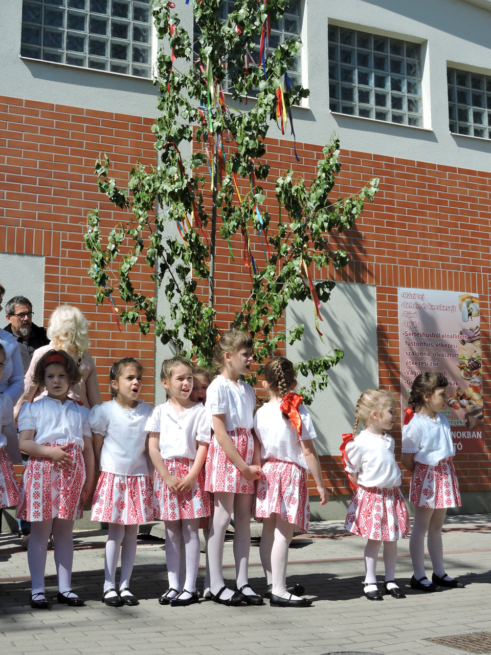 Májusfát állítottak a törökzugi óvodások május 6-án a gyulai piac vásárcsarnoka előtt. A gyerekek ünnepi műsorral is készültek: tavaszköszöntő dalokat és mondókákat adtak elő a vásárlóknak és a standosoknak.