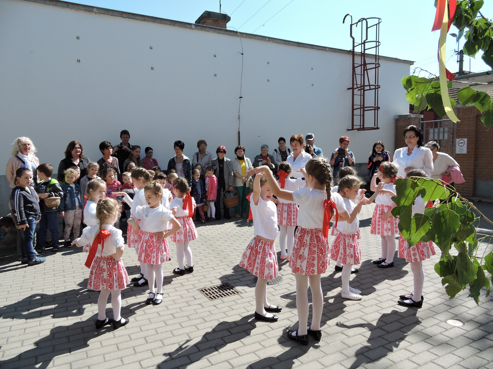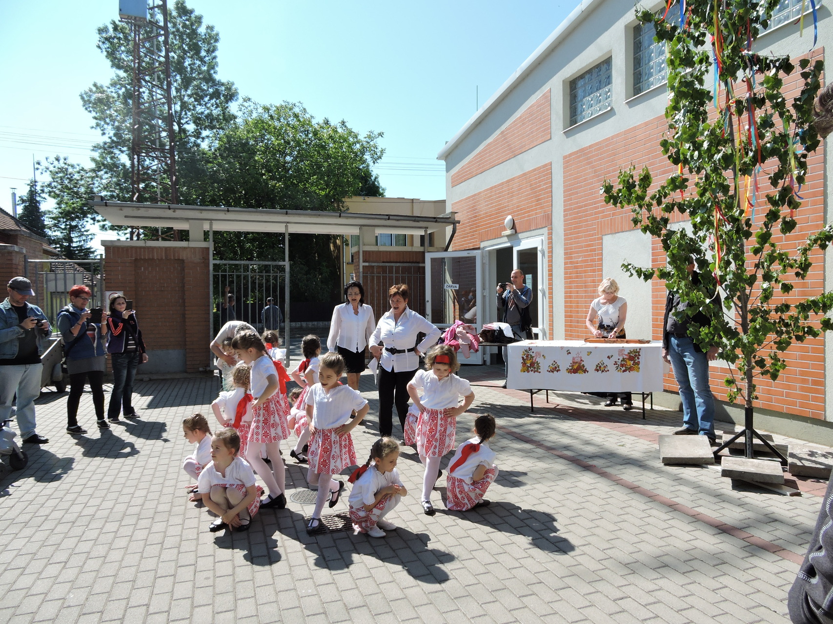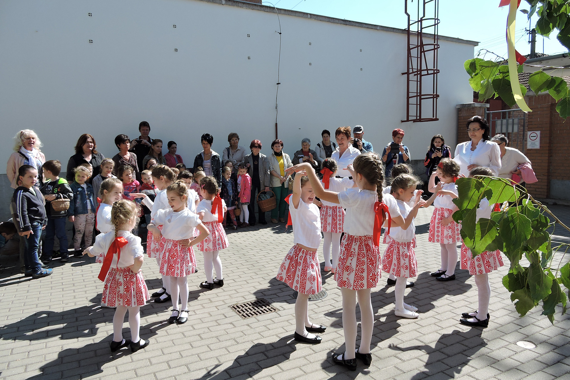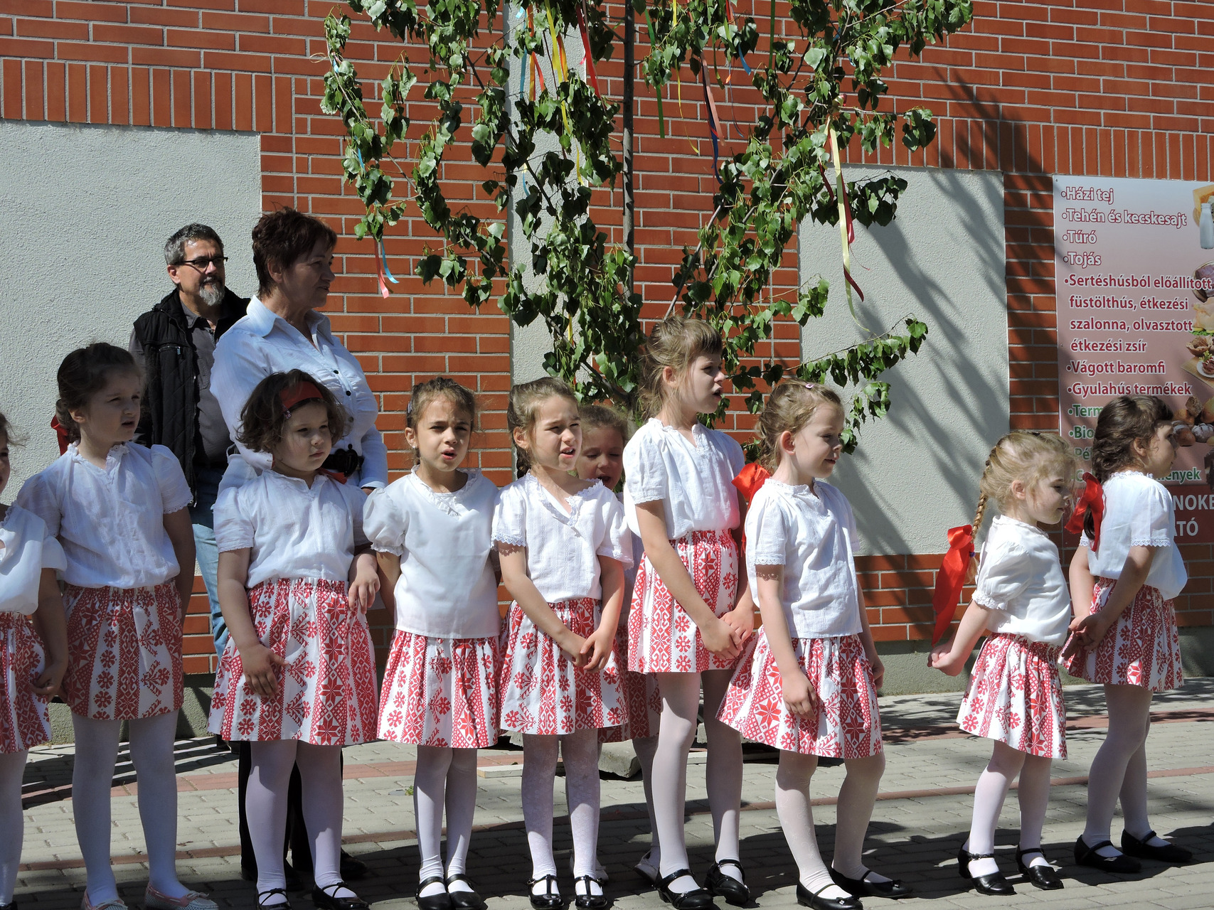 Májusfát állítottak a törökzugi óvodások május 6-án a gyulai piac vásárcsarnoka előtt. A gyerekek ünnepi műsorral is készültek: tavaszköszöntő dalokat és mondókákat adtak elő a vásárlóknak és a standosoknak.