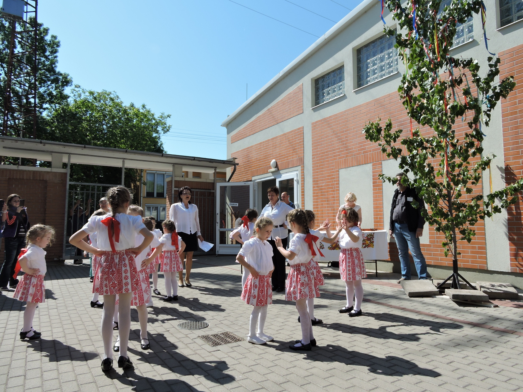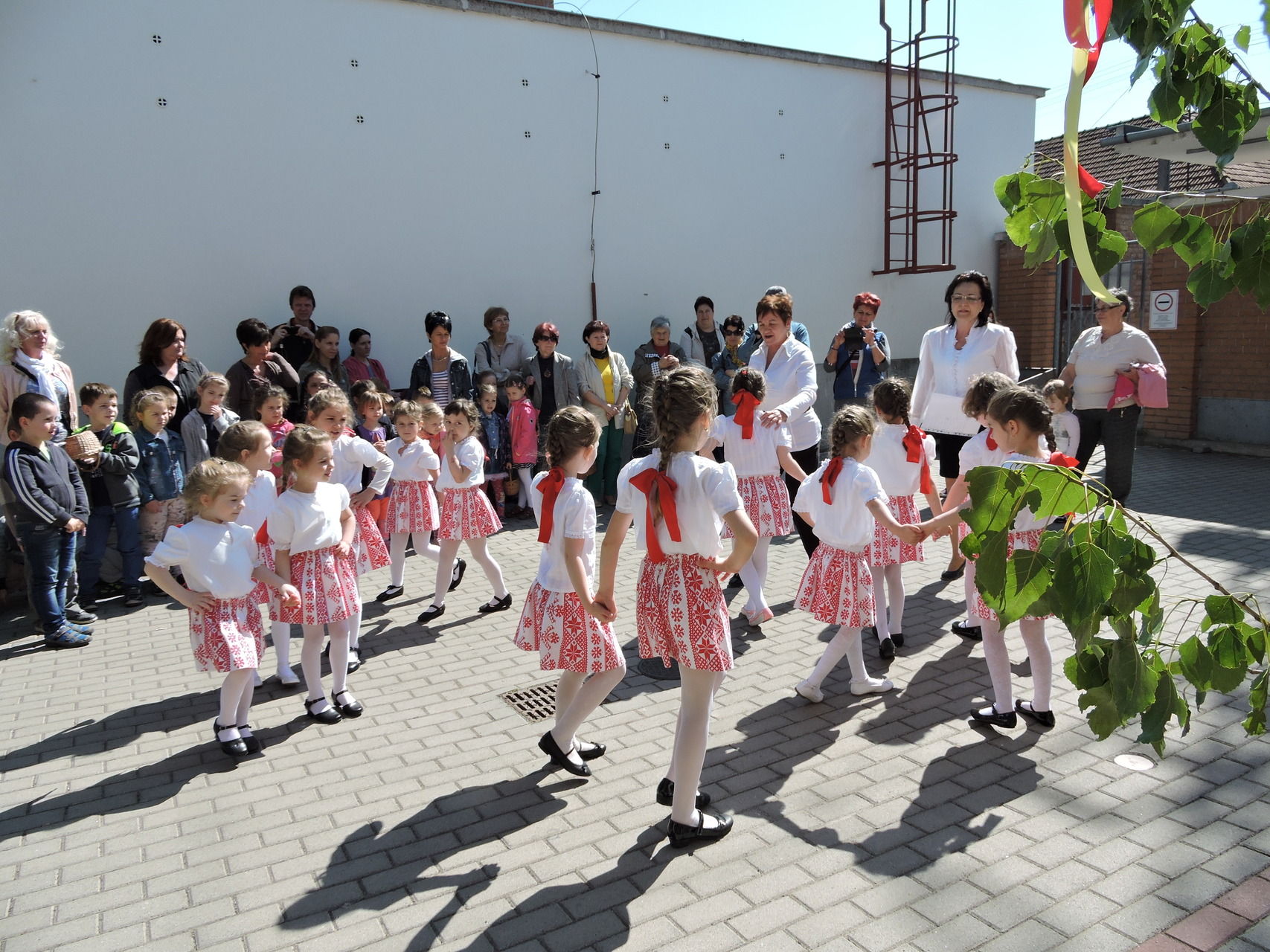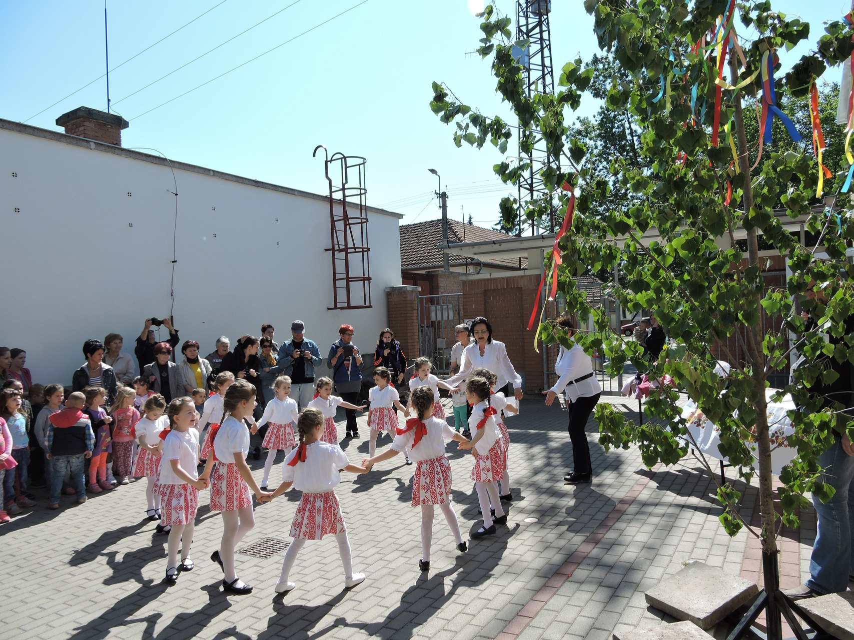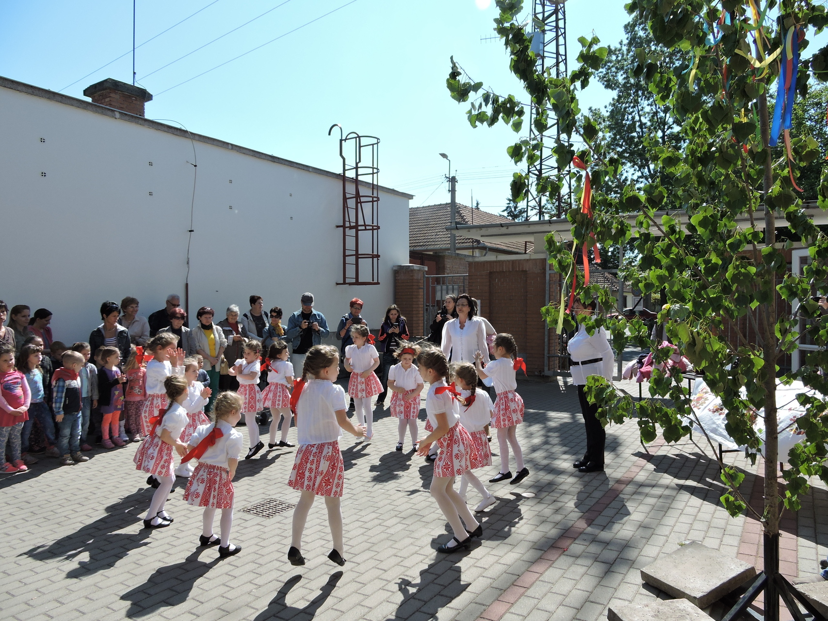 Májusfát állítottak a törökzugi óvodások május 6-án a gyulai piac vásárcsarnoka előtt. A gyerekek ünnepi műsorral is készültek: tavaszköszöntő dalokat és mondókákat adtak elő a vásárlóknak és a standosoknak.