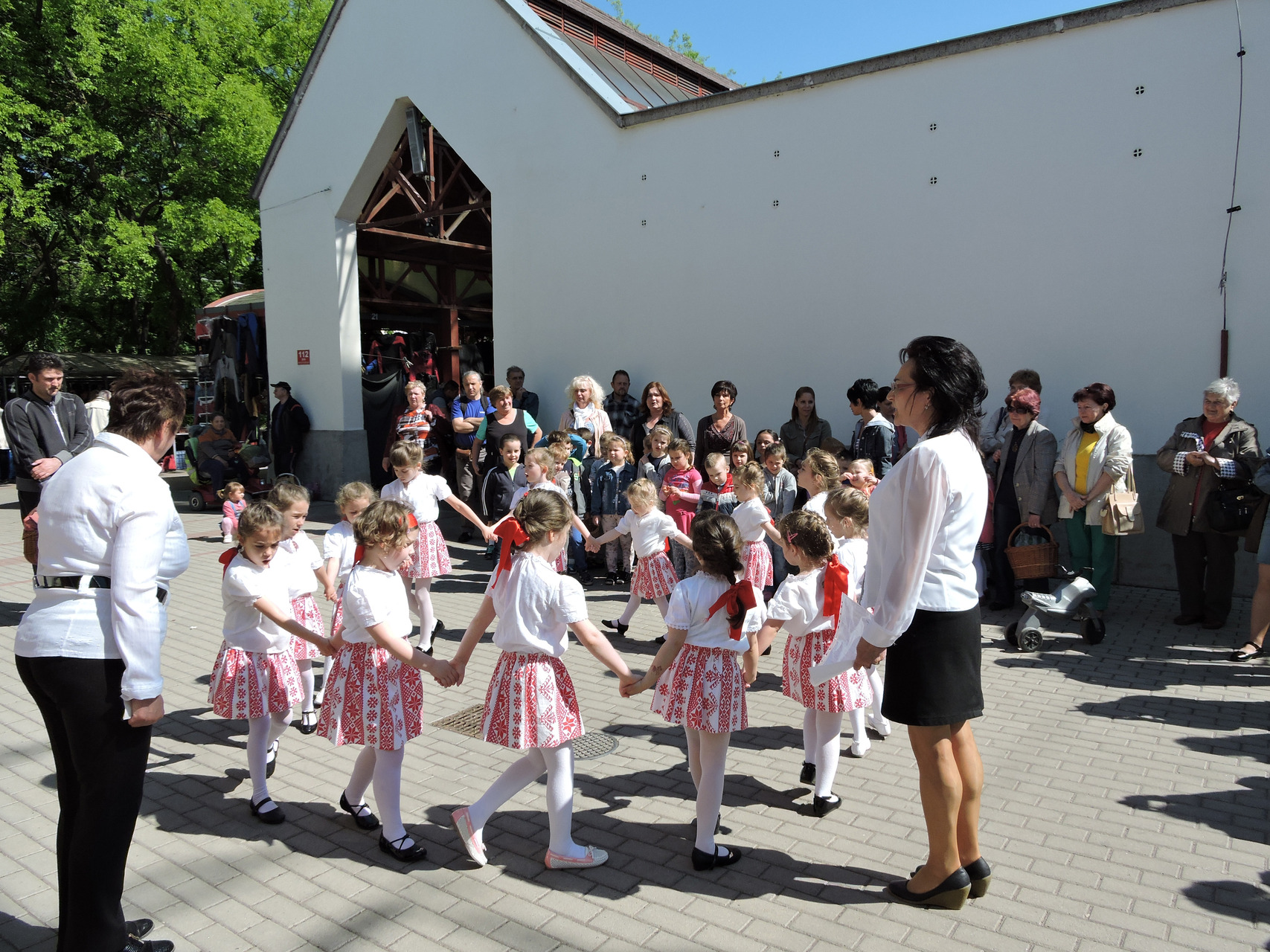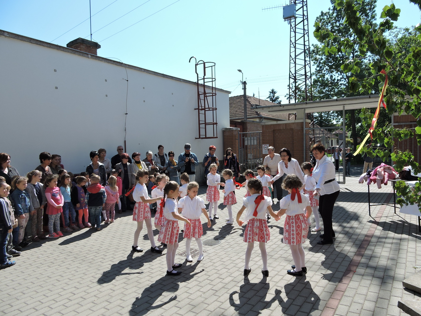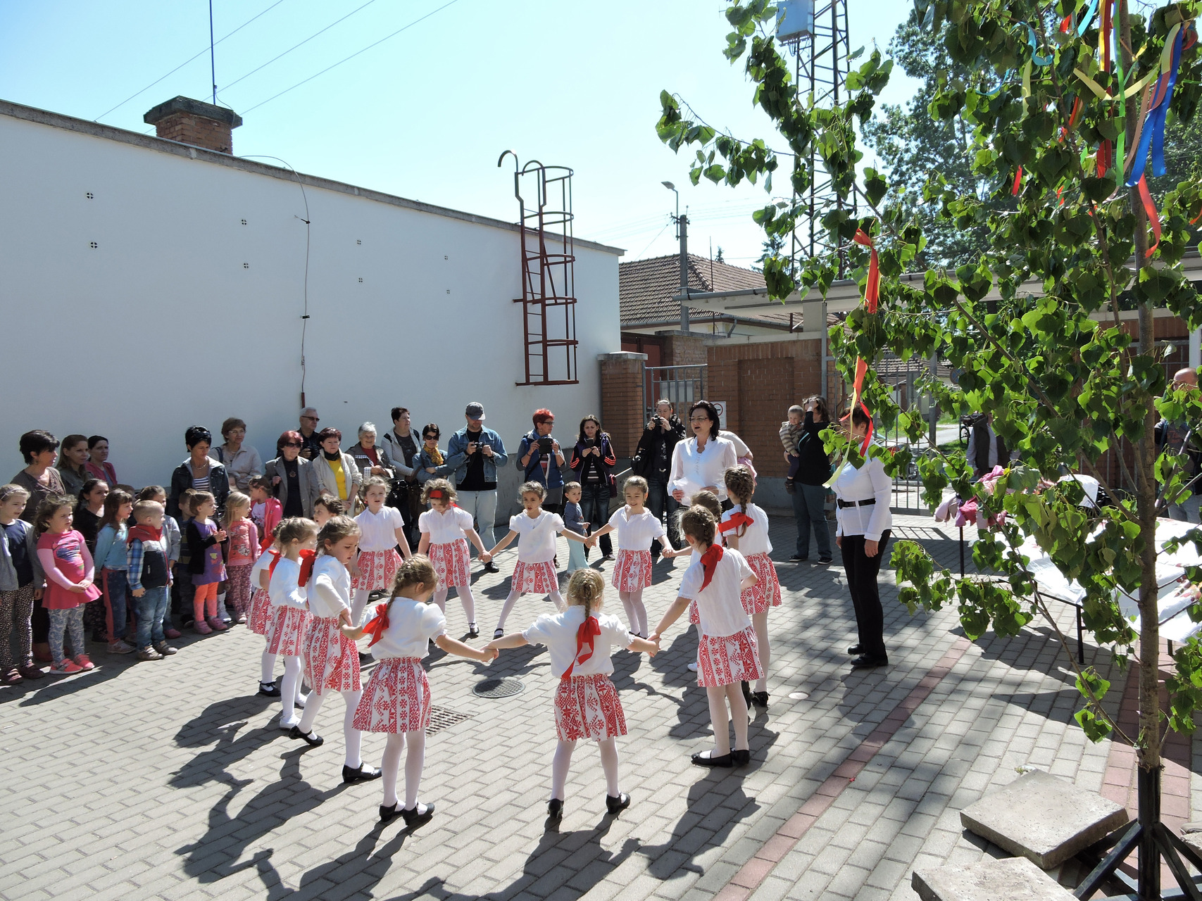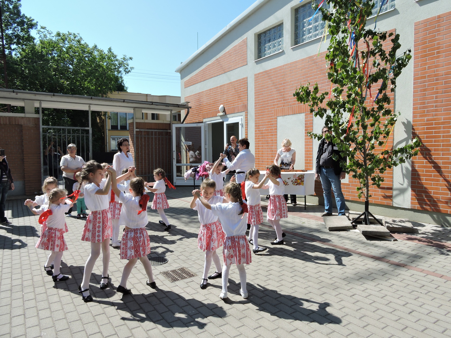 Májusfát állítottak a törökzugi óvodások május 6-án a gyulai piac vásárcsarnoka előtt. A gyerekek ünnepi műsorral is készültek: tavaszköszöntő dalokat és mondókákat adtak elő a vásárlóknak és a standosoknak.