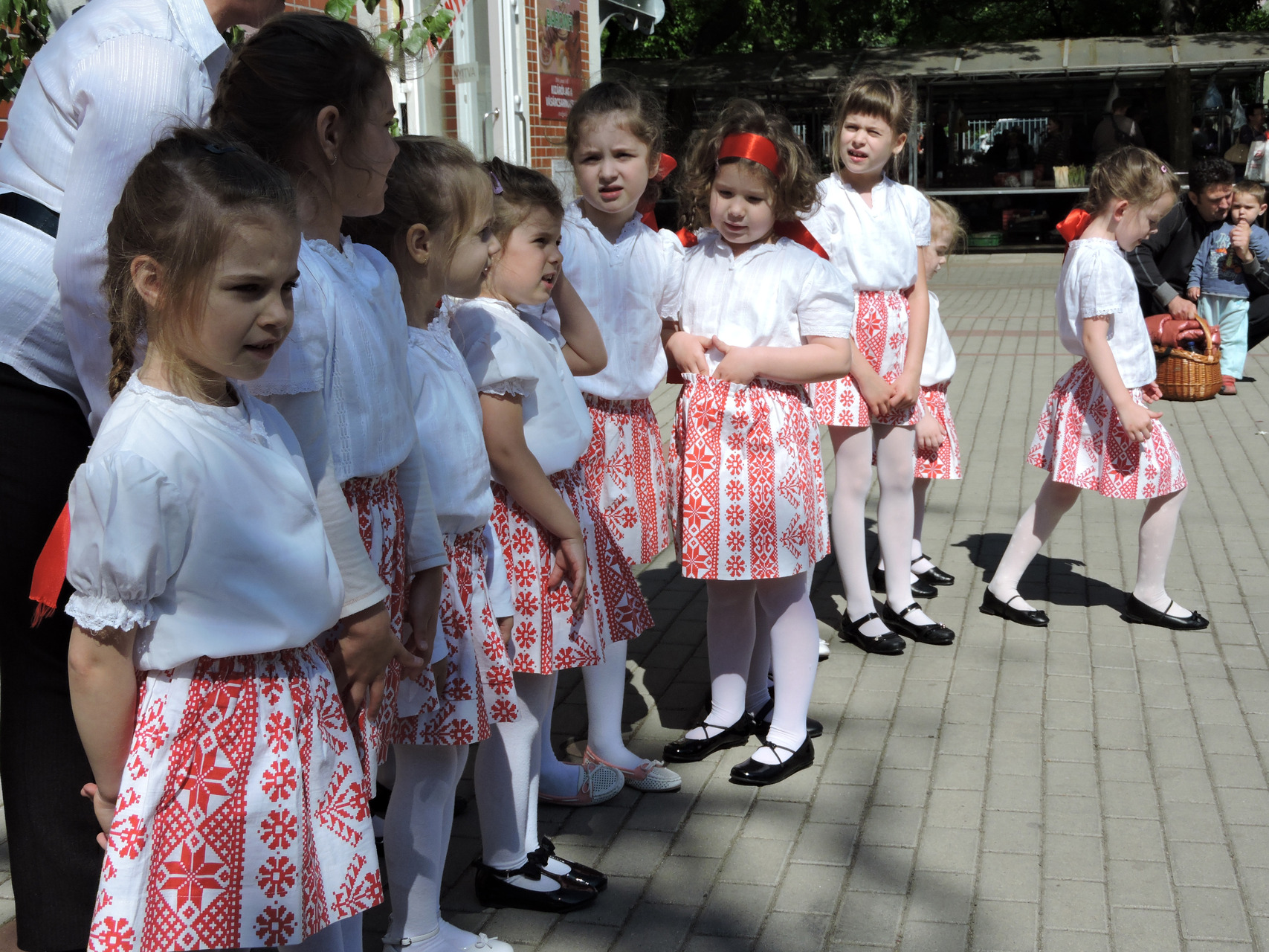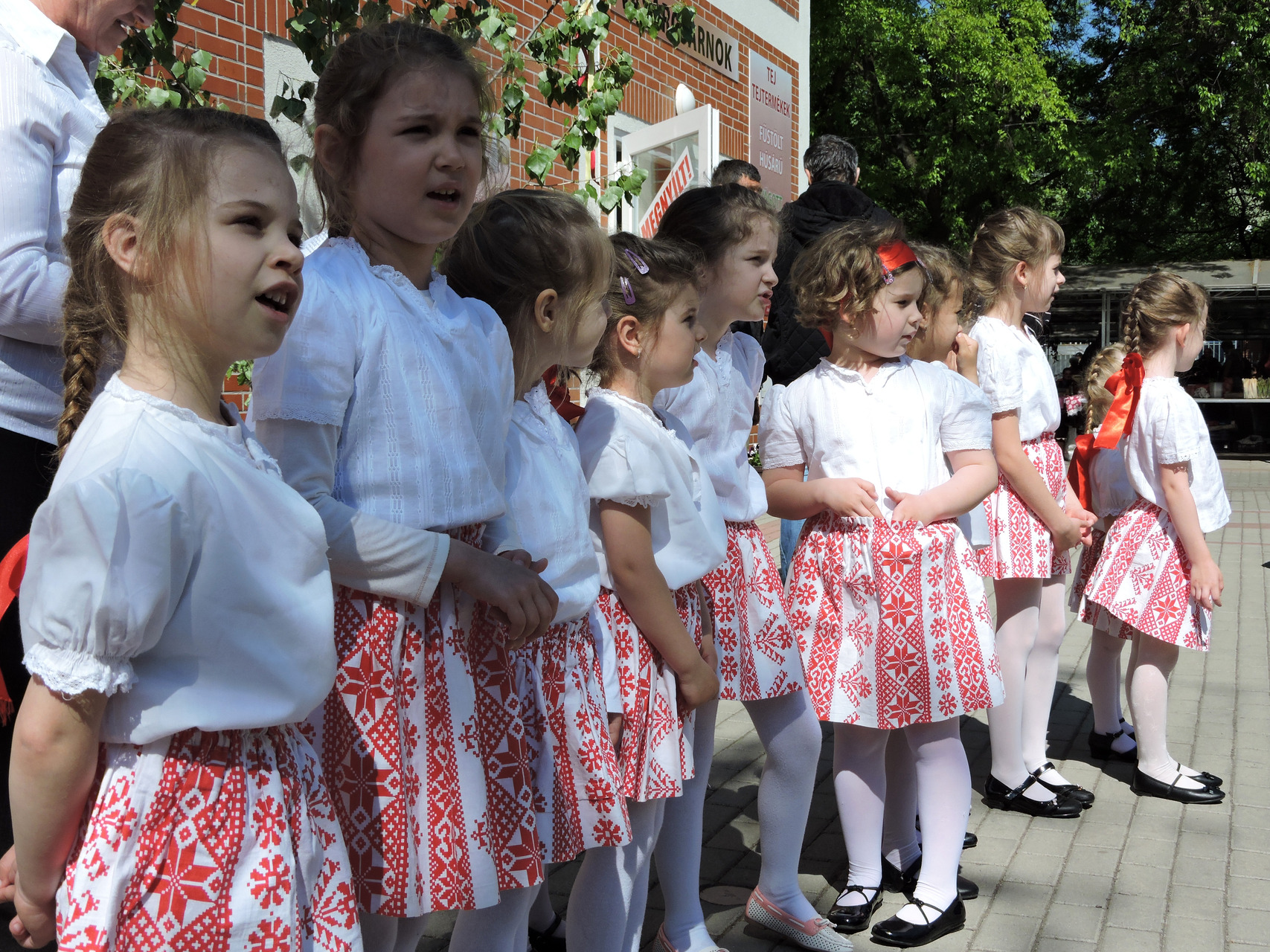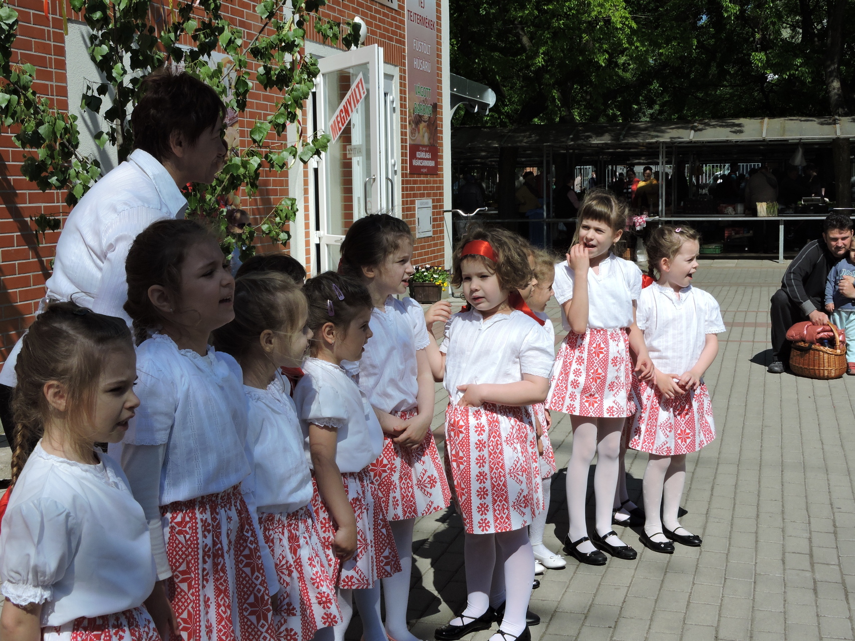 Az óvodások tavaszköszöntő műsorral lepték meg a vevőket és az árusokat