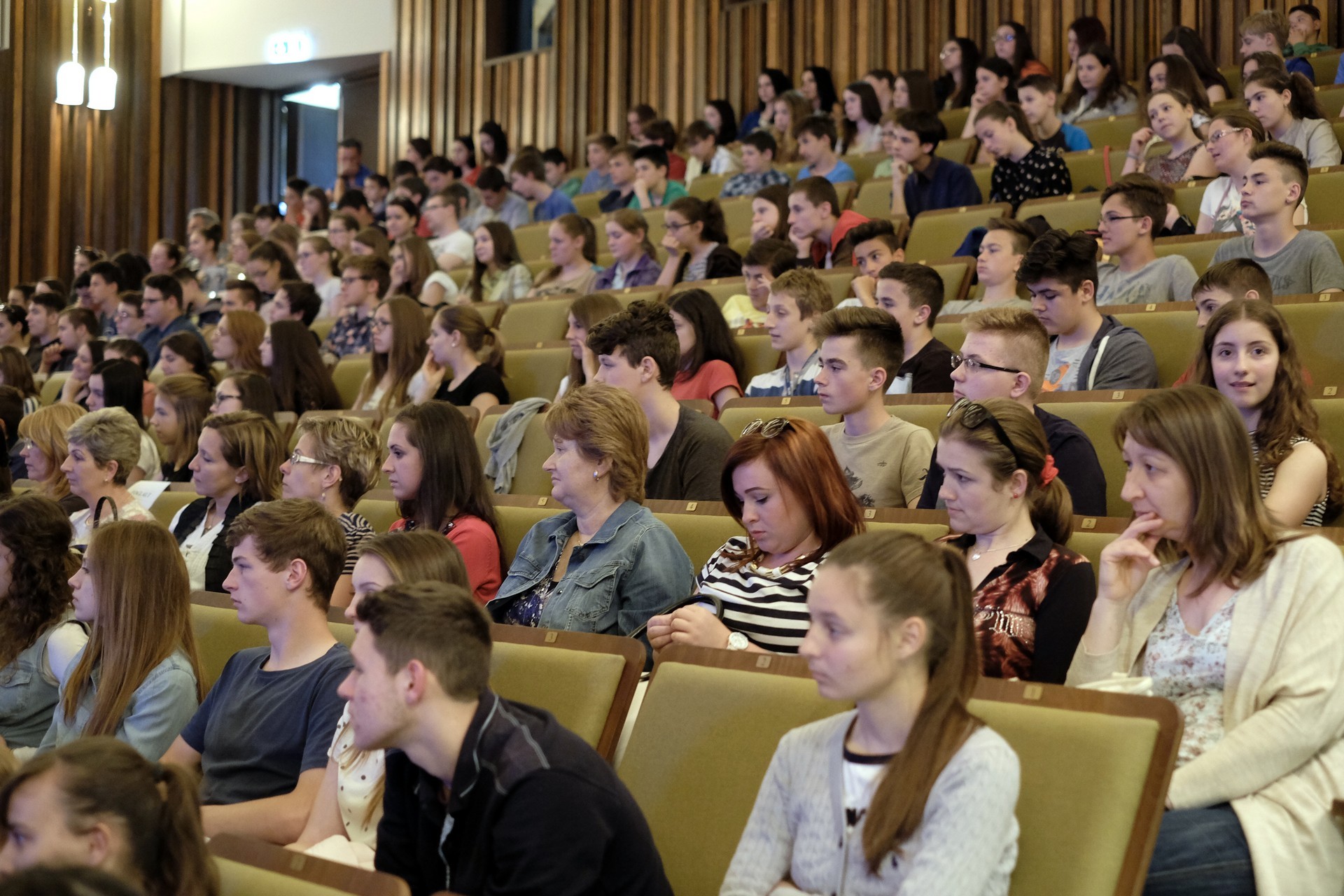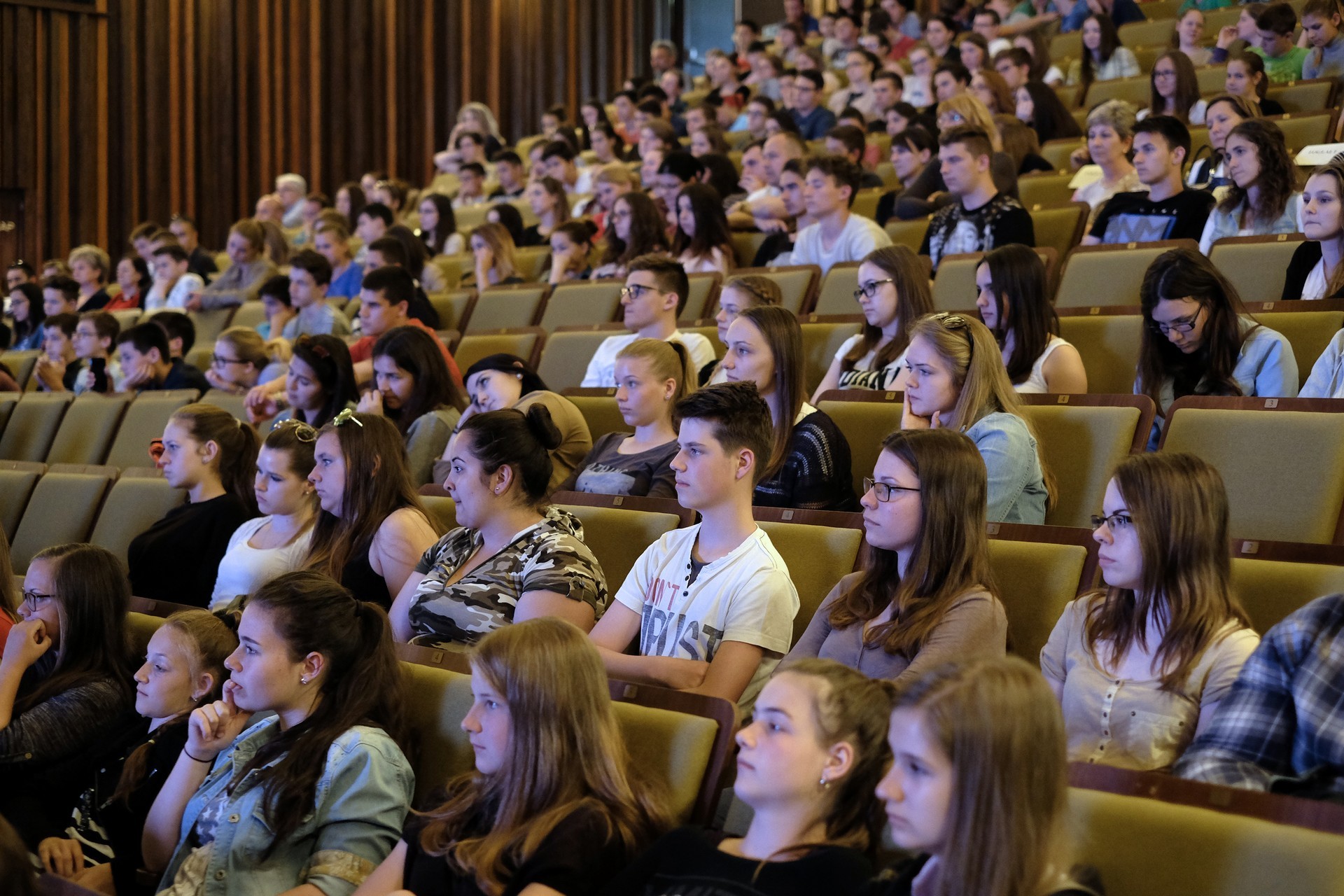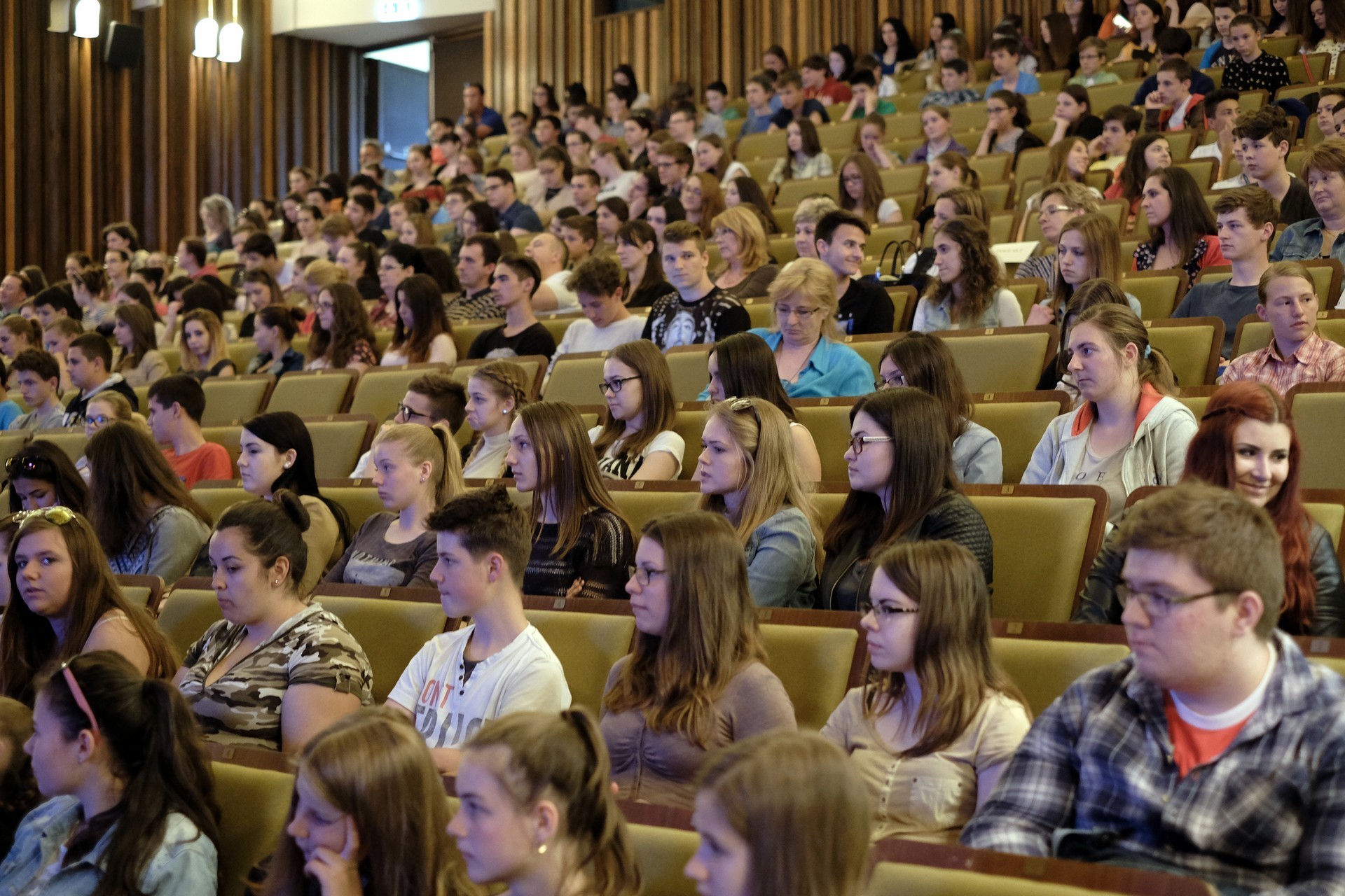 Ennek mintegy áttekintését tartották 13.30-tól az épület színháztermében, amíg – az önhibáján kívül késésbe került – dr. Zacher Gábor érkezésére vártak. A népszerű toxikológus aztán egyenesen a színpadra érkezett, és máris a tőle várt témába, a fiatalok drogkérdésébe vetette magát, és a nézőtéren helyet foglaló általános és középiskolás diákokat.
