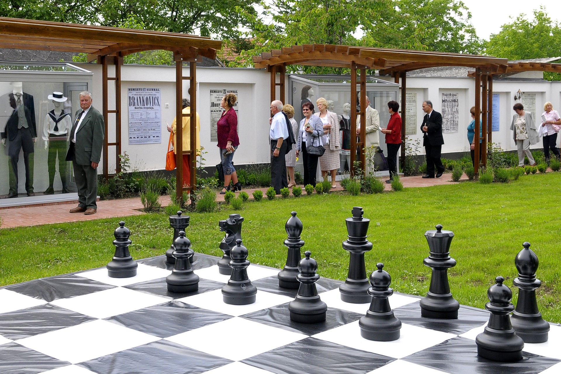 Az emlékház udvarán egy óriási sakktábla várja a látogatókat