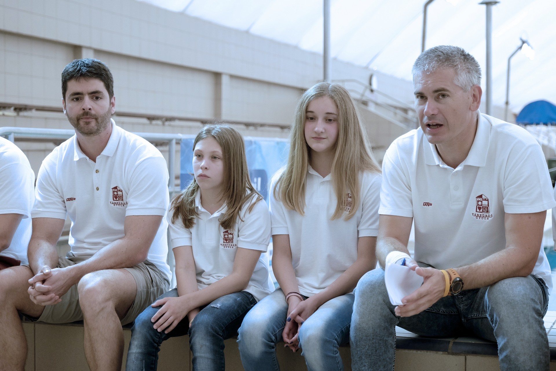 A gyulai úszólányok, edzőik és Boros László Attila ügyvezető
