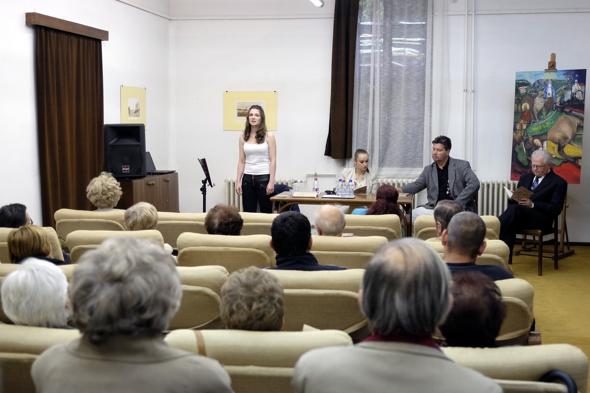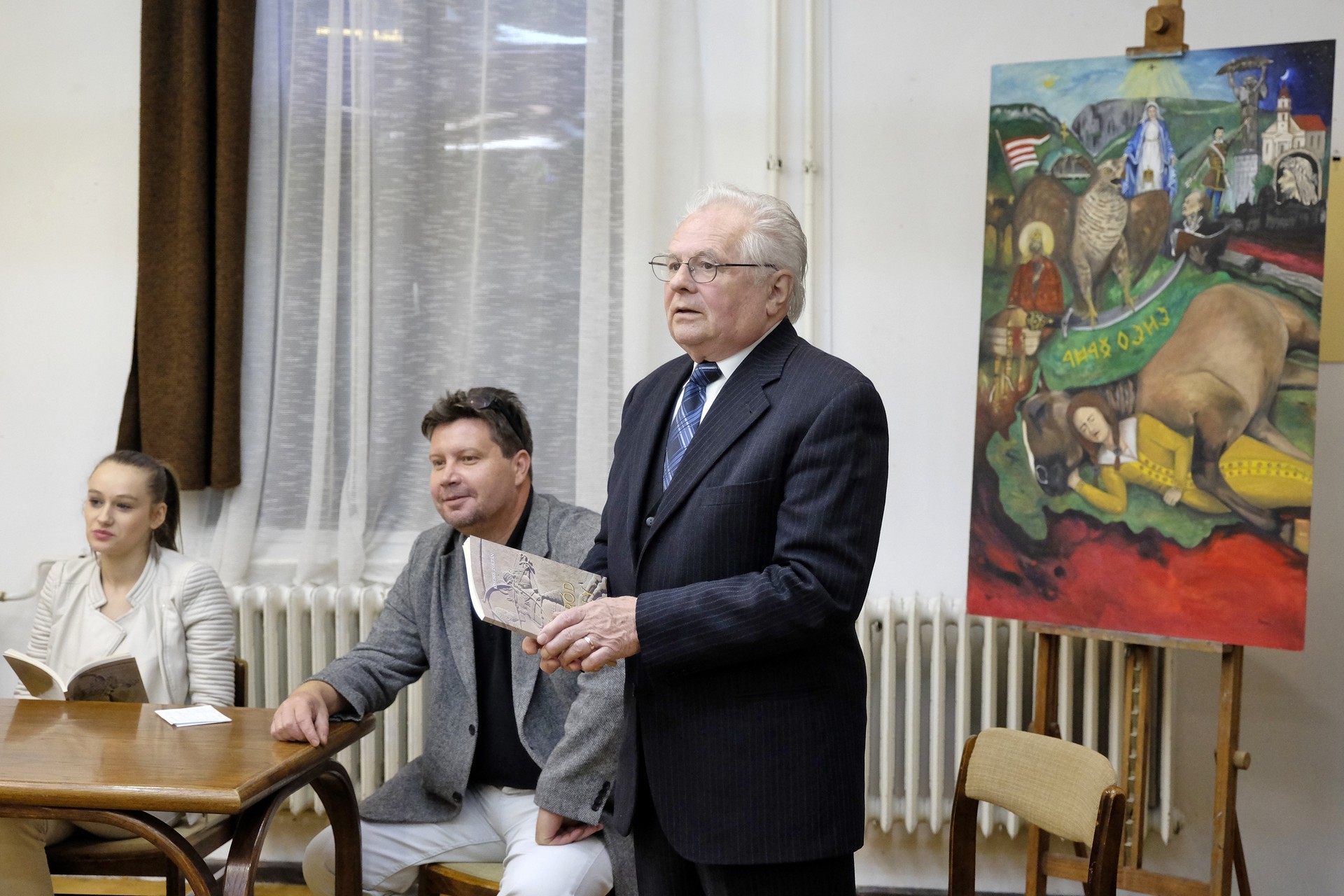 A szeghalmi Péter András Gimnázium egykori magyartanára rutinos előadói stílusban tartotta ébren közönsége érdeklődését, eposzát pedig két segítőtársa bevonásával tárta közönsége elé. Míg Gulyás Erika részleteket olvasott fel a műből, Kovács Ágnes az olvasás mellett a történet hangulatának fokozása vagy épp oldásaként éneklésével nyűgözte le a publikumot.