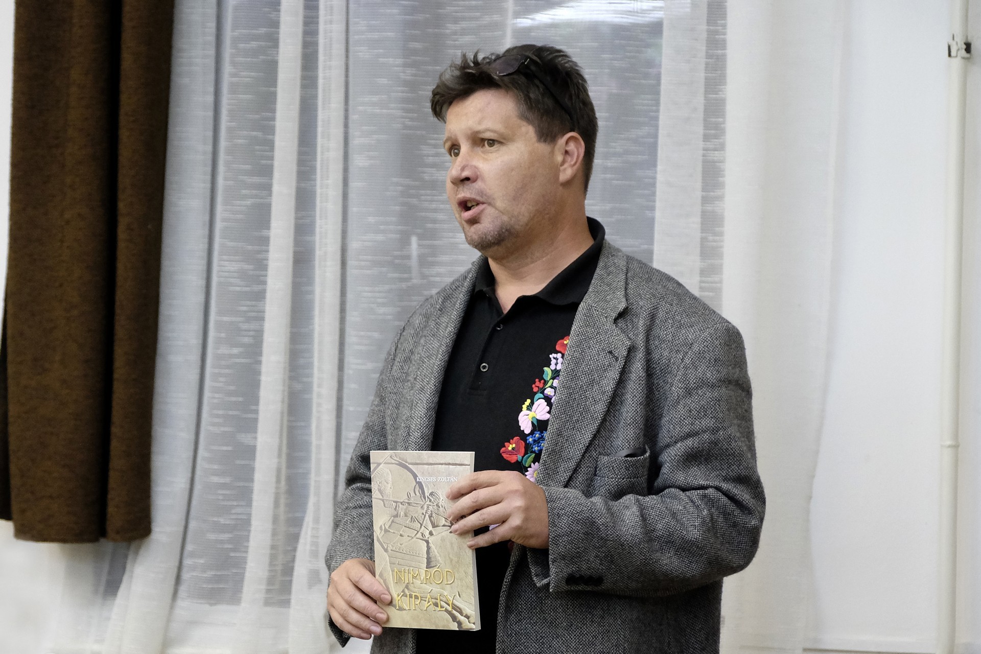 – A könyvbemutatón hamar átesünk: ez itt a könyv – mutatta a nézőtér felé könyve borítóját a rendezvényen Kincses Zoltán, majd sorra válaszolta meg azokat az ilyenkor maguktól felvetődő kérdéseket, miszerint miért is választotta témaként Nimród király történetét, és vajon miért is épp ebben a meglehetősen kötött és nehéz irodalmi formában rögzítette mondandóját?