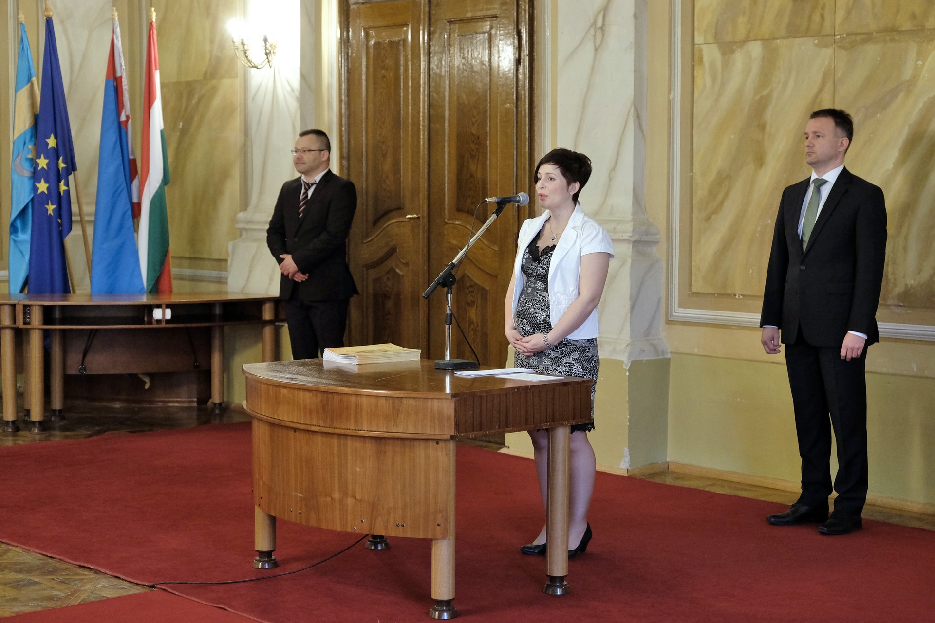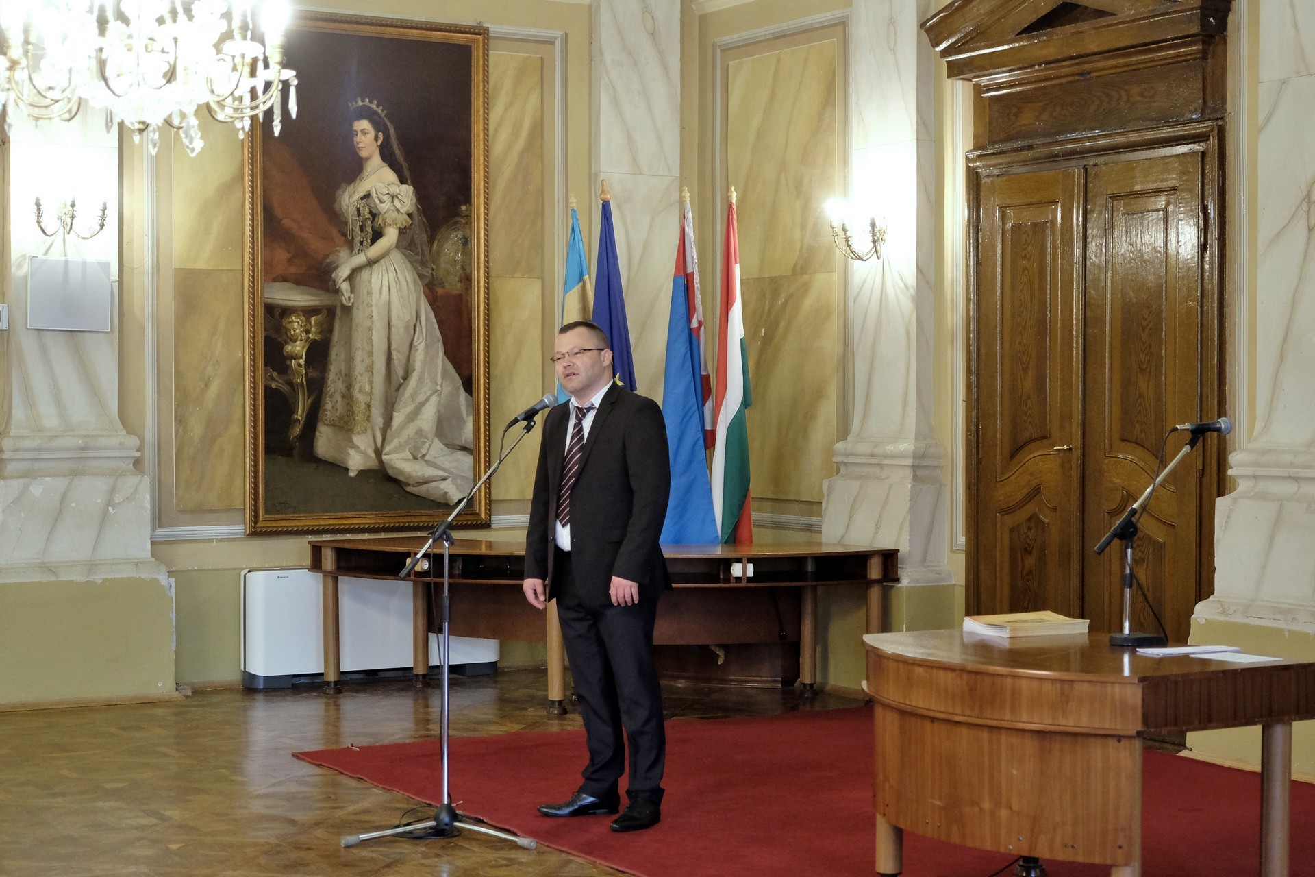 – Köszönöm, hogy városunkat választották az állampolgársági eskü helyszínéül, hiszen számunkra minden ilyen esemény igazi ünnep. Ünnep, hiszen nekünk, magyaroknak sokat kellett küzdenünk, hogy idáig eljussunk. A második világháború után, a kommunista vezetők mindent elkövettek, hogy elfelejtsük egymást, hogy a szellemünk elzáródjon egymástól. Nőttek úgy fel nemzedékek ebben az országban, hogy semmit nem tudtak arról, hány magyar testvérünk él a határokon túl. Az igazi összetartozást számunkra a múltban rejlő gyökerek jelentik. Az a kultúra és történelem, amely összeköt bennünket – mondta a polgármester.