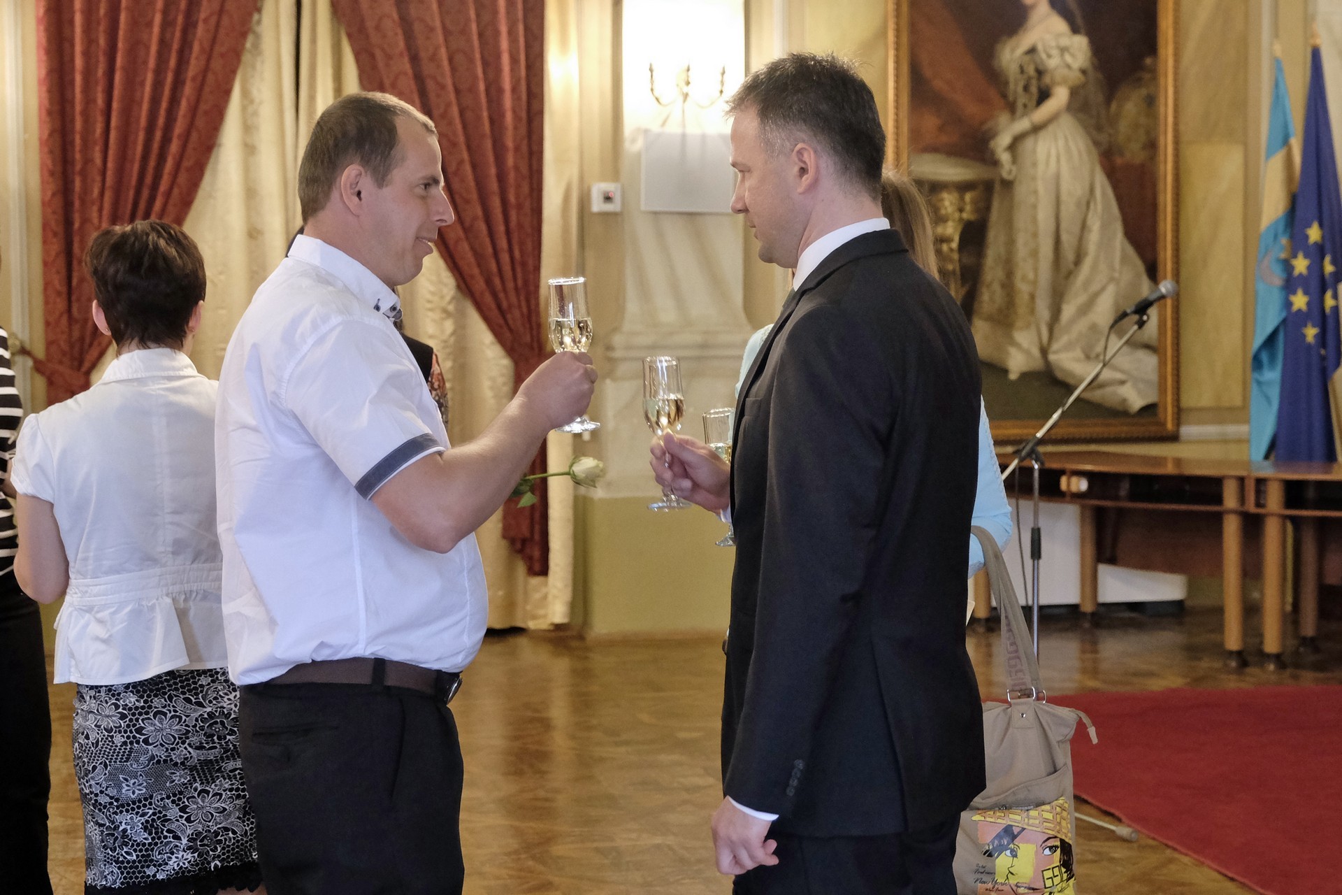 A köszöntő után minden esküt tett, új állampolgárnak átadták a honosító oklevelet, majd pezsgővel vendégelték meg a megjelenteket.
