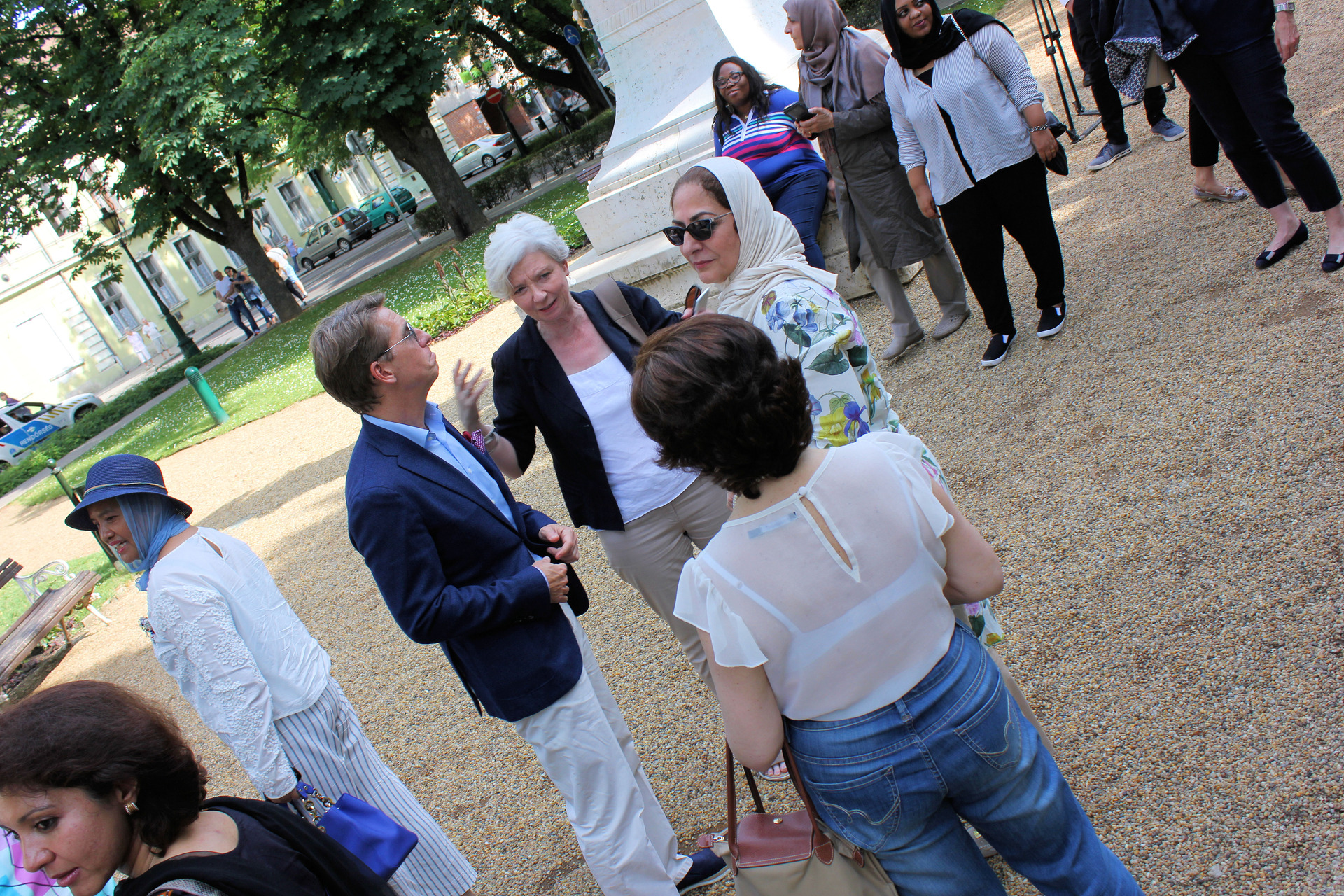 A köztársasági elnök feleségét, Herczegh Anitát A Százéves cukrászda előtt fogadta Görgényi Ernő, Gyula polgármestere